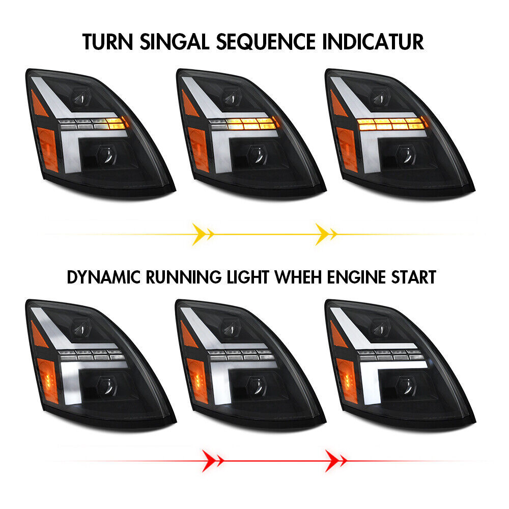 Fitment Perfect Fit for Volvo 04-15 VN, 04-18 VNL VNM, 15-18 VNX Head lamp 2004-2018 VNL 04-18 VNM 04-15 VN [ 82329127 VO2503156 82329124 VO2502156 ] If you can NOT confirm,please send us pictures of your plug and car.Thx ( Professional Installation is Highly Recommended. ) L ighting Features Brand: T T-ABC 100% Brand New Type: LED Headlight Assembly Fuction DRL/High Beam/Low Beam/Sequential Turn Signal Specification Including: 1 pair Headlights (Left side & Right side) 100% brand new in the original box Using way: Plug-n-play Operation Built to strict quality control standards 1 year maintenance from date of delivery. Note If you have any question about a part you should contact us before buying. Using your factory supplied connector/harness will avoid cuttingor modifying any wires. Please contact us if you need some help. We are happy to offer you the best price and fastest service for all your aftermarket parts needs. If there is a problem with the product, please contact us in time to get help from us. Thank you. Questions Any question will be replied within 24 hours except the weekend and holiday. We will serve for you all sincerity! Thank you for your interest!