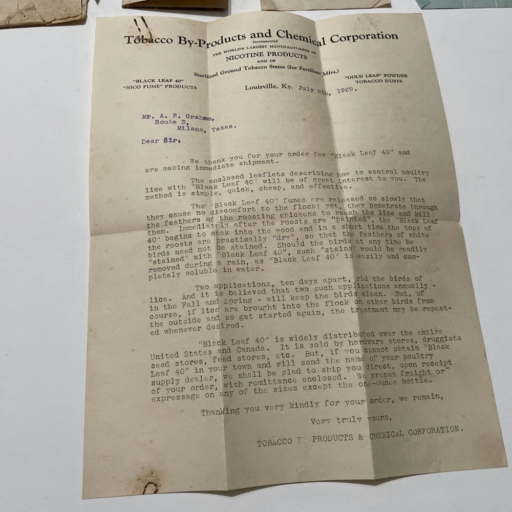 Black Leaf 40 Ephemera Letter Pamphlet 1929 Tabacco by products Insecticide. Envelope is completely split in half Always happy to answer any questions if I can.We will combine shipping, especially on small items it cost the same to send multiples as it does to ship one.