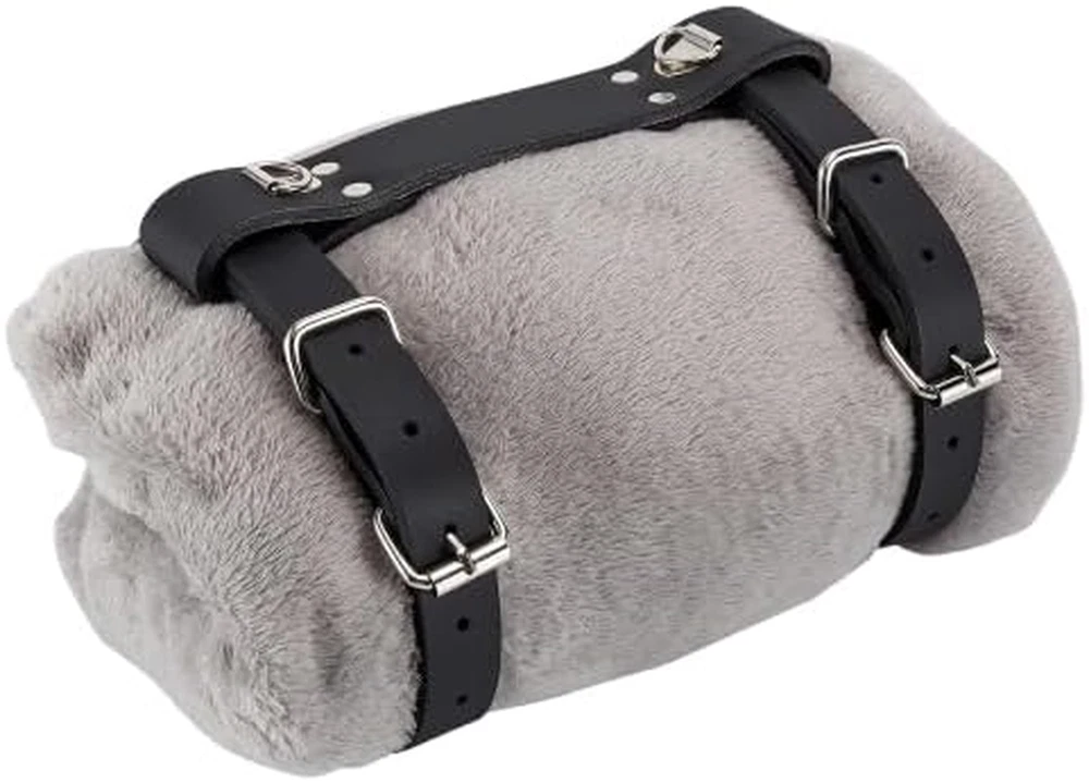 Black Leather Blanket Holder For Motorcycle Heavy Duty Genuine Leather Carry ...