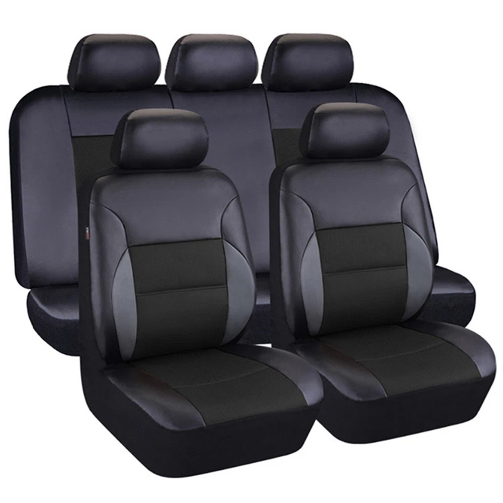 Black Leather Car Seat Cover Front Rear Full Set Cushion Protector Accessories