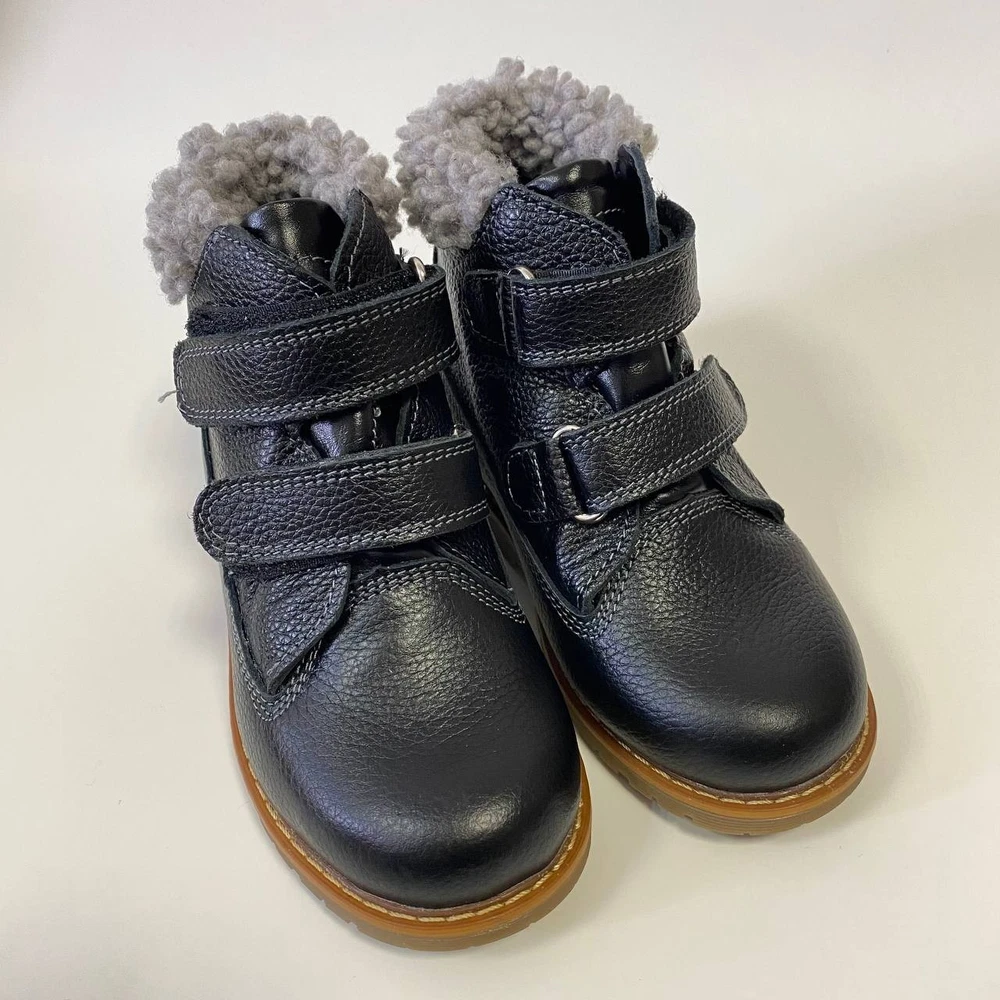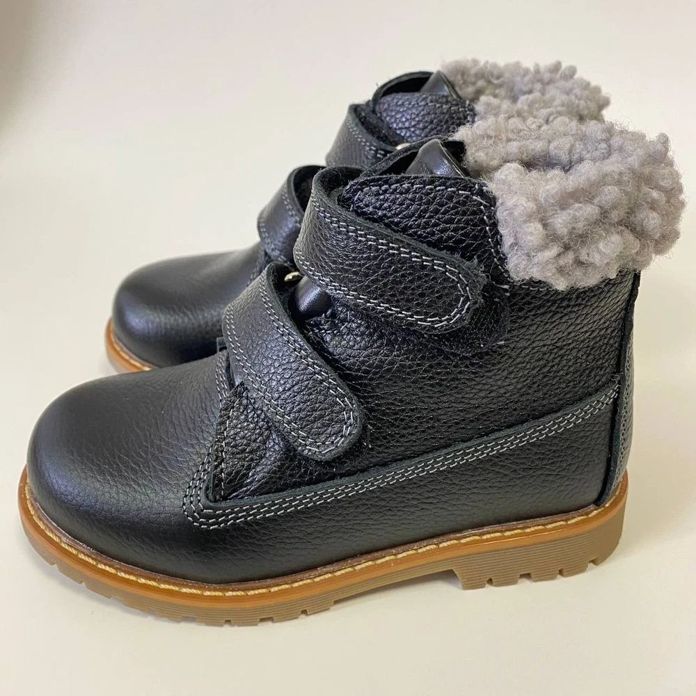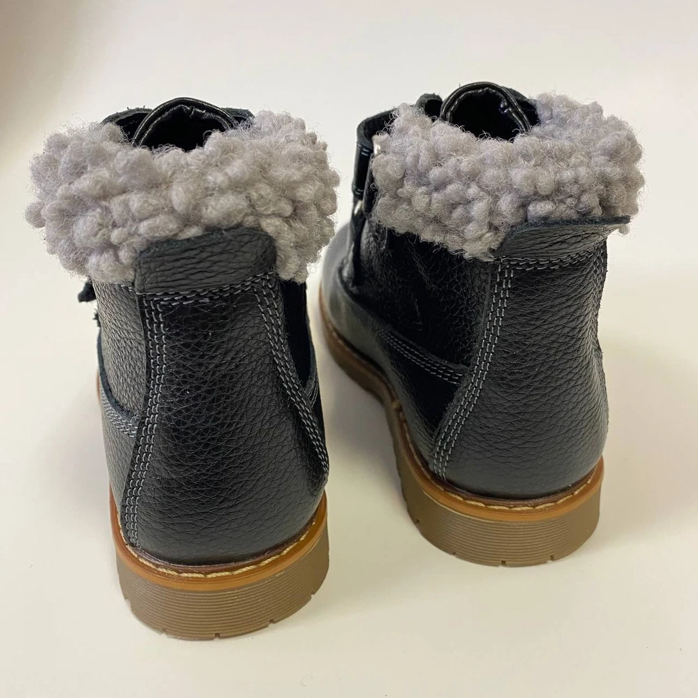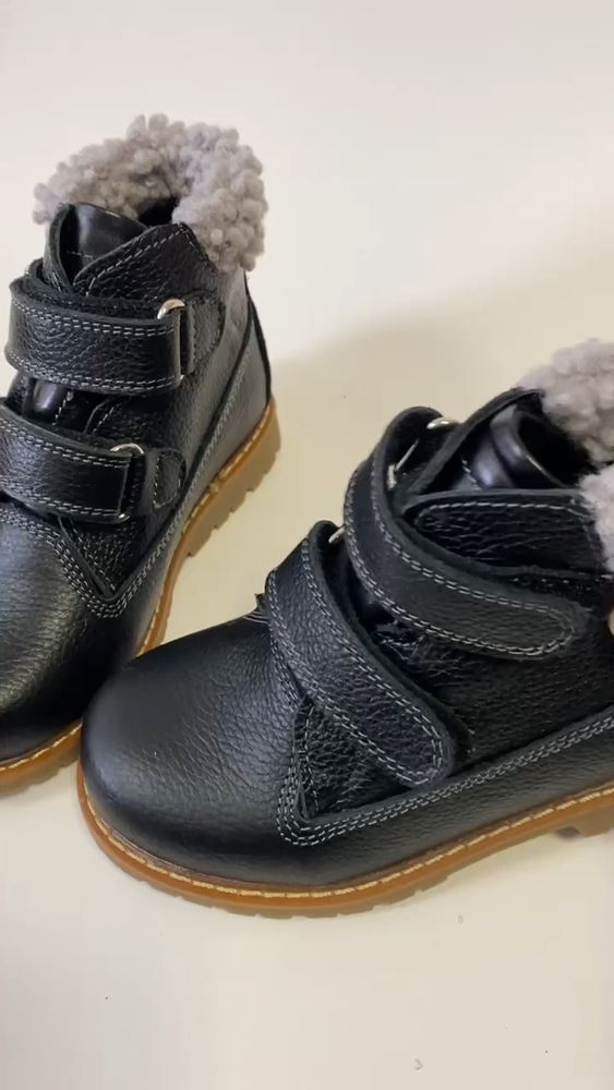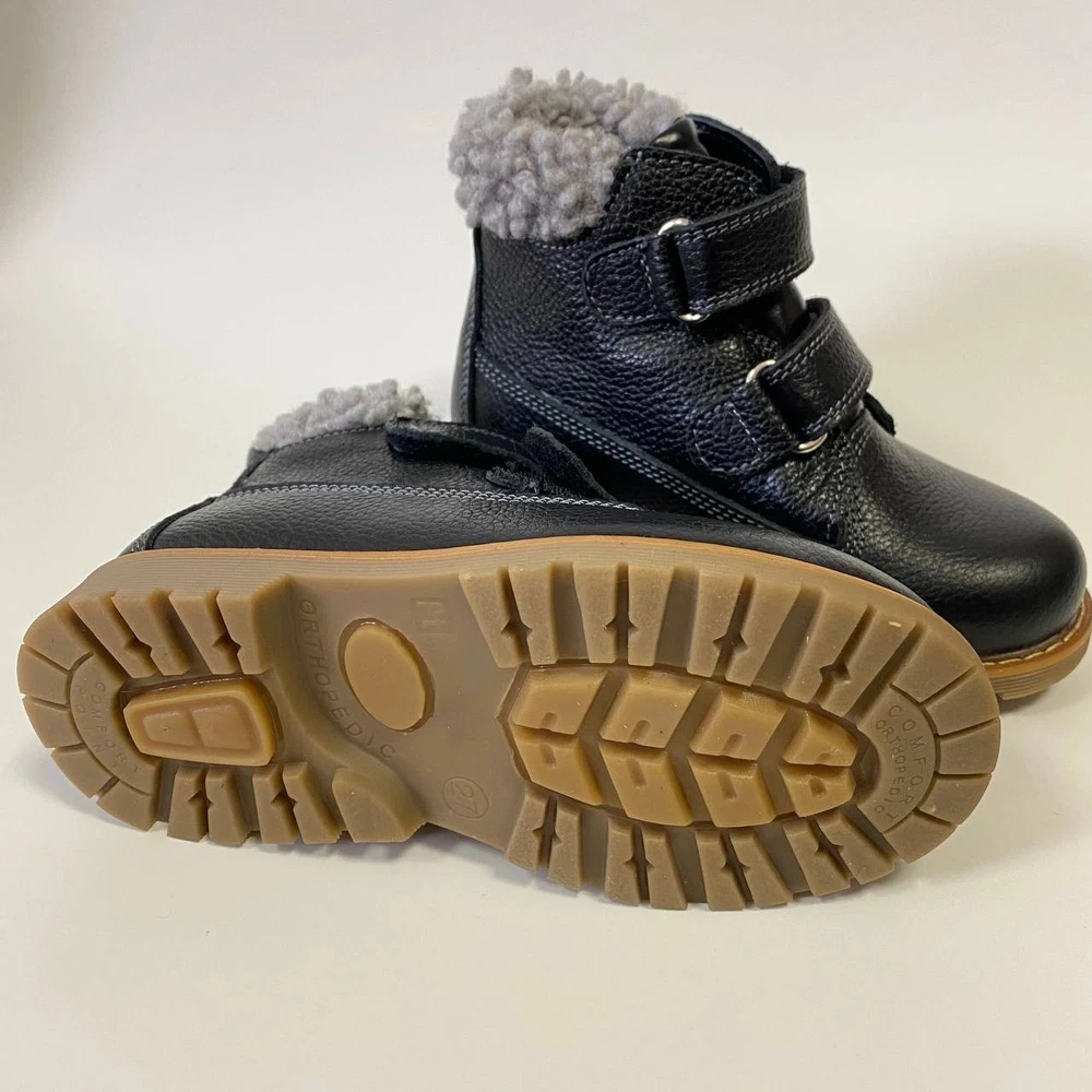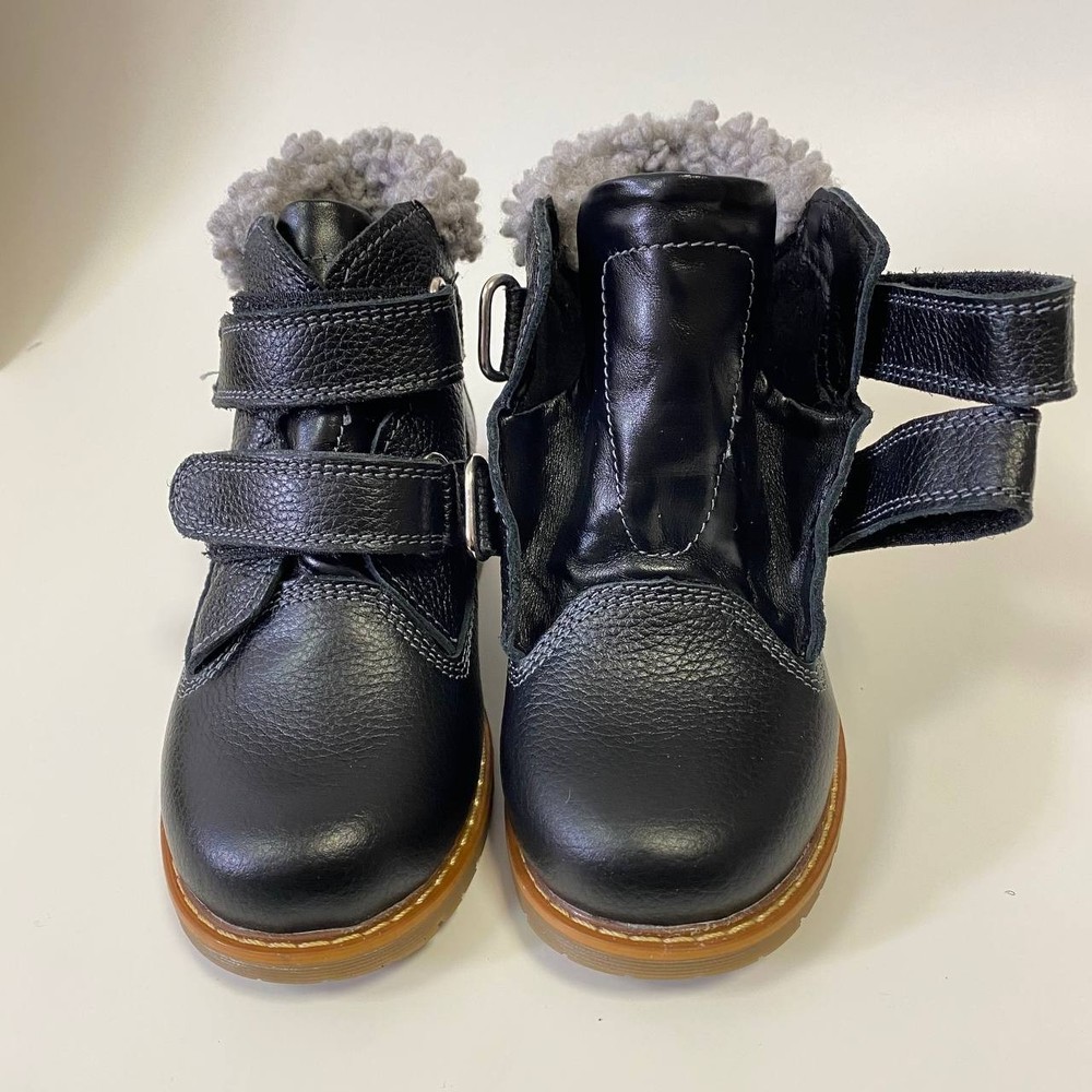 Handmade black orthopedic boots for kids by Orthobe , crafted from genuine leather and lined with warm fleece. These demi-season boots provide comfort, stability, and healthy foot development during cool weather. ✅ Features: Genuine leather upper — durable, breathable, and soft. Warm fleece lining — keeps feet cozy and comfortable. Removable insole with arch support — supports natural posture. Thomas heel — promotes correct foot alignment and balance. Reinforced toe and heel — extra protection for active kids. Hook-and-loop straps — easy to fasten and adjust. Flexible non-slip sole — provides safety and stability. Handmade in Ukraine — crafted with care and precision. 👣 Specifications: Brand: Orthobe Type: Orthopedic Demi-Season Boots Color: Black Material: Genuine Leather Lining: Fleece Insole: Removable, Fleece, with Arch Support Outsole: Rubber, Non-slip Closure: Hook & Loop Heel Type: Thomas Heel 📏 Size chart: EU Insole (cm) 25 17.0 26 17.5 27 18.0 28 18.5 29 19.0