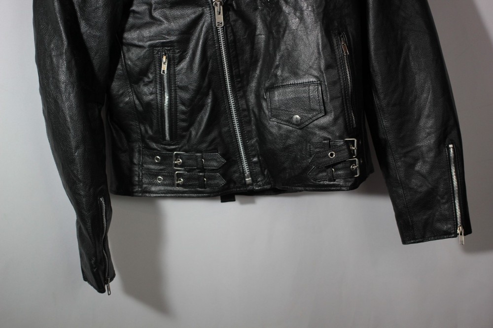 The Black Leather Motorcycle Biker Style Hawk Full-Zip Jacket is a stylish and durable outerwear piece designed for men who love the motorcycle lifestyle. Comes paded and made from high-quality leather with a polyester lining, this jacket provides both protection and comfort. The full-zip design and biker style give it a rugged and edgy look, perfect for those who want to make a statement with their fashion choices. Whether you're hitting the road or simply getting out of the cold, this jacket is a must-have for any motorcycle enthusiast. p2pXt2b 21X24