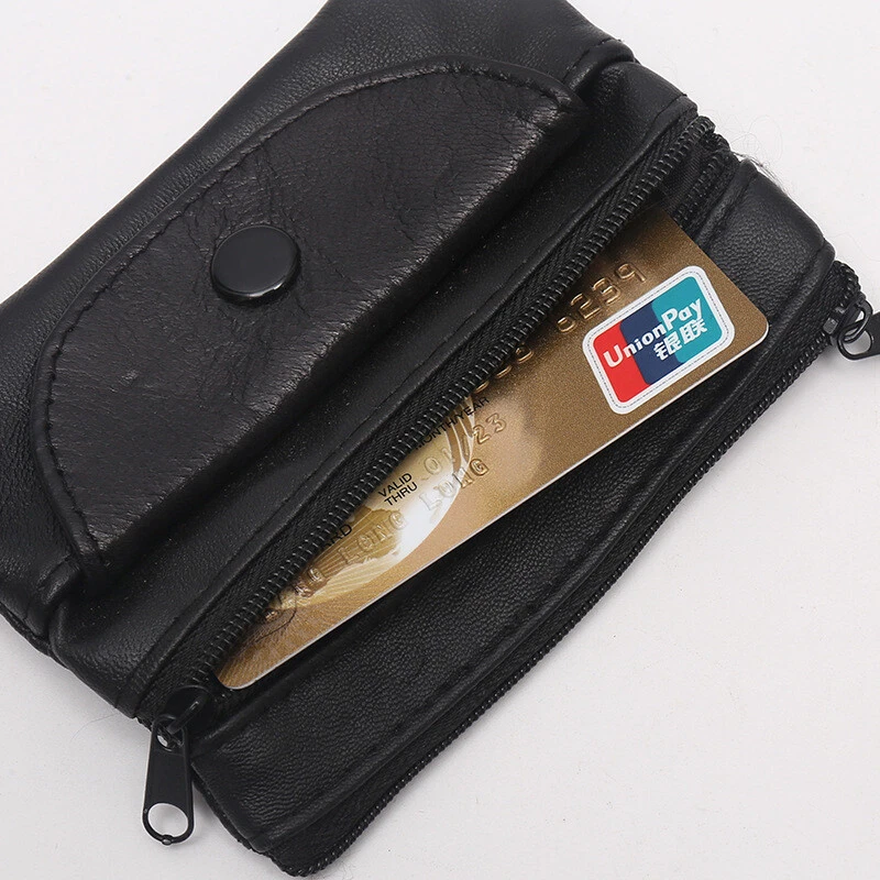 Black Leather Zipper Coin Purse - Portable Small Clutch Neutral