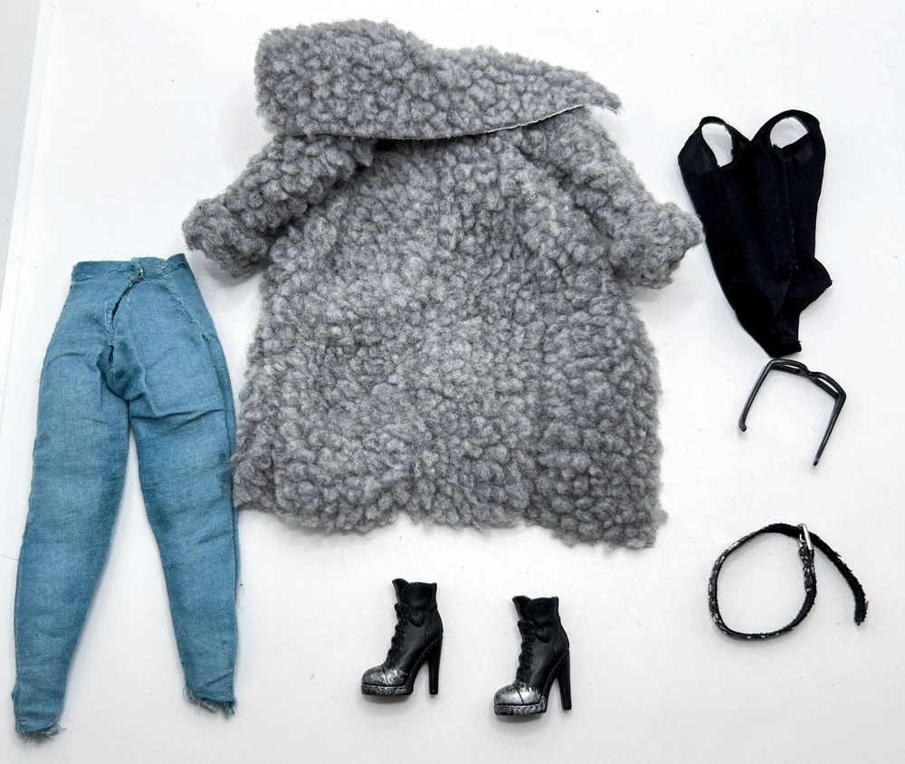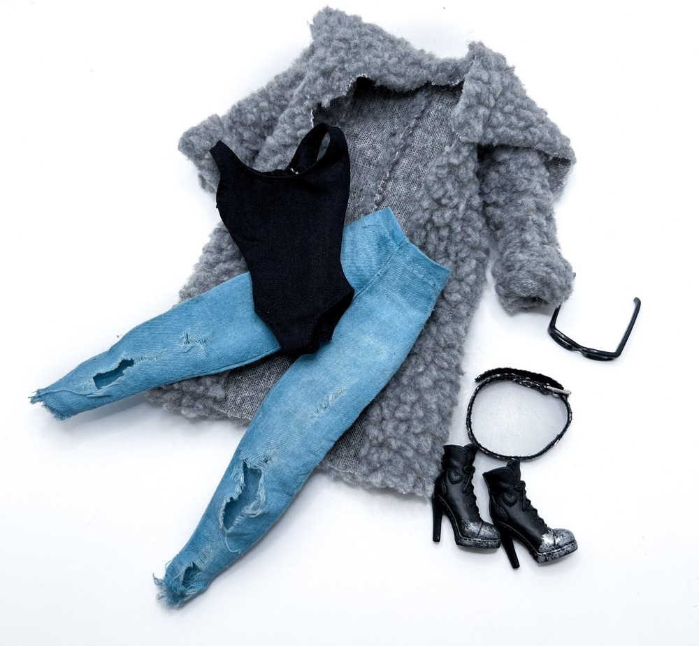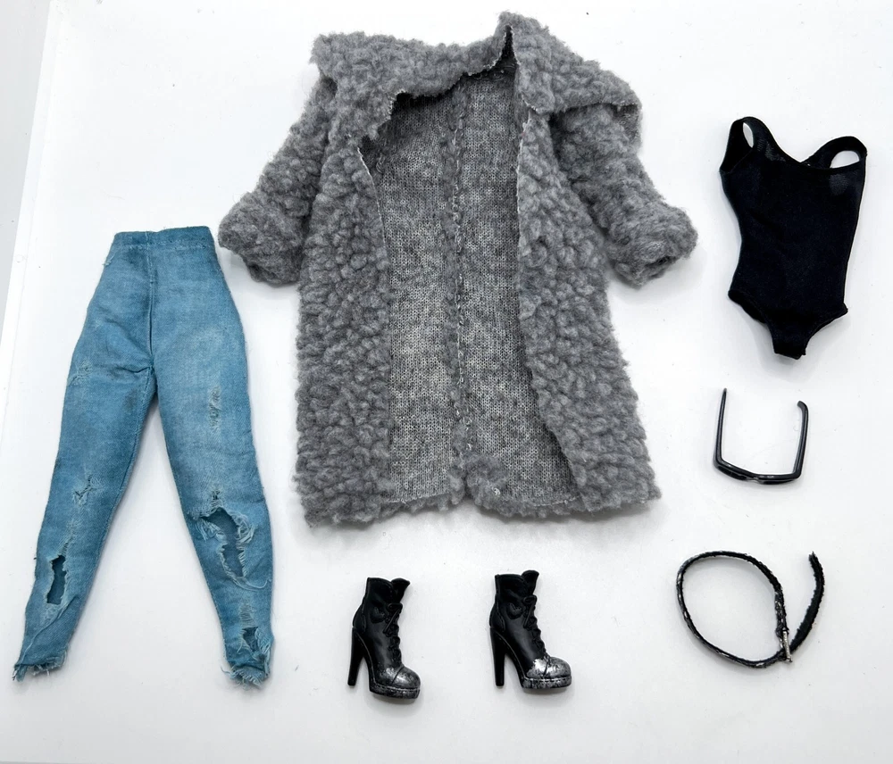 This stylish Barbie outfit is perfect for fashion lovers! The black leotard, coat, jeans, shoes, and boots create a chic, edgy look. Though pre-loved, the set is in great condition with only minor wear—nothing that takes away from its charm. Just note that the doll isn’t included, and some pieces may be from other brands, but they fit standard Barbie dolls perfectly. A fantastic find for collectors or kids who love mixing and matching outfits!
