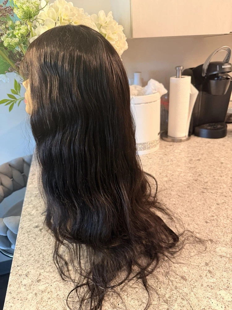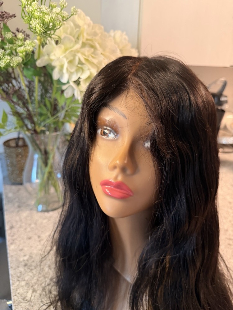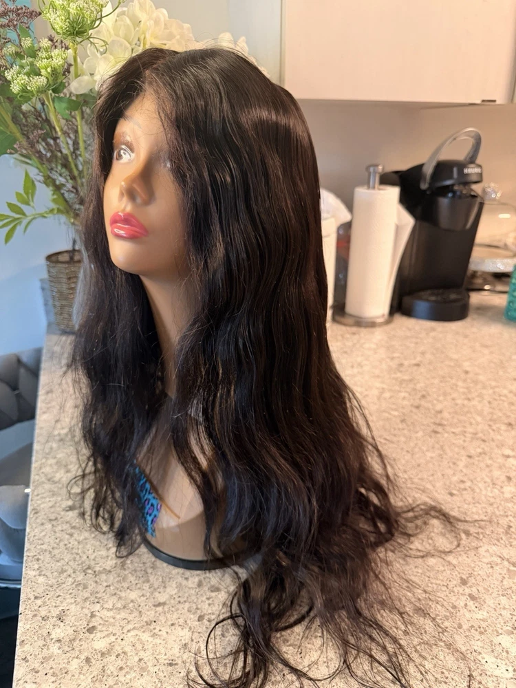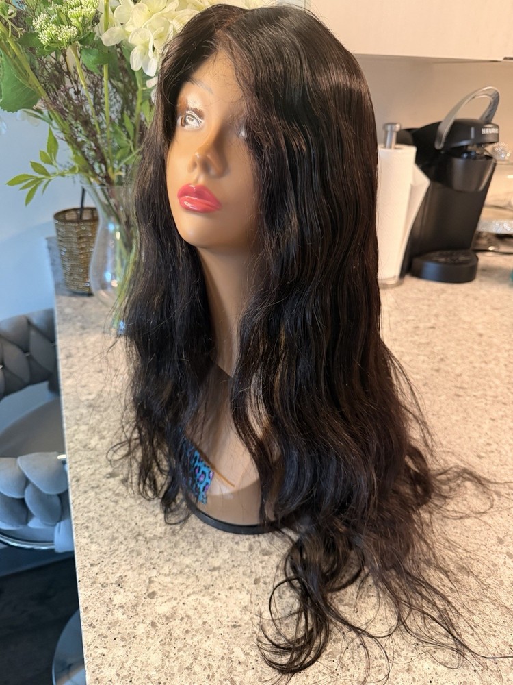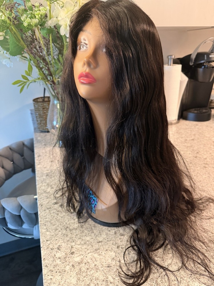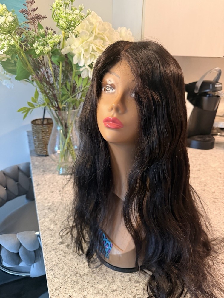 Black Long Wavy Lace Front Wig - Human Hair Wig 24 Inches.