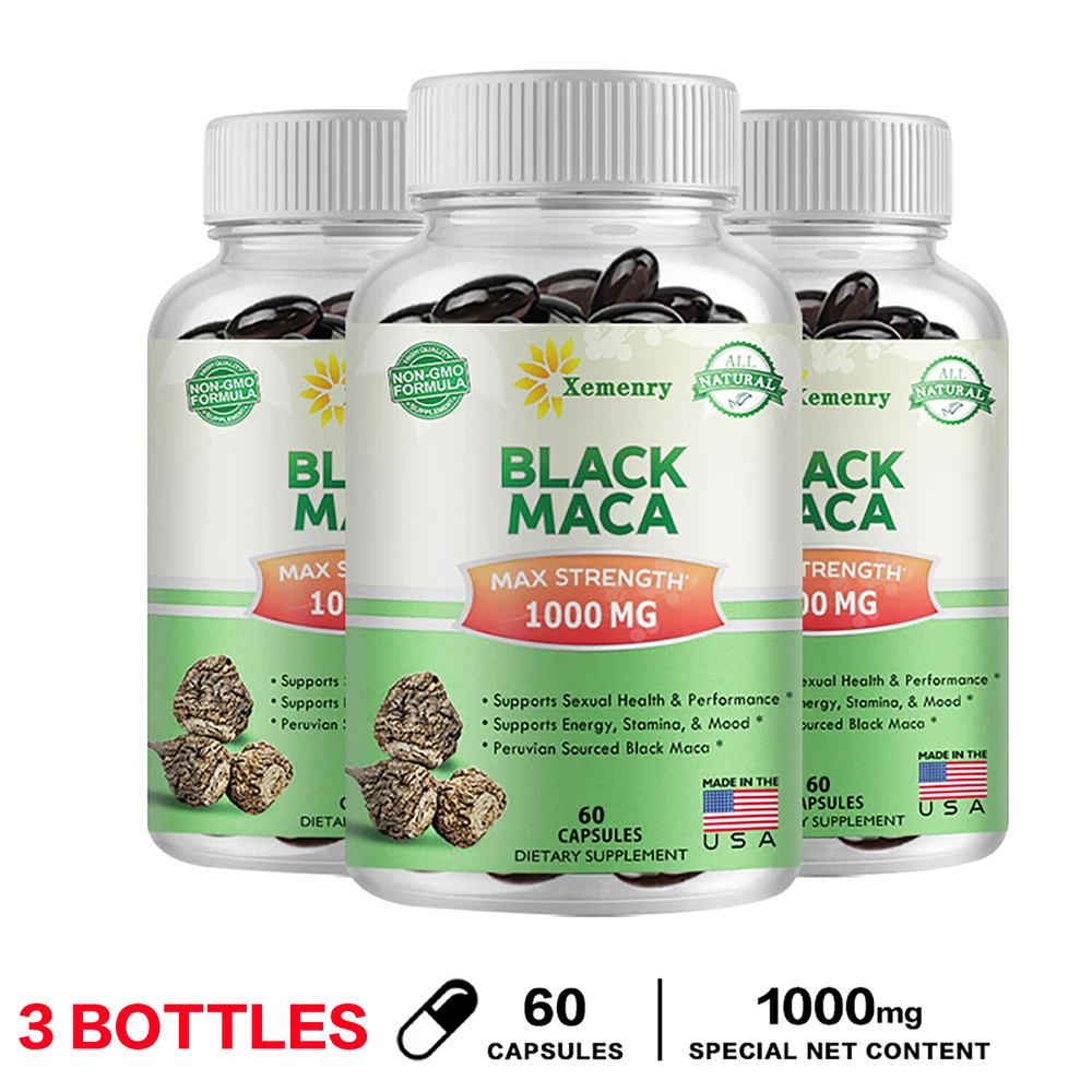 Effects: Testosterone Booster, Energy & Endurance Ingredients: Black Maca Directions: Take 2 capsules once daily after a meal. Shipping: Ships within 48 hours on working days. Shelf life: 2 years Description: Maximum Strength Black Maca: Black Maca is an herb native to the Andes Mountains of Peru. Peruvian Black Maca is superior to other forms of Maca because it contains more concentrated nutrients and is rich in metabolites and minerals. PREMIUM BLACK MACA: Black Maca helps increase energy, endurance and performance. Also aids in natural testosterone production. Supports muscle building and athletic performance, helps balance and maintain normal mood, and promotes mental focus and clarity. Our capsules are produced in a GMP certified facility and are third-party lab tested. All natural, non-GMO, vegetarian and contains no unnecessary fillers or binders. Document