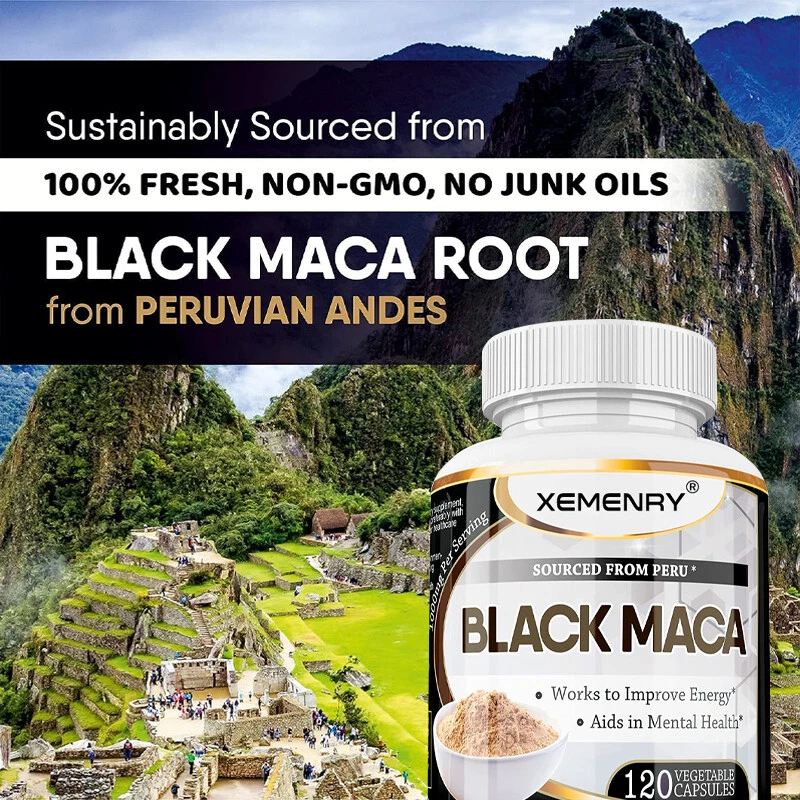 Effects: Men's Health, Energy & Endurance Ingredients: Peruvian Black Maca Directions: Take 1-2 capsules twice a day after meals. Shipping: Ships within 48 hours on working days. Shelf life: 2 years Description: Black Maca is endemic to central Peru. It is said that Inca warriors consumed the root of this plant to increase energy and strength. Black Maca root balances hormone levels in both men and women, improving their performance, mood and endurance, and providing the extra energy needed during action. Black Maca capsules are perfect for both men and women, and just one capsule before training can give you all the energy you need! Black Maca is also a nootropic extract that can improve brain performance. Our Black Maca root capsules may help improve mental focus, memory function, and brain clarity. Additionally, Black Maca capsules can promote feelings of well-being and a good mood. Document