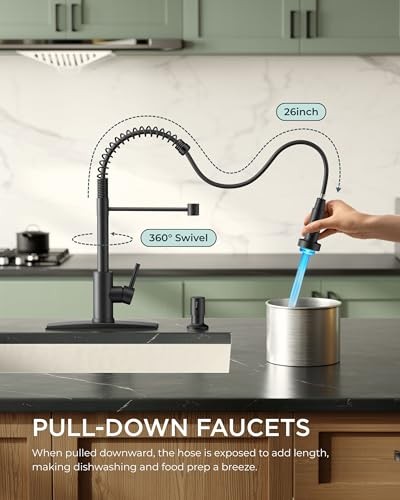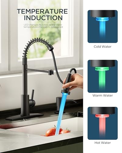 Menu 1. We require immediate payment. 2. We currently accept payment via eBay managed payments only. 3. Once payment is cleared, we will dispatch your shipment within 1-3 business days. Please refer to the "Shipping" tab for more information regarding shipping speed to your destination. LED Kitchen Faucet with Pull Down Sprayer Black, Modern Single Handle Stainless Steel Commercial Spring Sink Faucet with LED Light for Farmhouse Camper Laundry Camper Product description Futuristic LED Light Feature: The kitchen faucet with LED light sprayer is powered by hydroelectric energy, and features changes in color with water temperature, enhancing safety to prevent scalding for children and the elderly Premium Quality: Made from SUS 304 stainless steel, this kitchen faucet meets lead-free standards. It features five layers of nanotechnology plating for durability and a ceramic cartridge tested over 5,000,000 times to ensure leak-proof performance Dual Functionality: This kitchen faucet with pull down sprayer has two settings: STREAM for filling and SPRAY for cleaning. It includes an integrated aerator that saves 20% more water while delivering a strong flow rate of 1.8 gallons per minute at 60 PSI DIY Friendly Installation: Install our sink faucet effortlessly in under 15 minutes without professional assistance, includes a 10-inch detachable deck plate for one or three holes kitchen sinks, and all mounting hardware for a hassle-free setup 24/7 Technical Support: This USA/CAN standard faucet for kitchen sink, laundry utility rooms, RVs, and bars. Rest assured that our comprehensive support includes two-year limited and dedicated technical support - Buy confidently and reach out anytime PLEASE MESSAGE US IF YOU HAVE ANY OTHER QUESTIONS, AND MANY THANKS FOR READING ALL OF THIS. Copyright ©#. All Rights Reserved.