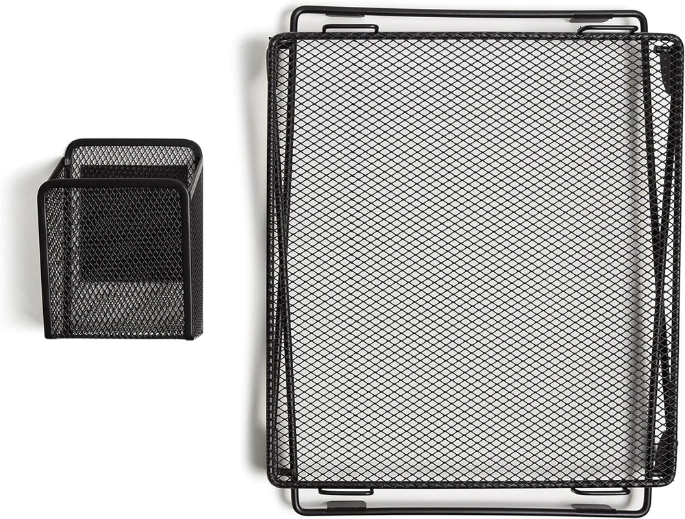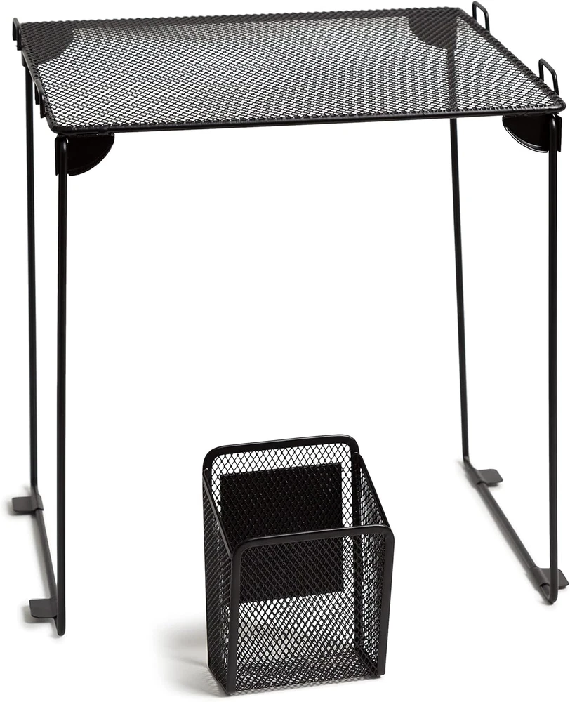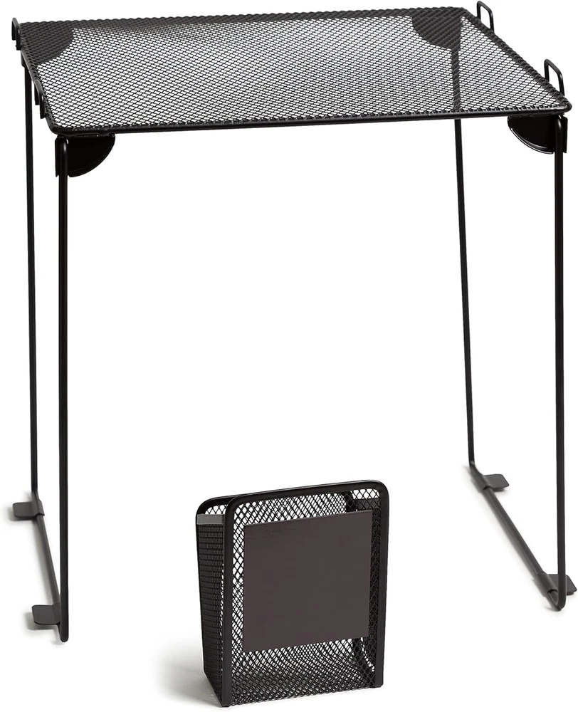 Black Mesh Locker Organization Kit, Includes Magnetic Cup and Folding Shelf, 2 P