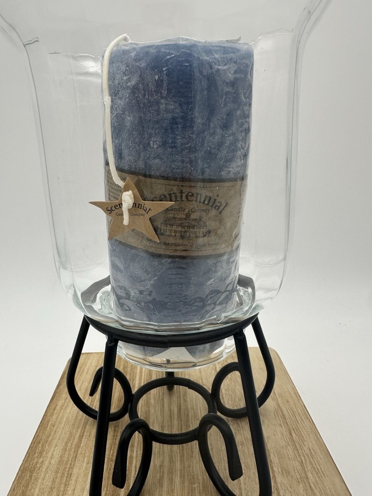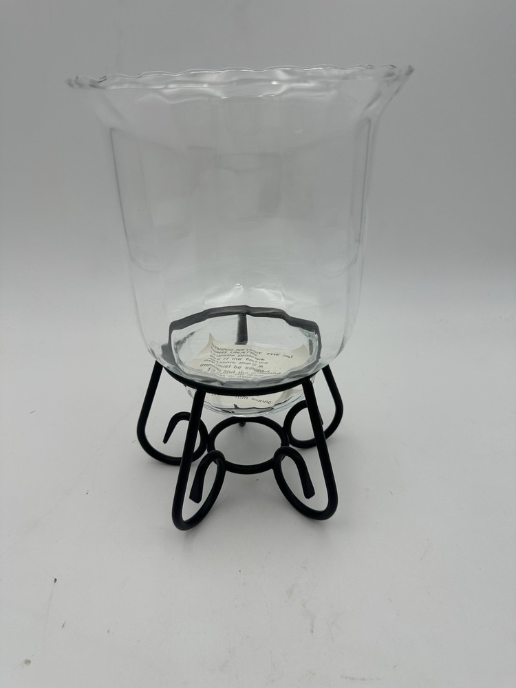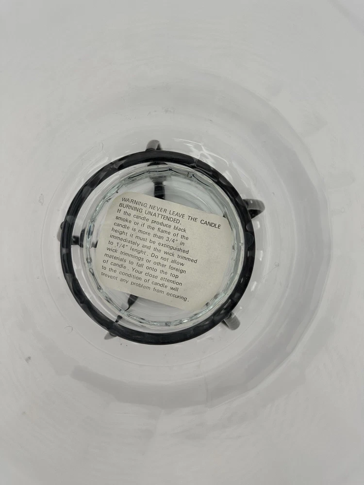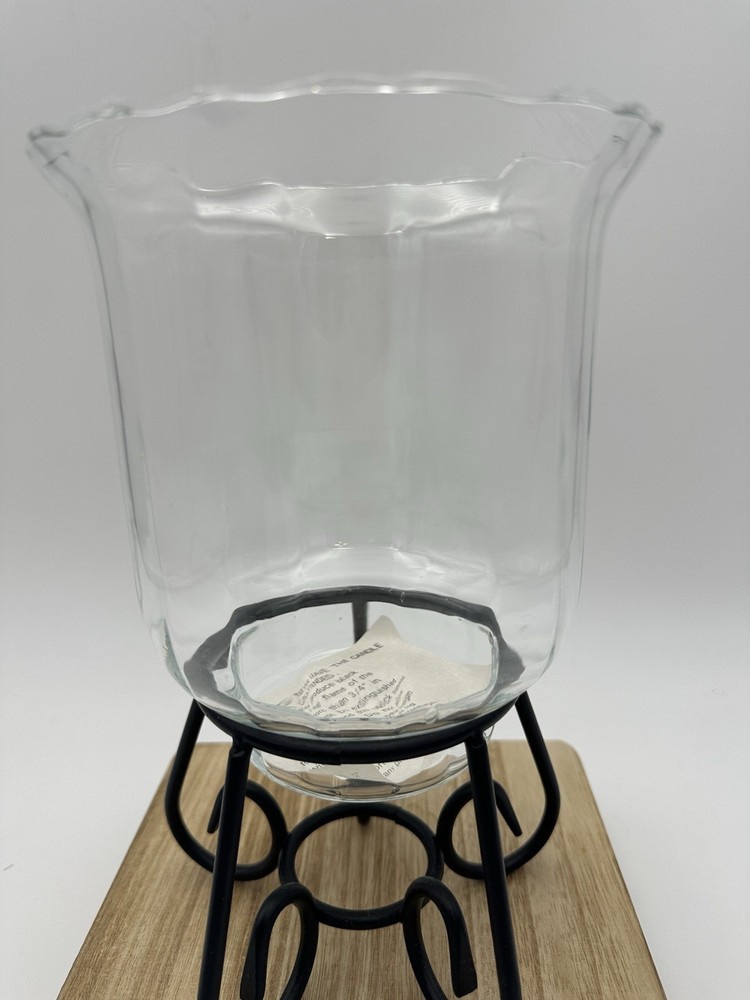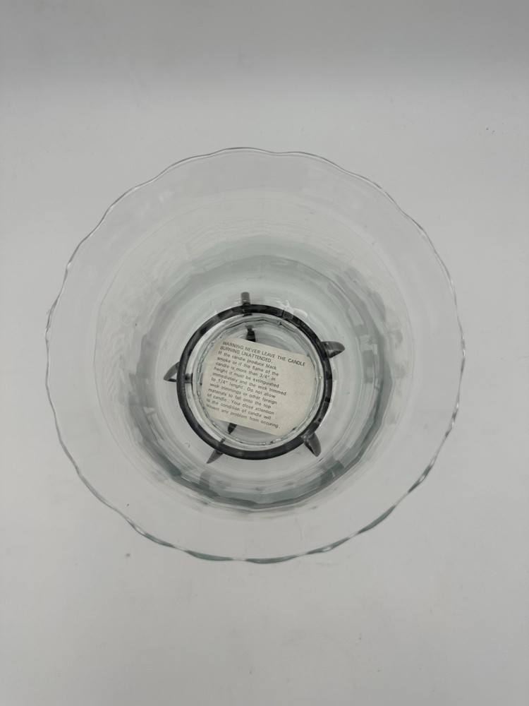 Never used, no box Comes with new candle also new Glass has smooth, long bevels 10” tall 6.25” wide at top