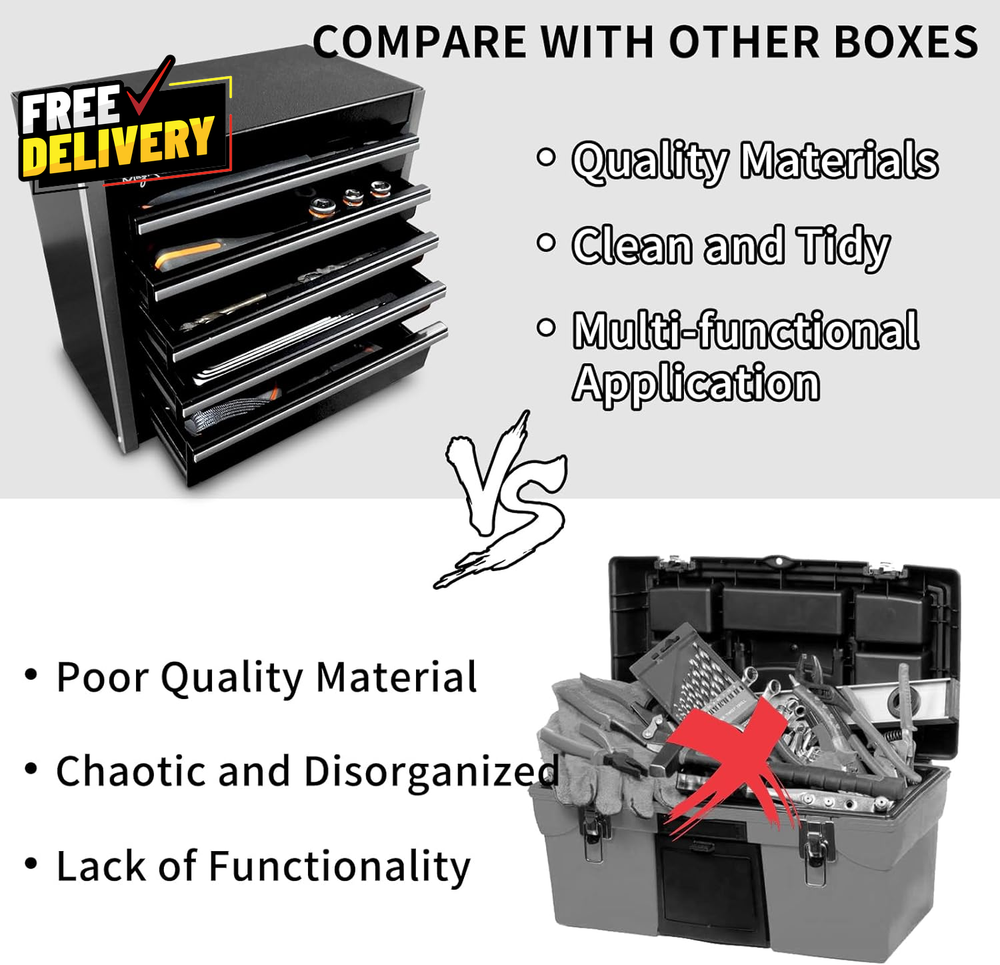Store New Arrivals Add to Favorite View Feedback Contact Black Mini Metal Tool Box with 5 Drawers and Top Storage Portable Tools Storage Description MULTI-DRAWER DESIGN: The tool storage box comes with 3 drawers and a top space compartment. It can create more storage space for all your tools, and the flat top can also provide some extra space for your frequently used tools and parts. HIGH QUALITY MATERIAL: The mini metal tool box is made of high quality material, compact but practical, beautiful and easy to clean. PRODUCT SIZE: The mini tool box measures 8.46x4.53x4.72 inches. Designed to be lightweight and portable for daily use. We have two colours of toolbox (red and black) for you to choose. Please note that this is a small toolbox, please check the size before purchasing. MULTI-DRAWER DESIGN: The tool storage box comes with 3 drawers and a top space compartment. It can create more storage space for all your tools, and the flat top can also provide some extra space for your frequently used tools and parts. DESIGN: Each drawer is easy to open and close and is lined with PVC to reduce noise when placing tools and protect them from rusting. Item model number 884-HF1-R Batteries Required? No Number of Compartments 4 Color black Water Resistance Level Not Water Resistant Material Metal Country of Origin China Maximum Weight Recommendation 2.4 Kilograms Item Weight 5.08 pounds Batteries Included? No Size 5 drawer Product Dimensions 8.46"L x 4.53"W x 4.72"H Included Components Mini Metal Tool Box ABOUT US Prior to making any purchase from our store, we’d like to introduce ourselves. My name is Shahzad Yaqub , and I am the proud owner of Epic Emporium Deals , located in the great state of Illinois, USA. I have been an active and trusted eBay seller since Jan 14, 2025 . At Epic Emporium Deals , we are committed to offering competitive prices and top-quality products . Our extensive collection features a wide variety of items, including media such as books, movies, music, and games , as well as electronics, toys, sporting apparel, clothing, tools , and general home and garden essentials —and much more! If you have any questions or require assistance, please don’t hesitate to reach out. Your satisfaction is our priority, and we look forward to providing you with an exceptional shopping experience. SHIPPING We are always working hard to ensure your package arrives as soon as possible. Please understand that some factors like weather, high postal traffic, and the performance of shipping companies are outside of our control. We offer free shipping to the lower 48 states and ship within 2 business days of payment, usually sooner. We do not accept P.O. Boxes. Please provide a physical address. For shipping outside of the continental USA, we only use eBay's Global Shipping Program. The item is shipped to IL and then sent to the rest of the world. International customers are responsible for all duties and taxes. Continue to 'check out' to calculate costs for shipping the item to your country. Messages regarding eBay's Global Shipping Program MUST be directed at eBay EXCLUSIVELY. RETURNS We do not accept returns under normal circumstances. However, we will gladly consider a return if the item is received broken or if the wrong size is sent to you. In all other cases, returns will not be accepted. CUSTOMER SATISFACTION We try our very best to make sure every customer is completely satisfied. If there's a problem, message us! We're happy to help.