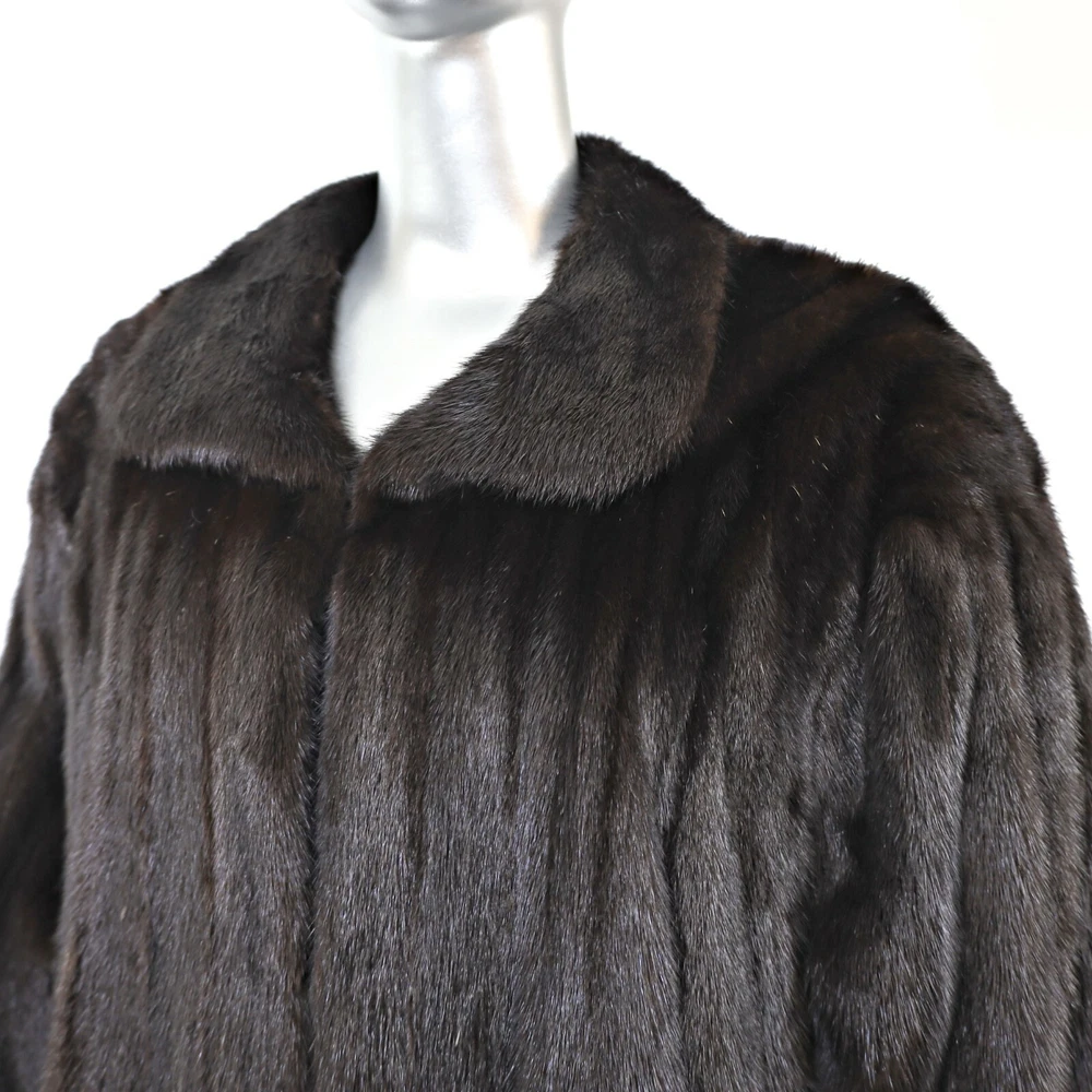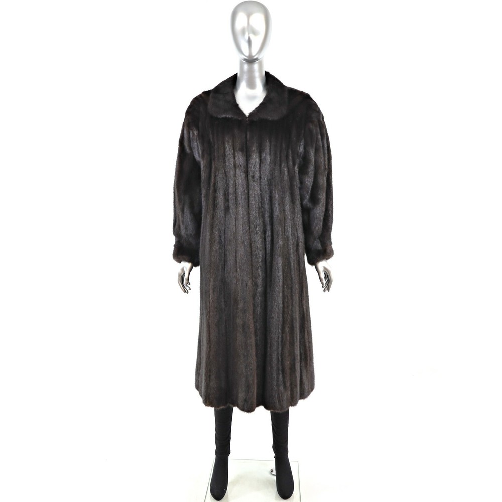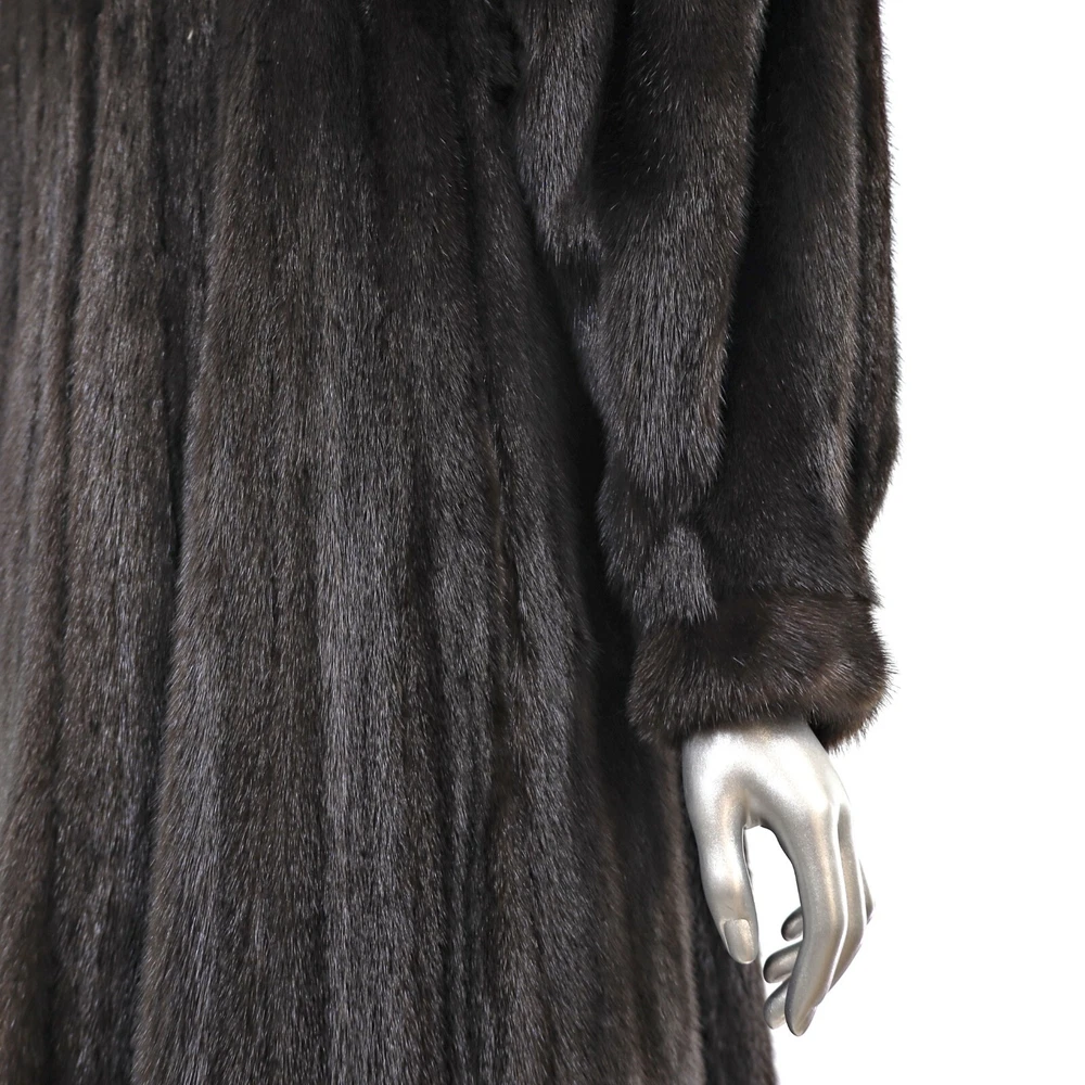 Full Length Black Mink Coat #USED FURS #VINTAGE FURS #PREOWNED FURS CONDITION: GOOD PRE-OWNED CONDITION, SOFT AND SUPPLE, NICE COAT! THIS FUR WAS TAKEN CARE OF VERY WELL BY THE PREVIOUS OWNER AND HAS BEEN KEPT IN COLD STORAGE. THIS FUR WILL LAST FOR MANY YEARS. PLEASE SEE PICTURES FOR ALL DETAILS Measurements: Size: M Approximate Bust: 46 " Coat Length: 43 " Shoulder to Shoulder: 20 " Sleeve length from Shoulder: 25" Sweep: 74 " Brand: Unknown Monogram: Yes Closures: Hooks and Rings Pockets: Two side pockets and one inside pocket OUR MANNEQUIN IS SIZE EXTRA SMALL (BUST: 33" - WAIST: 25" - HIP: 35" - SHOULDER: 18" - SLEEVE: 24") Shipping: We ship via UPS ground shipping for $20.00 for addresses within the US. Items will be shipped out within 3 days of cleared payment. We welcome international bidders. International shipping fees will be calculated at purchase and the item will be sent via DHL Express. International shipping time may vary. Please email us with any questions! All International buyers are responsible for any custom or duty fees when purchasing! Returns: Returns are accepted within 14 days of receipt. Item must be in the same condition as shipped to receive a refund. Shipping charges are non-refundable. Buyer is responsible for return shipping fees. Check out our other listings for more gorgeous fur coats and accessories! ITEM# 6311