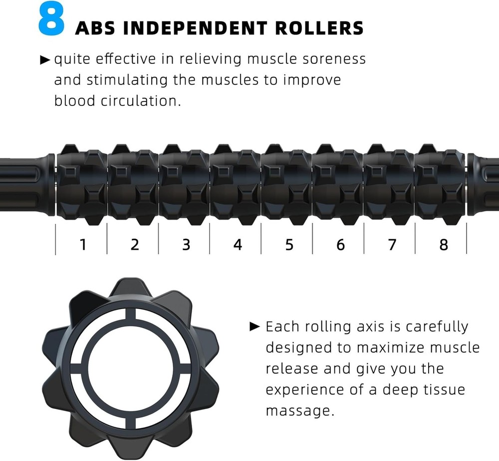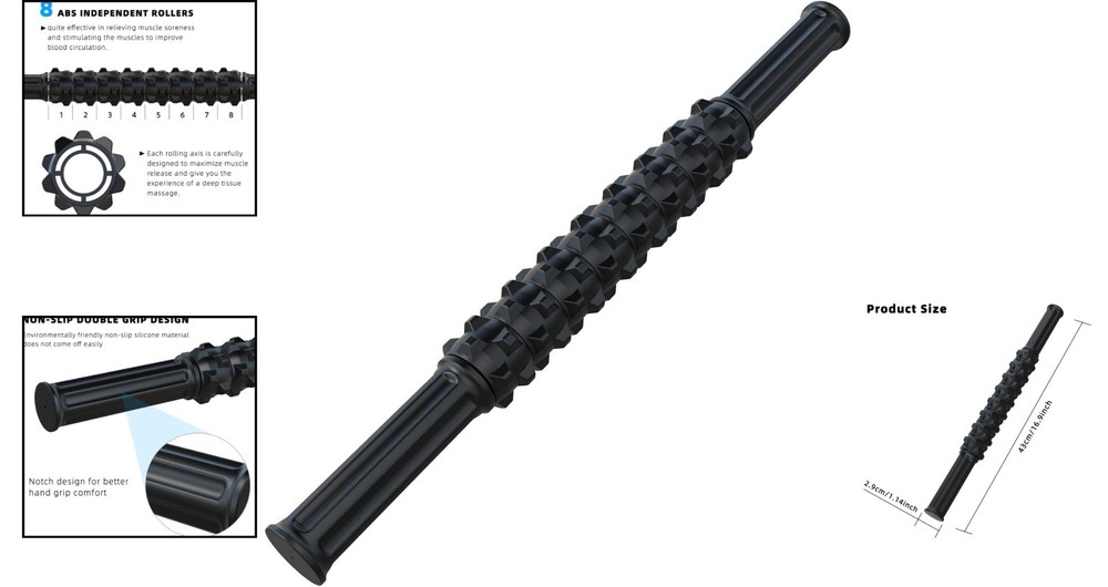 Black Muscle Roller Stick - Alleviate Soreness & Enhance Recovery ‹ › ‹ › ‹ › ‹ › ‹ › ‹ › ‹ › ‹ › ‹ › Black Muscle Roller Stick Alleviate Soreness & Enhance Recovery Features: Effectively relieves muscle soreness, aids recovery, and reduces stiffness and pain. Improves strength and circulation while also decreasing the risk of injury. Crafted from high-quality industrial strength materials with silicone non-slip grips. Durable 304 stainless steel bar core and 8 individually rotating ABS rollers. Compact dimensions of 17.5 x 1.77 inches and a lightweight design at only 11 ounces. Highly recommended by physical and massage therapists, ideal for various muscle groups. Portable and convenient for storage and travel—perfect for home, gym, or on the go. Exclusive and 24-hour customer support to ensure your satisfaction. Benefits: Effectively reduces muscle soreness and enhances recovery times. Improves blood flow and flexibility for optimal performance. Ergonomic design ensures a comfortable grip and easy handling. Designed for use on multiple muscle groups including calves, hamstrings, back, glutes, and shoulders. Perfect for pets, helping alleviate tension in horses and dogs as well. Lightweight and compact, making it the ultimate travel companion for athletes and fitness enthusiasts. Why choose our Black Muscle Roller Stick? Elevate your recovery routine with our Black Muscle Roller Stick, designed for those who demand more from their muscle relief tools. Unlike inferior products that fall short, this muscular relief device is constructed to stand the of time while providing superior comfort and efficacy. Don't let soreness hold you back from achieving your fitness aspirations—experience the transformative benefits today. Order your Muscle Roller Stick now and enjoy the unparalleled support it brings to your active lifestyle! Shipping Free & Fast Shipping - We offer free shipping to most of the USA with a normal delivery time of 3-7 days. However, due to the current situation, additional delivery time (up to 3 weeks) may be required for some items. Alternative Carriers - We may use alternative carriers (e.g. USPS, FedEx, UPS, etc.) to ensure your package arrives safely and on time. Due to the use of multiple carriers, we are unable to provide a tracking number automatically. Handling Time - Orders are processed and shipped within 1-2 business days of receiving cleared payment. Shipping Restrictions - Shipping to Alaska, Hawaii, Puerto Rico, Guam, and other US territories may incur shipping charges or delivery restrictions. Please contact us before ordering, or your order can be refunded/cancelled. State Restrictions - There may be restrictions based on your state of purchase. For example, certain items may not be shipped to California due to state regulations. Contact for Tracking Updates - If you require tracking updates or have any concerns about the delivery of your order, please feel free to contact us, and we will be happy to assist you. Return 30-Day Hassle-Free Returns - We want you to be completely satisfied with your purchase. If you are not, you can return the item within 30 days of receiving it for a full refund or exchange. Easy Return Process - To start a return, simply contact us and we will provide you with a prepaid return shipping label and detailed instructions. Restocking Fee - There are no restocking fees for returns. However, the buyer is responsible for return shipping costs if the return is not due to a seller's error. Refund Processing Time - Refunds will be processed within 5 business days of receiving the returned item in its condition. Payment We accept all major credit cards, PayPal, and Apple Pay for your convenience. Your payment information is secure and encrypted to ensure a safe and seamless transaction. Please complete your payment within 3 days of purchase to avoid any delays in shipping. Feedback Your feedback is extremely important to us. We strive to provide the best products and customer service possible. If you are satisfied with your purchase, please take a moment to leave us a positive review. If you have any concerns or issues with your order, please contact us before leaving negative feedback. We are committed to resolving any problems and ensuring your satisfaction. Contact Us If you have any questions or concerns, please feel free to out to our customer support team. You can contact us through the eBay messaging system. We are available Monday to Friday, 9:00 am to 5:00 pm EST, and we will do our best to respond to your inquiry within 24 hours. Buy it now and enjoy a pleasant shopping experience! Unit Quantity: 1.00 count Labels & Certifications: Massage Stick Voltage: 0 V Body Area: Arm,Back,Full Body,Legs,Neck,Shoulder,Gluteus Maximus,Calves,Hamstrings,Quads Massage Functions: Pain Relief Features: Lightweight,Manual,Portable,Compact,Ergonomic,Non-slip Grips Material: ABS,Silicone,Stainless Steel Number of Massage Heads: 8 Power Source: None Type: Massage Stick Roller Color: Black Item Weight: 11 ounces Endurance Time: 0 Hours