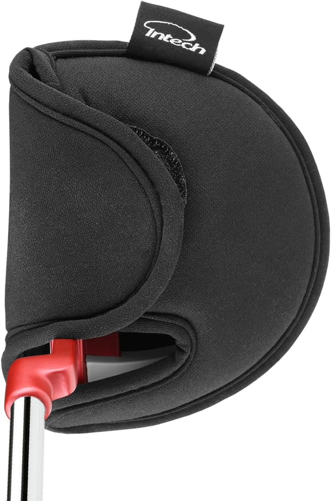 FITS MOST MALLET PUTTERS – Popular size (5.5” long x 4.25” wide) when fastened SOFT, PADDED NEOPRENE CONSTRUCTION – Protects club head VELCRO ENCLOSURE – Secures and ensures the headcover will stay on GREAT REPLACEMENT - For a misplaced headcover The Intech Neoprene Black Mallet Putter Cover is handy to keep the putter in good condition or replace a misplaced headcover. Velcro enclosure and slit designed to fit the shaft or hosel of most right-handed mallet putters on the market.