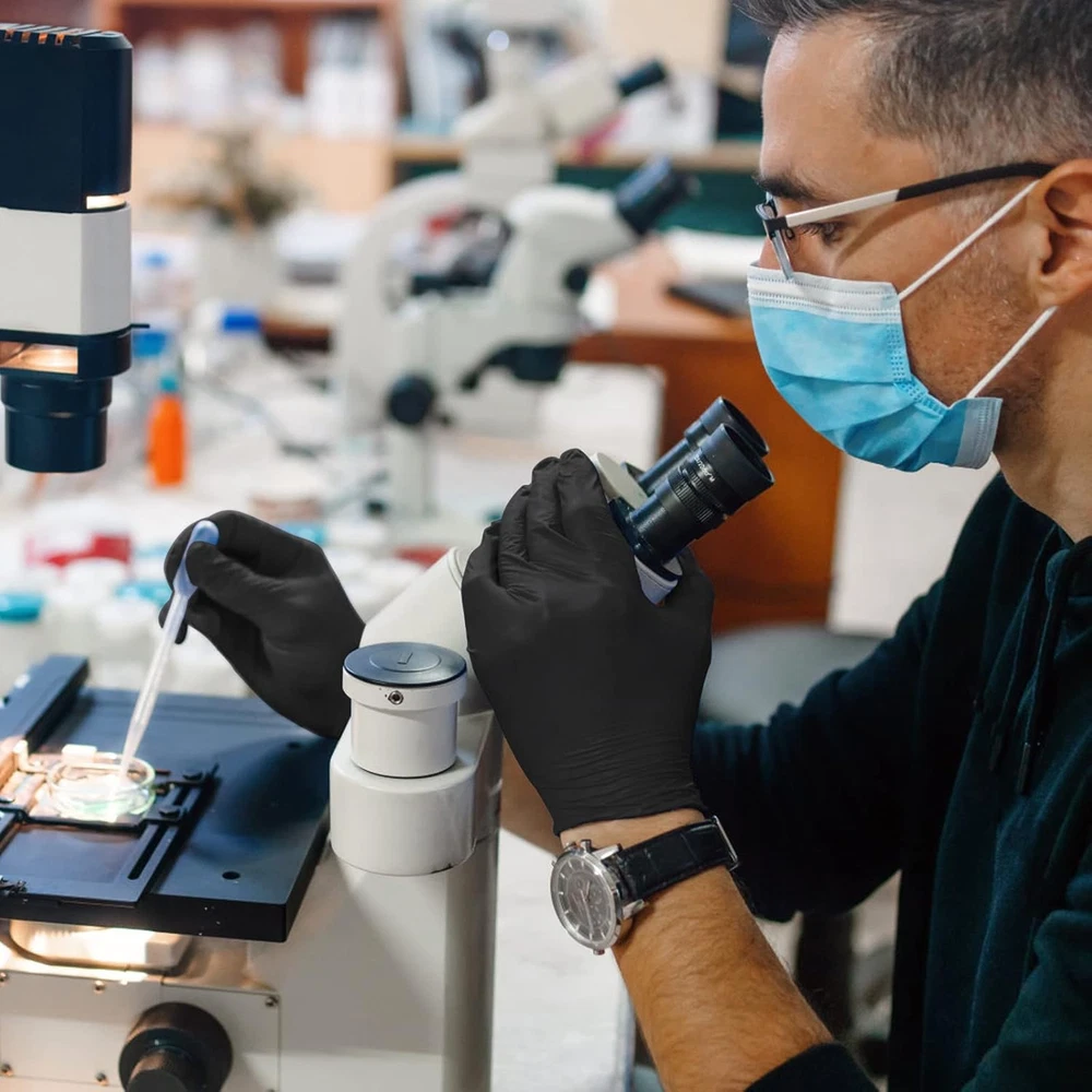 POWDER FREE LATEX FREE, Nitrile Disposable Gloves. Protect your hands from any harmful bacterial dirt. It is also a safe and trusted option for those with sensitive skin or those allergic to rubber and latex without causing the slightest discomfort PREMIUM ENDURING-Nitrile Gloves: Latex free gloves are made of high quality nitrile material, Long-lasting and safe. Very friendly to your skin. They are stronger and thicker than ordinary disposable gloves, and can also provide higher tactile sensitivity - 4Mil, can touch the phone screen. Ideal for commercial/industrial use/health care 100-PACK GLOVES: These Small disposable gloves are thoughtfully designed to be easy to put on and take off without compromising your dexterity, just like a bare hand. The great value 100-hand set comes in a portable case for easier use and storage, and you can always change to a new pair of gloves to protect your hands UNLIMITED USES FOR SCIENTIFIC PROFESSIONALS AND OTHERS: High quality examination gloves are ideal for paramedics, science specialists, chefs, auto mechanics, hairdressers...etc. Practical and versatile, they can be used in cooking and food preparation services, Pedicure, painting, cleaning, etc. TRUSTED CHOICE: GMG SINCE1988 is a high-quality, premium store you can trust, and for 30 years we've been committed to protecting people's hands. 24 hours a day customer service online, to solve your questions for you Product Description 1 Optimal Comfort 2 Food Safe 3 High Elasticity 4 Extremely Durable Exam Grade 1 Optimal Comfort 2 Exam Grade 3 High Elasticity 4 Puncture-Resistant
