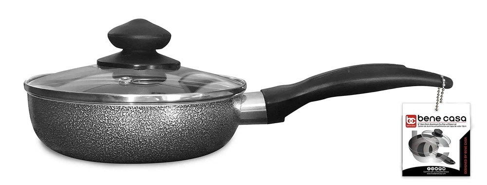 BC-79030 Features: -Inside surface: Non-Stick. -Aluminum coating. -Dishwasher safe. -Glass lid. Dimensions: Overall Height - Top to Bottom: -2". Overall Width - Side to Side: -13". Overall Depth - Front to Back: -6". Overall Product Weight: -1.25 lbs. CONTENTS: Aluminum non-stick frypan with a glass lid to cook up many types of meals. USES: With a non stick surface it makes it easier to cook anything from eggs, bacon, stir fry, veggies, fish and many more. CLEANING: After enjoying your delicious meal it's time to clean up, and it couldn't be easier with this frypan being dishwasher safe. SAFETY: Having a glass lid and sturdy handle, brings ease to cooking without getting burned. DURABILITY: Made of aluminum has a strength to avoid getting dings or scratches if dropped by accident.