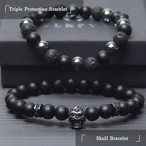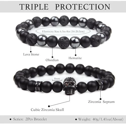 Return Policy Fast Delivery Trusted seller Black Obsidian Bracelet - Skull Bracelet - Tourmaline Beaded Bracelets - 8MM Black Onyx Hematite Lava Stone Beads Triple Protection Bracelet for Men Women Gifts Product Description 【Triple Protection】This obsidian bracelet is made from a combination of three natural gemstones, black onyx, hematite and lava stone known for their protective properties, giving you triple protective energy. Wearing this bracelet regularly can effectively remove negative energy from the body and promote new energy, helping to eliminate fatigue and stress. 【Natural Gemstone】True obsidian is a guardian stone that brings peace and good luck, allowing us to be protected, encouraged and balanced. Lava stone has strong adsorption properties, is able to absorb and convert negative energy, and can also act as an essential oil diffuser to make your favorite fragrance last all day. Hematite is also a well-known protective and grounding power stone, as it can eliminate negative emotions and purify the body from emotional stress. 【Inspiration Design】This men's bracelet has a range of unique design matches, made up of a triple protection bracelet and a skull bracelet as a combination set. Whether worn alone or stacked with other bracelets, this crystal bracelet adds a trendy and chic touch to any outfit, making it perfect for both casual and formal occasions. 【Exquisite Craftsmanship】 Each natural bead is a high-quality genuine gemstone, carefully selected by hand one by one. Original design and coming with meaning card which is especially for your man to make sure your gift is unique and a surprise to him. This charm bracelet is retractable and has an inner ring size of about 7.5 inches, which fits most men's and teenagers' wrists. 【After-Sales Service】GDLKPYHS is looking forward to bringing you a satisfactory shopping experience, if you have any questions about our products, please feel free to contact us, our service team will answer and provide satisfactory solutions within 24 hours. Shipping Returns Payment Shipping Shipping is FREE to all addresses other than APO/PO boxes in the lower 48 states. All our stock ships from US-based warehouses. Shipped via USPS or UPS (depending on location and package weight) Unless stated otherwise, all orders will ship within 24-72 hours of your payment being processed. Check our feedback to see the great reviews of FAST shipping we offer. Returns Seller does not accept returns Payment We currently accept payment via eBay managed payments only. Once payment is cleared, we will dispatch your shipment within 1-3 business days. Please refer to the "Shipping" tab for more information regarding shipping speed to your destination.