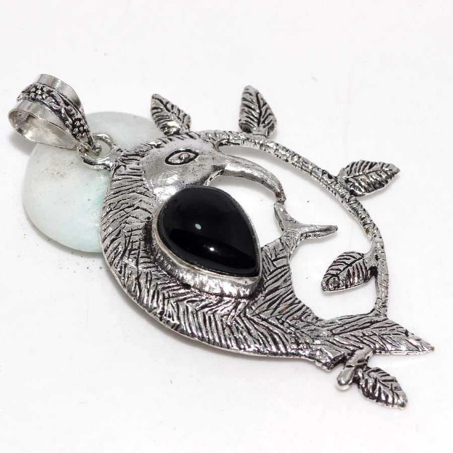 Black Onyx 925 Silver Plated Bird Gemstone Handmade Pendant 2.6" Promise Gift JW