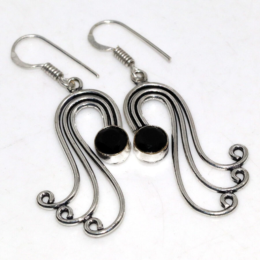 Black Onyx 925 Silver Plated Gemstone Earrings 2.1" Jewelry Gift JW