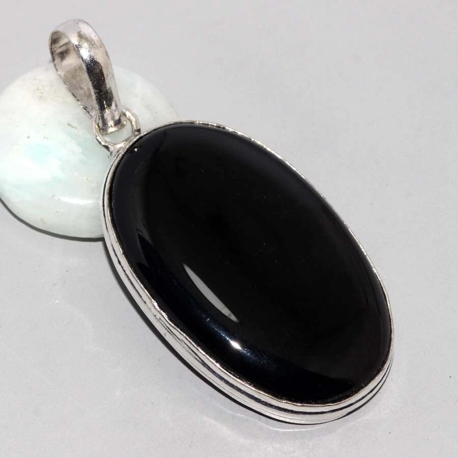 Black Onyx 925 Silver Plated Gemstone Handmade Pendant 2.1" Valentine Gifts JW