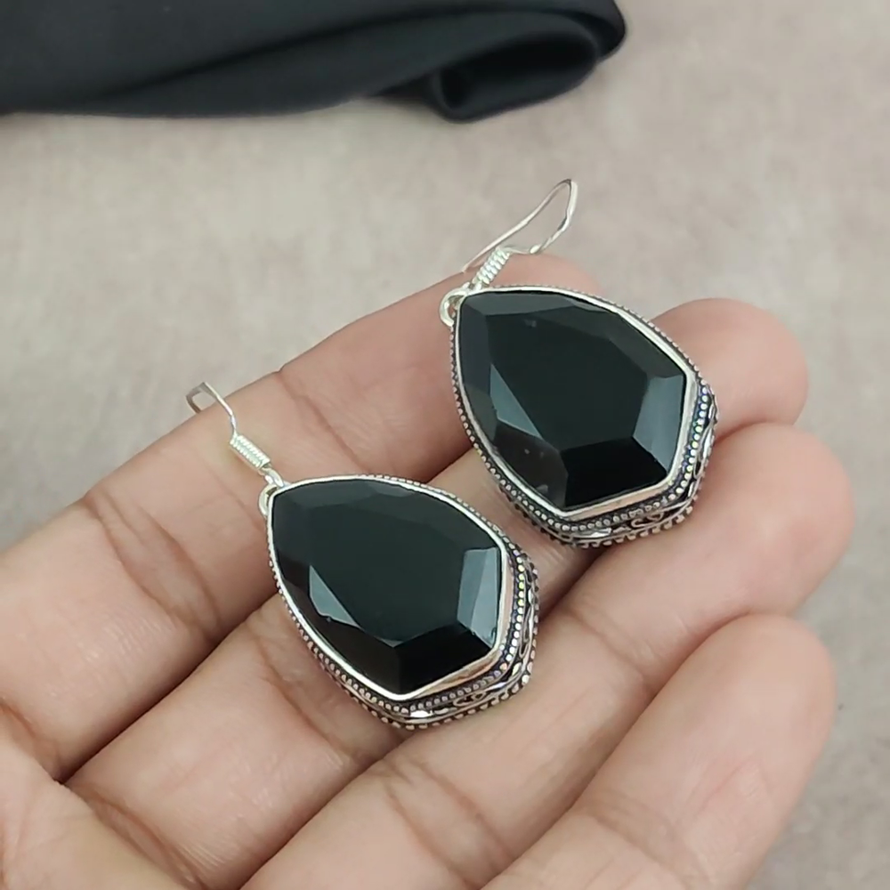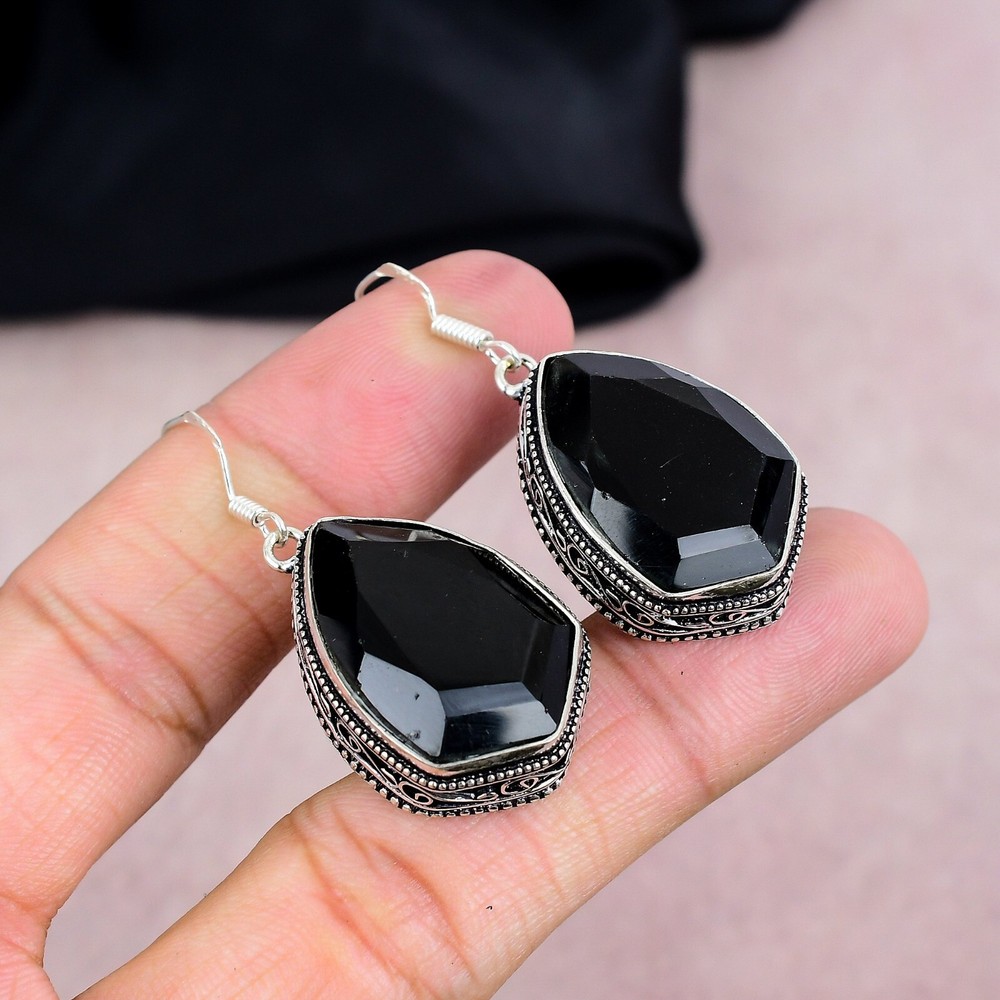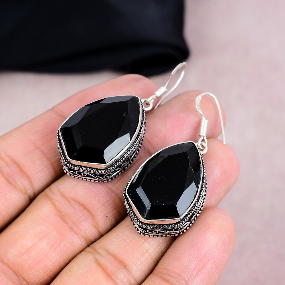 Black Onyx 925 Sterling Silver Handmade Earrings Jewelry Gift