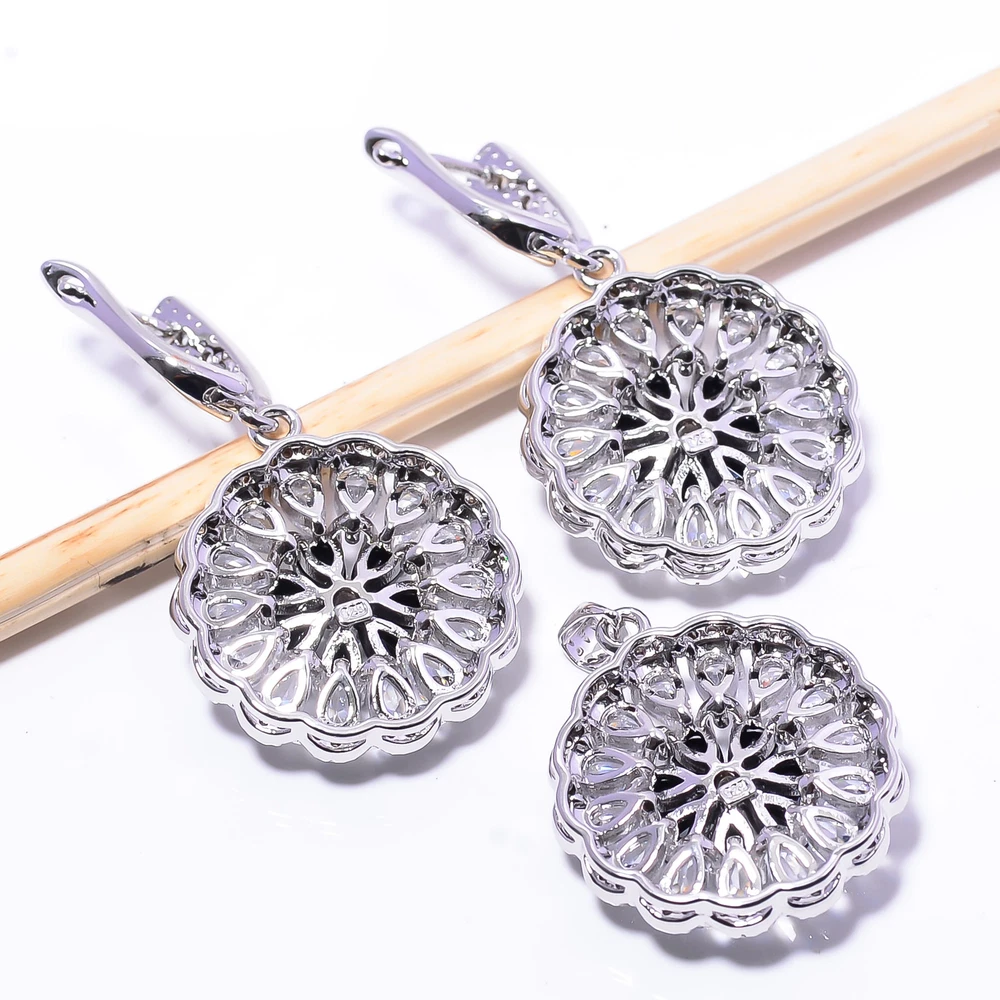Black Onyx & Cubic Zirconia 925 Sterling Silver Flower Pendant Set 1.76" PS13