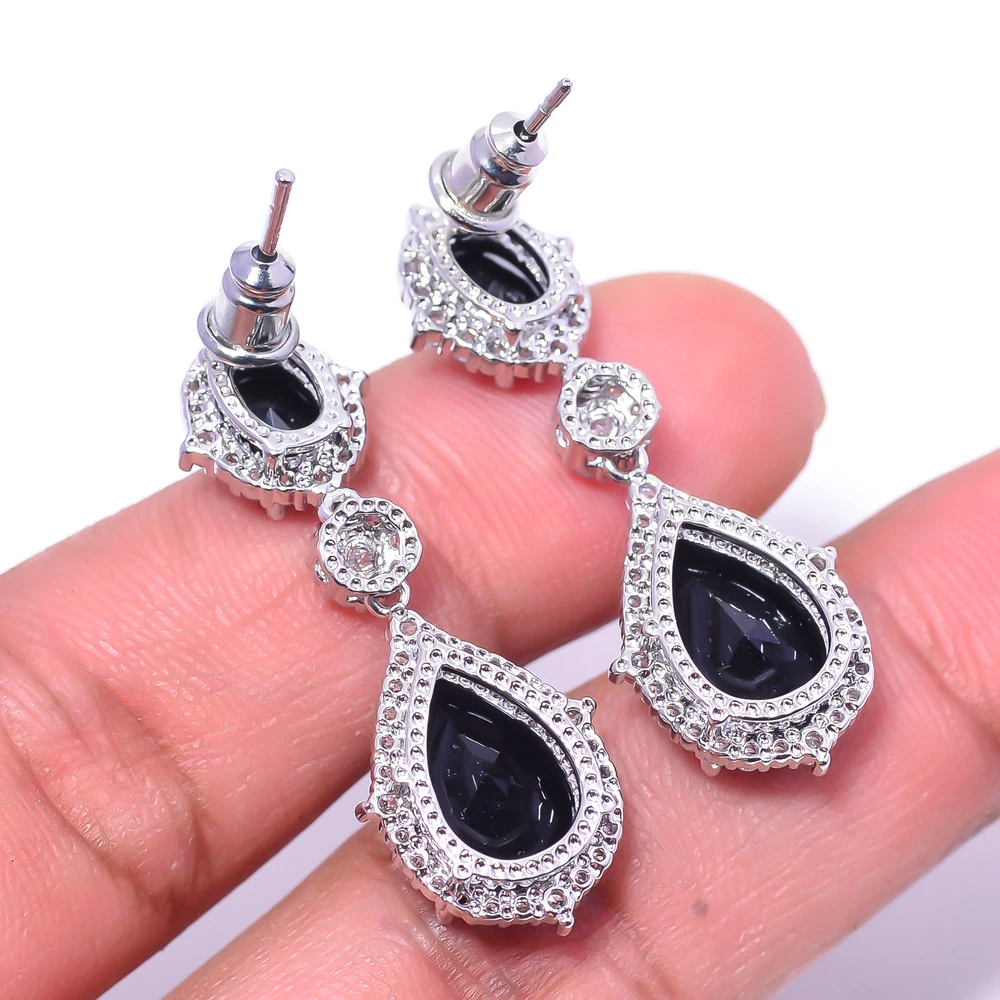 Total-weight-of-Jewelry 7.5 grams Main Stone Depth As Seen in Picture Main Stone Length As Seen in Picture Main Stone Width As Seen in Picture Seller Warranty Yes Handmade Yes Shape As Seen in Picture Signed Yes Vintage As Seen in Picture Wholesale Yes Occasion Christmas, Birthday, Anniversary, Engagement, Wedding, Valen SKU E_9764_774_54 Unit Quantity 1 Unit Type Unit Type Earring Style Dangle/Drop Main Stone Black Onyx Main Stone Creation Simulated Main Stone Color Same As Picture Main Stone Shape Same As Picture Main Stone Treatment Simulated Brand Unbranded Metal Sterling Silver Setting Style collet setting Number of Gemstones 4 Metal Purity 925 Parts Per 1000 Item Length 1.37" Item Diameter Unknown Features Unknown Ear Area Lobe Cut Grade Unknown Customized No Country/Region of Manufacture India Country of Origin United States Base Metal Sterling Silver Secondary Stone CZ Material Gemstone Color Same As Picture Theme Beauty Antique Same As Picture Shipping & Handling - Charge - 1st item-5.90 And Additional item-1.90 Handling Time - 1 Days . Delivery Time - 2 TO 3 DAYS. Shipping Service - USPS First Class Package 2 -3 Days. Returns - 1.We offer a 100% Money Back Guarantee minus shipping for 30 days after receiving the Item / item's. 2..The item must not be altered or damaged in any way shape or form. 3.Upon receiving these items your payment will be refunded. 4.Email us for return instructions before sending merchandise back. 5.Please allow up to 1 business day for all returns to receive credit. 6.Sizing does not affect the return policy. Payment - We accept PayPal for Payment ,should made with in 14 days once buying or winning done , in case of late information expected .
