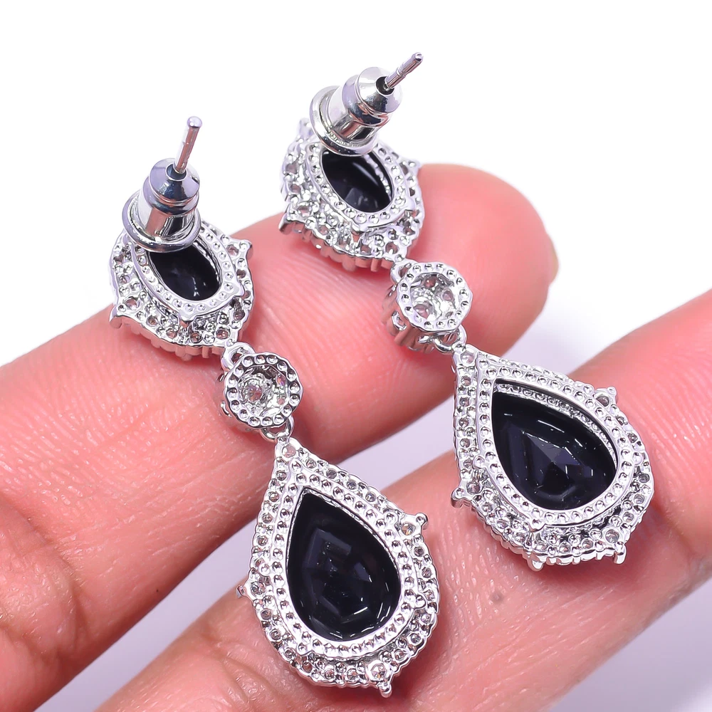 Total-weight-of-Jewelry 7 grams Main Stone Depth As Seen in Picture Main Stone Length As Seen in Picture Main Stone Width As Seen in Picture Seller Warranty Yes Handmade Yes Shape As Seen in Picture Signed Yes Vintage As Seen in Picture Wholesale Yes Occasion Christmas, Birthday, Anniversary, Engagement, Wedding, Valen SKU E_9764_774_55 Unit Quantity 1 Unit Type Unit Type Earring Style Dangle/Drop Main Stone Black Onyx Main Stone Creation Simulated Main Stone Color Same As Picture Main Stone Shape Same As Picture Main Stone Treatment Simulated Brand Unbranded Metal Sterling Silver Setting Style collet setting Number of Gemstones 4 Metal Purity 925 Parts Per 1000 Item Length 1.37" Item Diameter Unknown Features Unknown Ear Area Lobe Cut Grade Unknown Customized No Country/Region of Manufacture India Country of Origin United States Base Metal Sterling Silver Secondary Stone CZ Material Gemstone Color Same As Picture Theme Beauty Antique Same As Picture Shipping & Handling - Charge - 1st item-5.90 And Additional item-1.90 Handling Time - 1 Days . Delivery Time - 2 TO 3 DAYS. Shipping Service - USPS First Class Package 2 -3 Days. Returns - 1.We offer a 100% Money Back Guarantee minus shipping for 30 days after receiving the Item / item's. 2..The item must not be altered or damaged in any way shape or form. 3.Upon receiving these items your payment will be refunded. 4.Email us for return instructions before sending merchandise back. 5.Please allow up to 1 business day for all returns to receive credit. 6.Sizing does not affect the return policy. Payment - We accept PayPal for Payment ,should made with in 14 days once buying or winning done , in case of late information expected .
