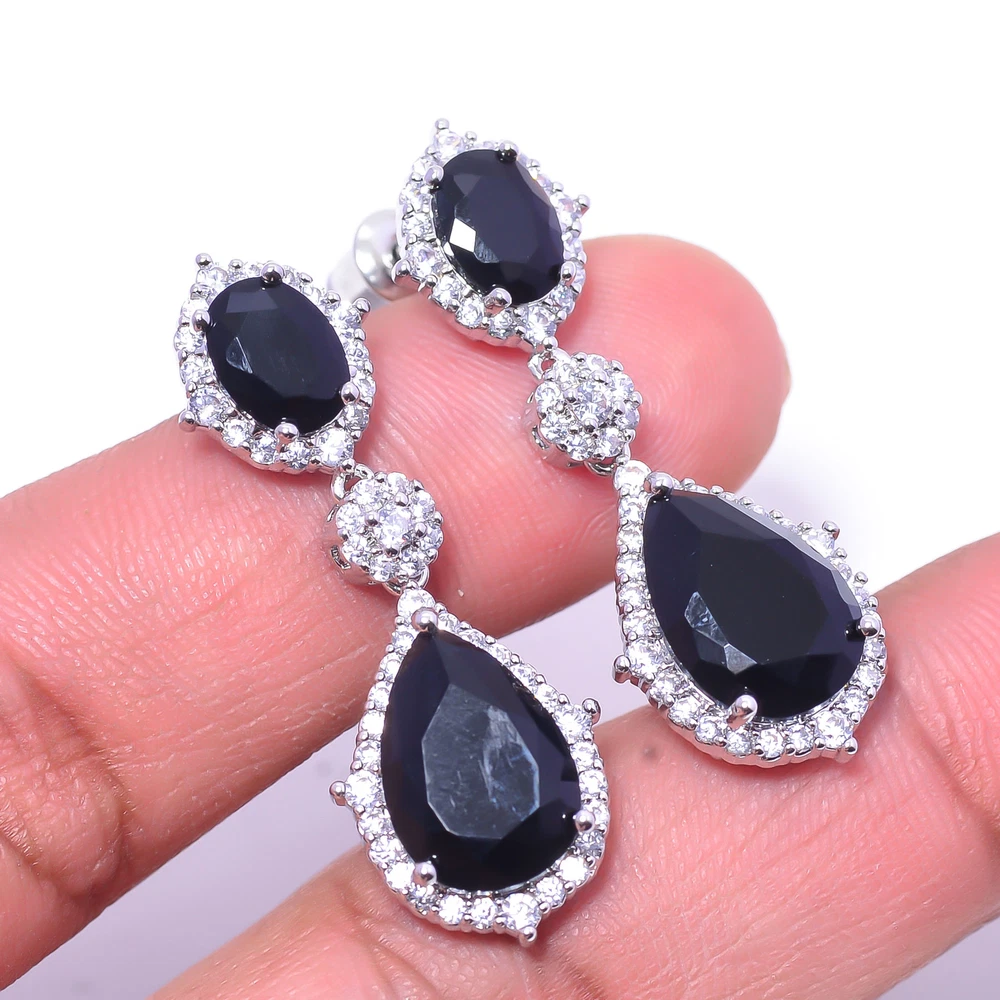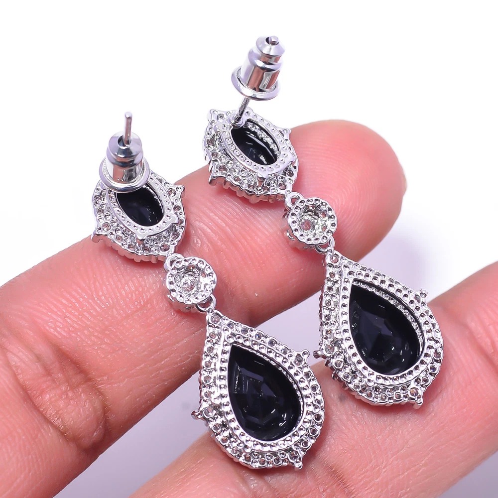 Total-weight-of-Jewelry 7 grams Main Stone Depth As Seen in Picture Main Stone Length As Seen in Picture Main Stone Width As Seen in Picture Seller Warranty Yes Handmade Yes Shape As Seen in Picture Signed Yes Vintage As Seen in Picture Wholesale Yes Occasion Christmas, Birthday, Anniversary, Engagement, Wedding, Valen SKU E_9764_774_7 Unit Quantity 1 Unit Type Unit Type Earring Style Dangle/Drop Main Stone Black Onyx Main Stone Creation Simulated Main Stone Color Same As Picture Main Stone Shape Same As Picture Main Stone Treatment Simulated Brand Unbranded Metal Sterling Silver Setting Style collet setting Number of Gemstones 4 Metal Purity 925 Parts Per 1000 Item Length 1.37" Item Diameter Unknown Features Unknown Ear Area Lobe Cut Grade Unknown Customized No Country/Region of Manufacture India Country of Origin United States Base Metal Sterling Silver Secondary Stone CZ Material Gemstone Color Same As Picture Theme Beauty Antique Same As Picture Shipping & Handling - Charge - 1st item-5.90 And Additional item-1.90 Handling Time - 1 Days . Delivery Time - 2 TO 3 DAYS. Shipping Service - USPS First Class Package 2 -3 Days. Returns - 1.We offer a 100% Money Back Guarantee minus shipping for 30 days after receiving the Item / item's. 2..The item must not be altered or damaged in any way shape or form. 3.Upon receiving these items your payment will be refunded. 4.Email us for return instructions before sending merchandise back. 5.Please allow up to 1 business day for all returns to receive credit. 6.Sizing does not affect the return policy. Payment - We accept PayPal for Payment ,should made with in 14 days once buying or winning done , in case of late information expected .