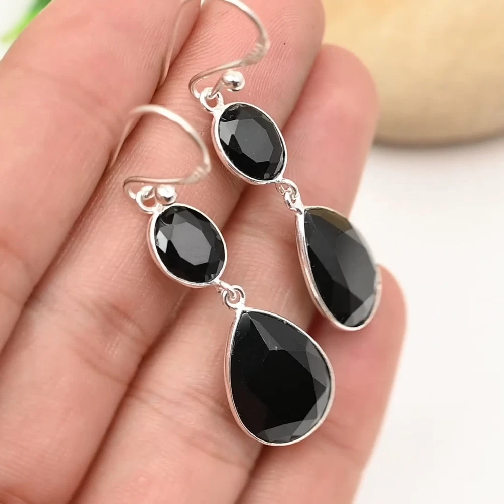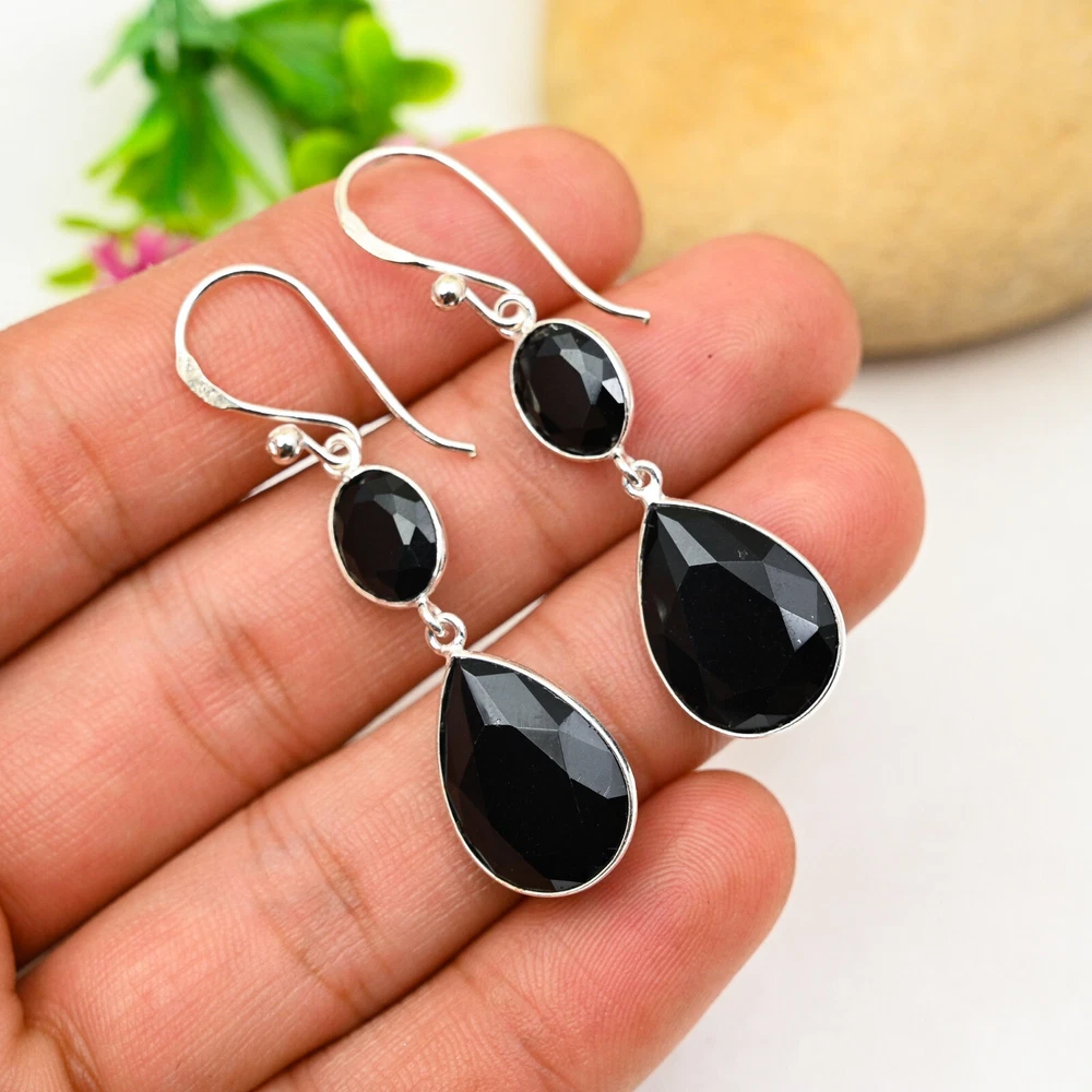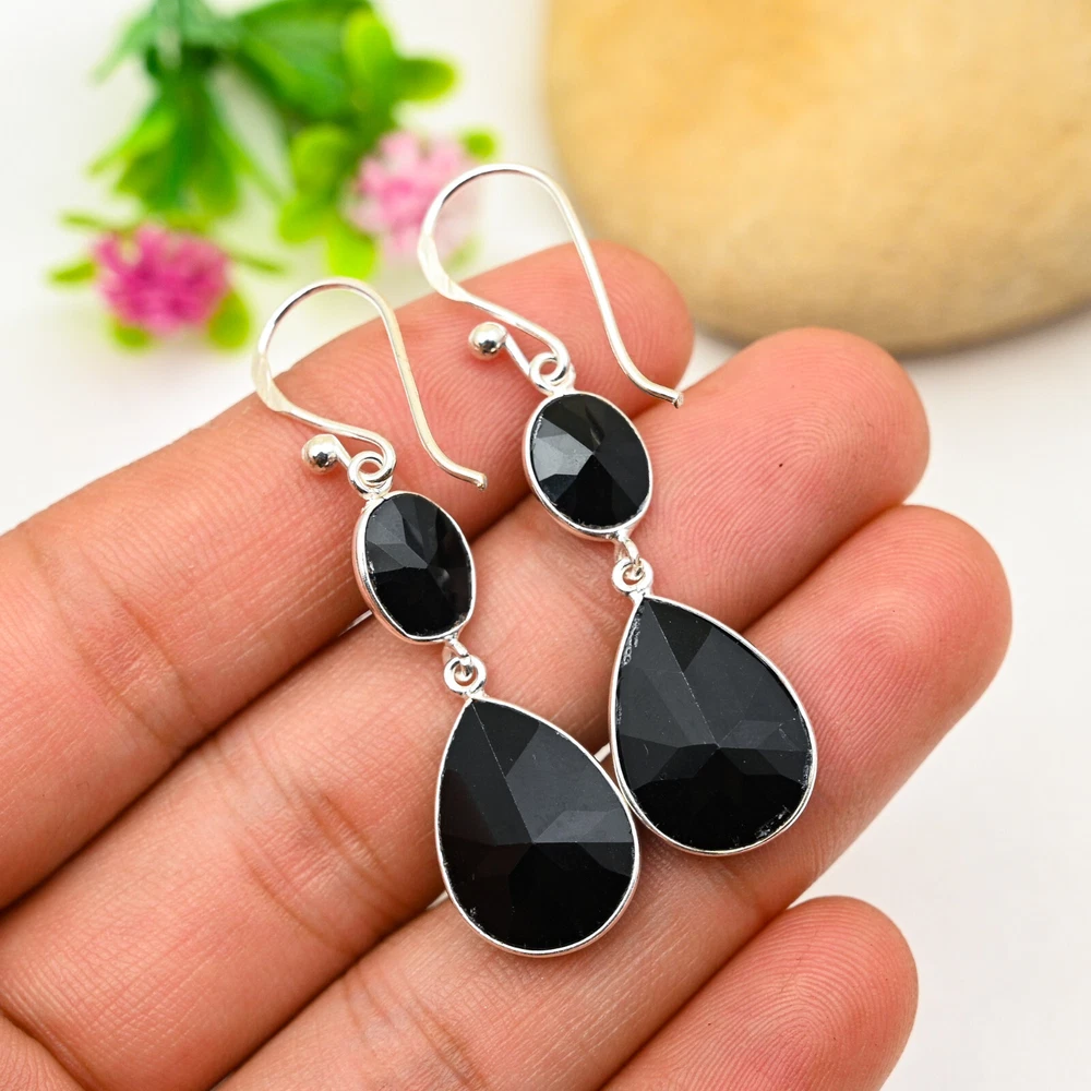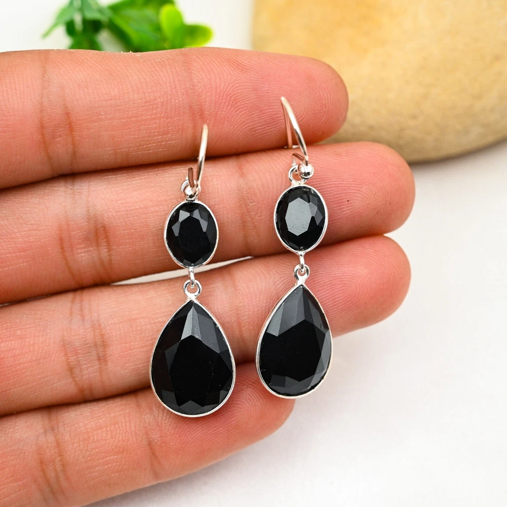 Black Onyx Gemstone 925 Sterling Silver Earring Handmade Jewelry Earring Gift