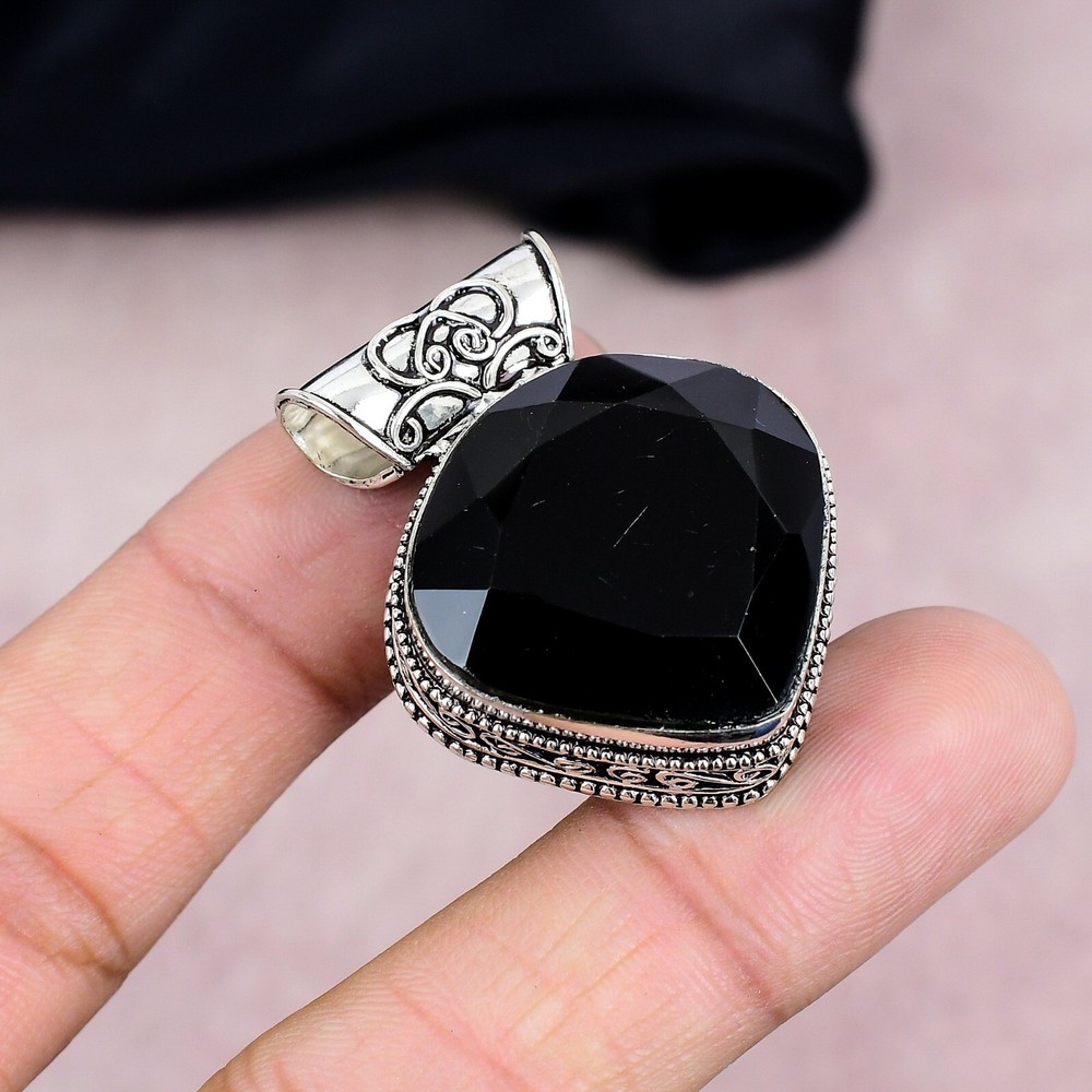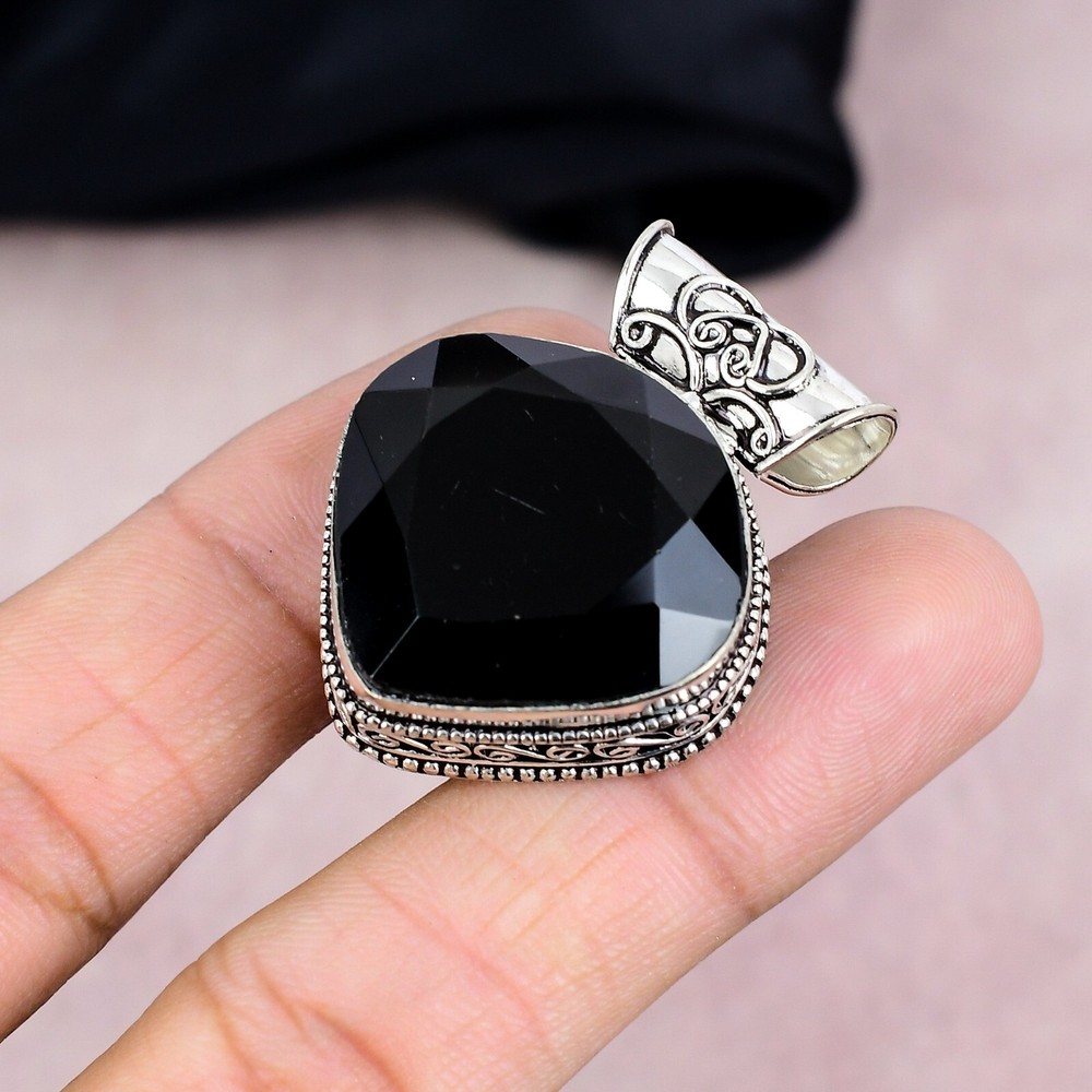 Black Onyx Gemstone Pendant Handmade 925 Sterling Silver Jewelry Party Gift