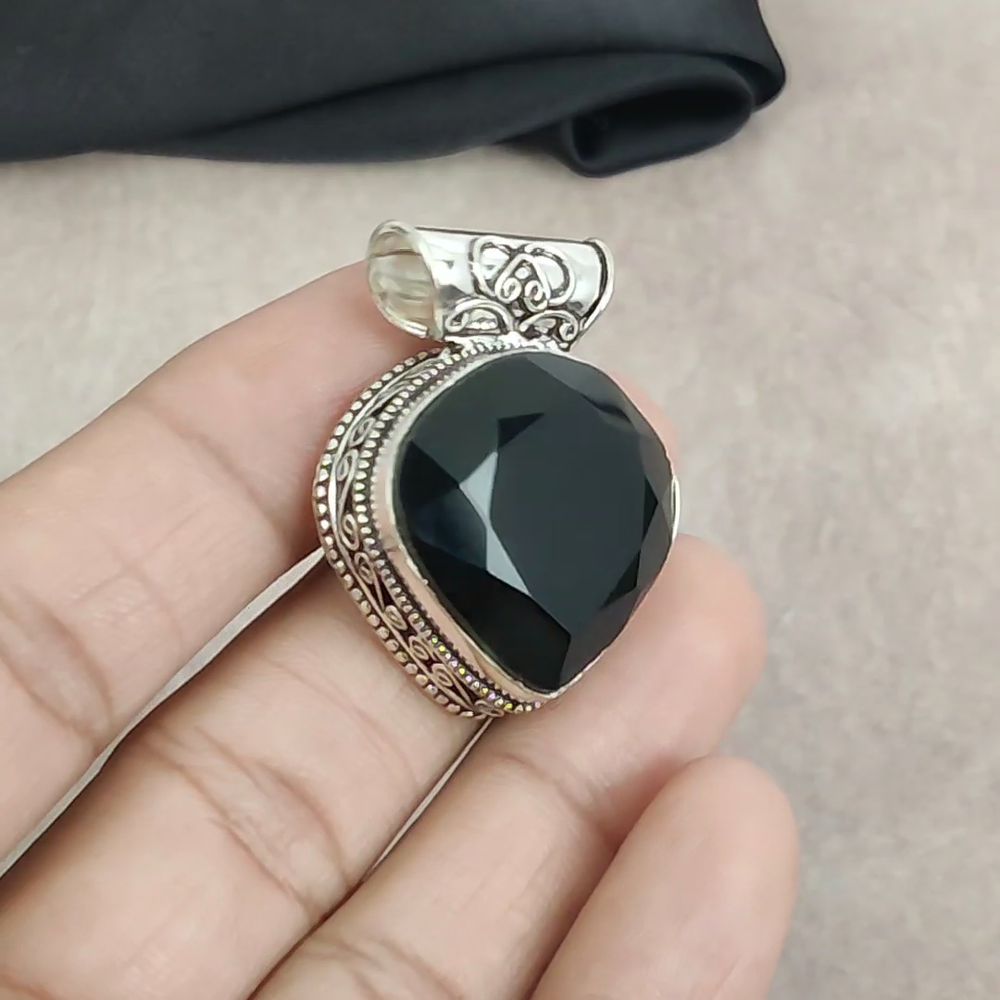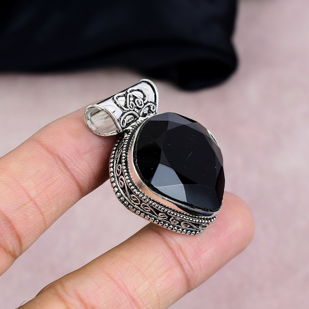HomeBlack Onyx Gemstone Pendant Handmade 925 Sterling Silver Jewelry Party Gift