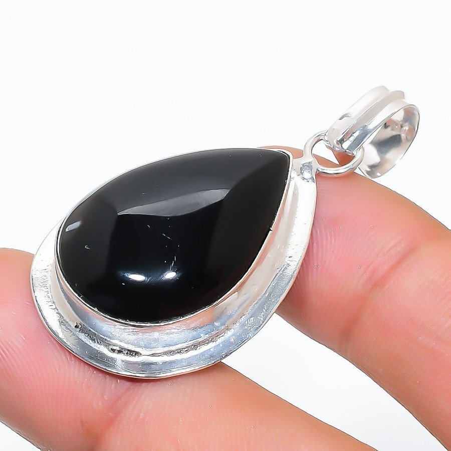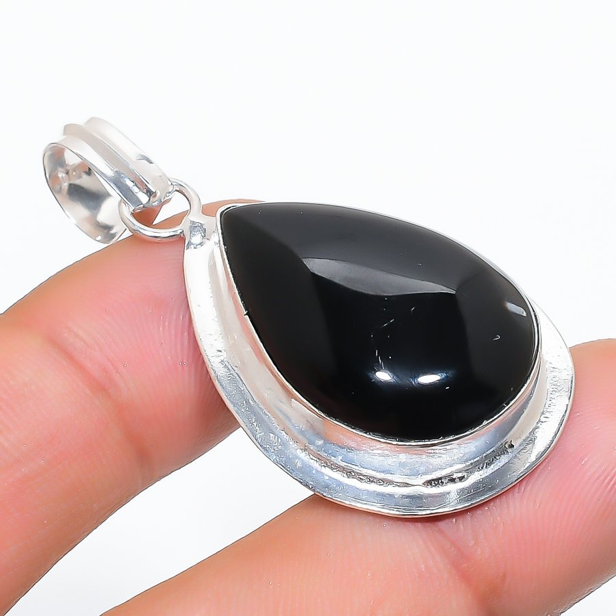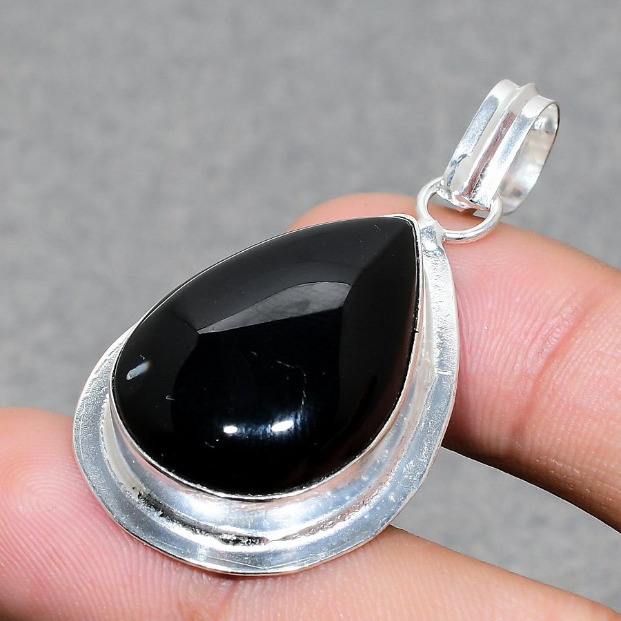 Black Onyx Pear-Shaped Handmade Gemstone Pendant 2.10" SR 1954 Fashion Jewelry