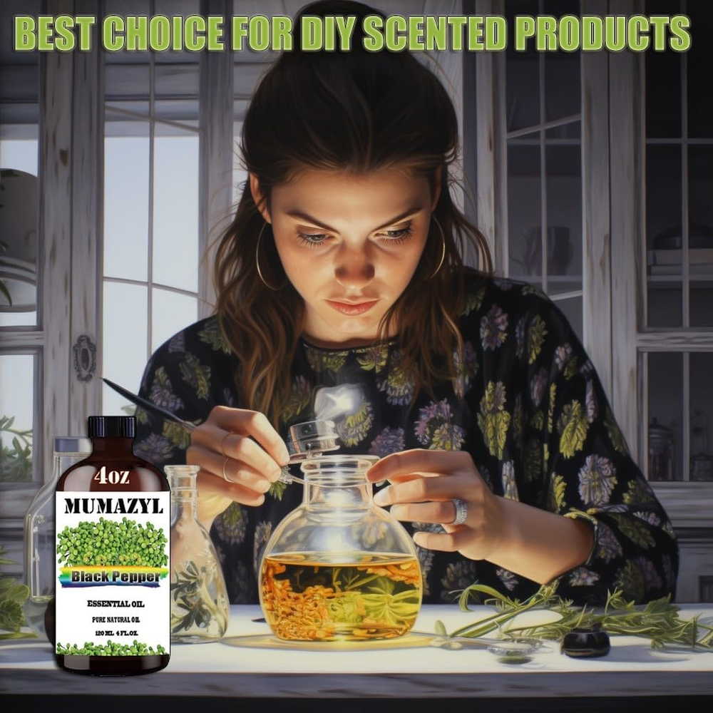 Store New Arrivals Add to Favorite View Feedback Contact Black Pepper Essential Oil, Black Pepper Oil 4 Fl Oz 120ML for Diffuser Humidifier Yoga Cleaning DIY Candle Soap Making Essential Oils Description Scent Black Pepper Brand MUMAZYL Country of Origin China Product Benefits Revitalizing Seasons All Seasons Special Feature Essential Oil Package Dimensions 5.31 x 2.99 x 2.76 inches; 8.78 ounces Manufacturer MUMAZYL Premium Grade Black Pepper Oil: Black Pepper Essential Oils are highly concentrated liquid derived from Black Pepper flowers, leaves or other parts, which will provide you with happy Black Pepper taste. Featured Glass Bottle & Dropper: Each Black Pepper essential oil is bottled in 4 Fl Oz 120ML amber glass bottle to help keep the Black Pepper oil lasting. It also comes with a premium quality glass dropper to help you get the exact amount you want. Widely Use: Except to be used in diffusers to provide Black Pepper to any space, Black Pepper essential oils could also be used in making soap, candle, bath bomb. You can enjoy yourself in crafting at the same time. Add a touch of seasonal charm to your crafts, making them truly one-of-a-kind. Perfect Gift: Comes in a beautiful gift box, this Black Pepper essential oil is the perfect gift for your loved ones: Christmas, New Year's, Valentine's Day, Birthday, Mother's Day, Anniversary, Wedding gift, etc. Give your home, office, or anywhere a Black Pepper flavor that evokes the beauty of spring inside. Risk-Free Purchase: If you have any questions about Black Pepper essential oils, you can email us or leave a message in Q&A. We look forward to your letter and suggestions to make us do better. Product Description ABOUT US We offer the best prices around on high quality products. Our E-store includes media such as books, movies, music and games while offering electronics, toys, sporting apparel, clothing, tools, general home, garden items and more. SHIPPING We are always working hard to ensure your package arrives as soon as possible. Please understand that some factors like weather, high postal traffic, and the performance of shipping companies are outside of our control. We offer free shipping to the lower 48 states and ship within 2 business days of payment, usually sooner. We do not accept P.O. Boxes. Please provide a physical address. RETURNS We offer a 30-Day Return Policy on items which you are not completely satisfied with. You have the option for a full-refund or an exchange of the item. No returns are available on items shipped outside of the USA. PAYMENT We accept PayPal. CONTACT US This page content is yet to come Please ad us to your favorite seller and visit again later Thank You CUSTOMER SATISFACTION We try our very best to make sure every customer is completely satisfied. If there's a problem, message us! We're happy to help.
