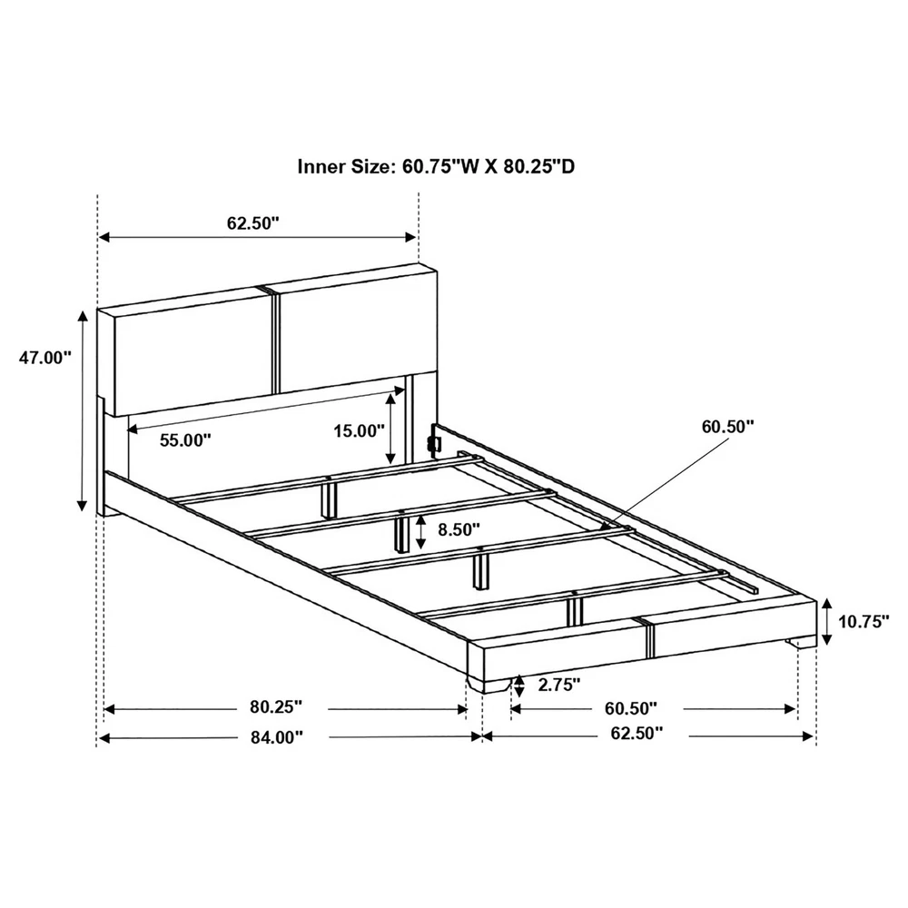 Brand Unbranded Item Length 82.88 Item Width 8.86 Item Height 7.49 Color Black Frame Material Upholstered Type BED FRAME Compatible Mattress Size As described Diamond-ring-1 Simple life Black Queen Panel Bed This queen bed introduces an understated yet sophisticated silhouette, adding an element of refined glamour to your bedroom decor Wrapped in leatherette upholstery, the bed offers a smooth and sensuous touch, providing an invitingly comfortable surface to rest The bold black hue of the headboard and frame exudes a commanding presence, adding a touch of elegance and a statement to the bedroom's aesthetic With a design characterized by simplicity and elegance, the bed boasts a silhouette that effortlessly blends with various interior styles Crafted with solid wood, this bed is built to last, offering sturdy support and reliability night after night, ensuring restful sleep for years to come Romance Copy The faux leather upholstery on this sleek, handsome bed gives it a stately but updated look that's perfect for a modern interior. The full effect is minimalist and clean design for a contemporary bedroom setting Product Details Set includes One (1) bed Queen bed dimensions 47 inches high x 62.75 inches wide x 85 inches long Finish Color Black Materials Asian hardwood, Asian tropical wood and faux leather Material content 26-percent backing fabric, 3-percent polyurethane, 71-percent polyvinyl chloride Clean ability code W Weight limit 600 lbs Item Specifics Brand Unbranded Item Length 82.88 Item Width 8.86 Item Height 7.49 Color Black Frame Material Upholstered Type BED FRAME Compatible Mattress Size As described Payment Returns Diamond-ring-1 Simple life DESCRIPTION PAYMENT SHIPPING RETURN POLICY CONTACT US Shop Category Store Home Other Hot Item Delivery New List Item Help & Info Payment Policy Shipping Policy Return Policy FAQ About Us Black Queen Panel Bed This queen bed introduces an understated yet sophisticated silhouette, adding an element of refined glamour to your bedroom decor Wrapped in leatherette upholstery, the bed offers a smooth and sensuous touch, providing an invitingly comfortable surface to rest The bold black hue of the headboard and frame exudes a commanding presence, adding a touch of elegance and a statement to the bedroom's aesthetic With a design characterized by simplicity and elegance, the bed boasts a silhouette that effortlessly blends with various interior styles Crafted with solid wood, this bed is built to last, offering sturdy support and reliability night after night, ensuring restful sleep for years to come Romance Copy The faux leather upholstery on this sleek, handsome bed gives it a stately but updated look that's perfect for a modern interior. The full effect is minimalist and clean design for a contemporary bedroom setting Product Details Set includes One (1) bed Queen bed dimensions 47 inches high x 62.75 inches wide x 85 inches long Finish Color Black Materials Asian hardwood, Asian tropical wood and faux leather Material content 26-percent backing fabric, 3-percent polyurethane, 71-percent polyvinyl chloride Clean ability code W Weight limit 600 lbs Item Specifics Brand : Unbranded Item Length : 82.88 Item Width : 8.86 Item Height : 7.49 Color : Black Frame Material : Upholstered Type : BED FRAME Compatible Mattress Size : As described Payment Returns All rights reserved.