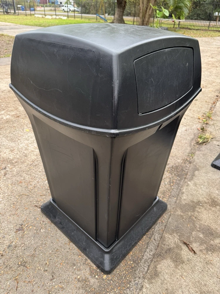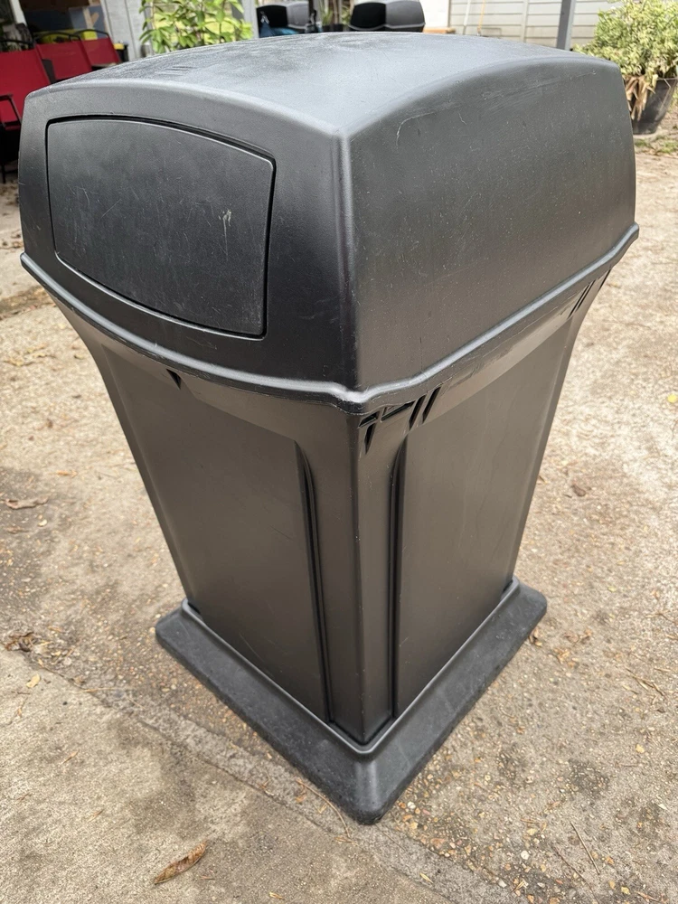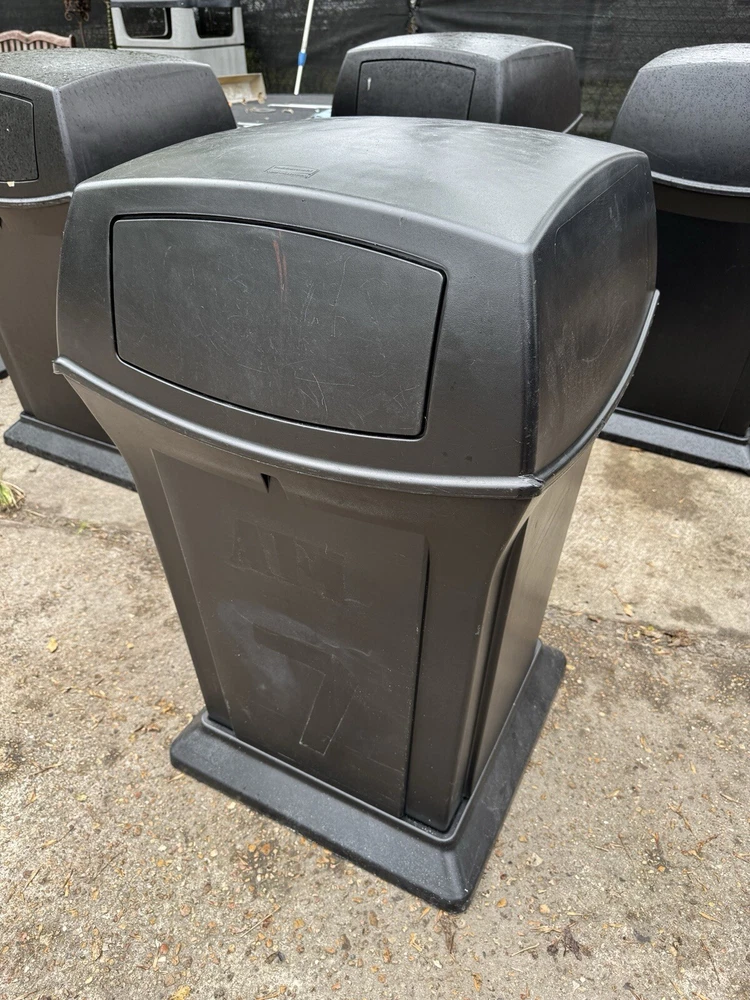 Exterior 45-Gallon Black Ranger with Two Doors – Great Capacity! Features: • Durable and weather-resistant design for outdoor use. • Two doors for easy cleaning and access. • Capacity: 45 gallons. • Material: Weather-resistant plastic. • Ideal for parks, recreational areas, businesses, and communities. • 1 Large Compartment (with 2 access doors). • Unit Quantity: 1 (Available: 7) Perfect for outdoor spaces. Durable material, ideal for recreational areas, businesses, or patios. Condition: Used, in excellent condition. ———————————————————— Ranger negro exterior de 45 galones con dos puertas - ¡Gran capacidad! Características: • Diseño duradero y resistente a la intemperie para uso en exteriores. • Dos puertas para facilitar la limpieza y el acceso. • Capacidad: 45 galones. • Material: Plástico resistente a la intemperie. • Ideal para parques, áreas recreativas, negocios y comunidades. Perfecto para espacios al aire libre. Material duradero, ideal para áreas recreativas, negocios o patios. Condición: Usado, en excelentes condiciones. 7 en existencia!