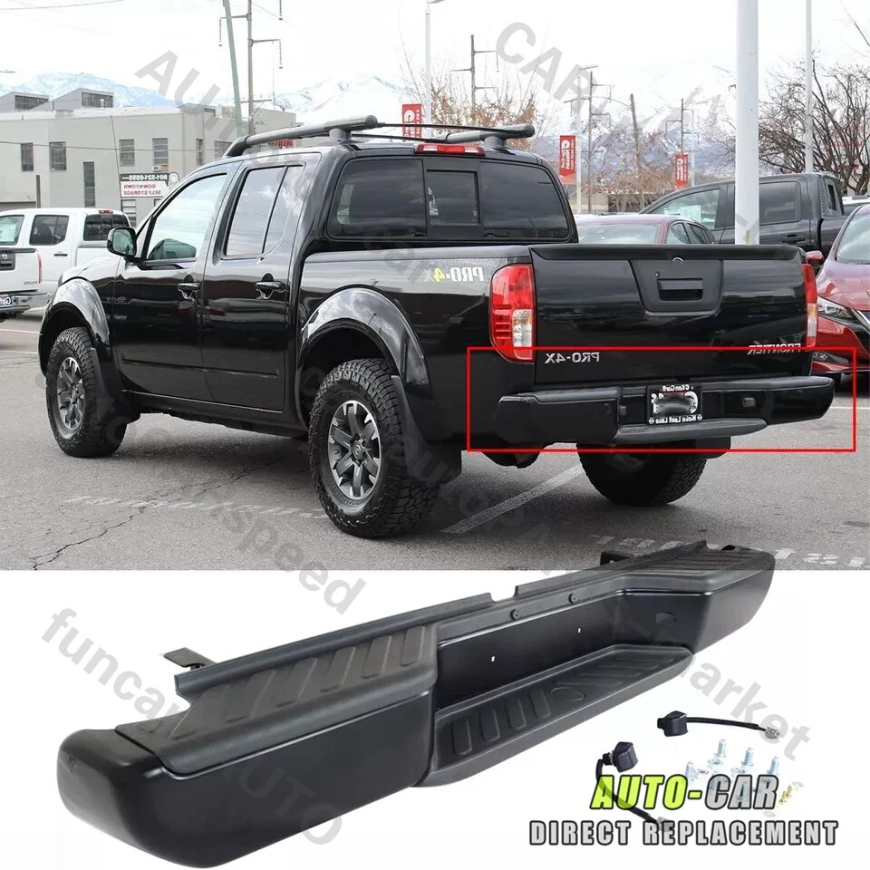 Fitment For Nissan Frontier 2005-2021 For Use Without Parking Aid Sensor Holes Specification: Material: Steel+Plastic Surface Finish: Powdercoated Black Placement on Vehicle: Rear Fitment Type: Direct Replacement Assembly Accessories Included: Yes Replace OE Number: 850229BF1D-PFM, NI1103115 Package Includes: 1 X Rear Bumper Assembly On Dec 31, 2024 at 01:02:21 PST, seller added the following information: On Jan 1, 2025 at 11:30:31 PST, seller added the following information: