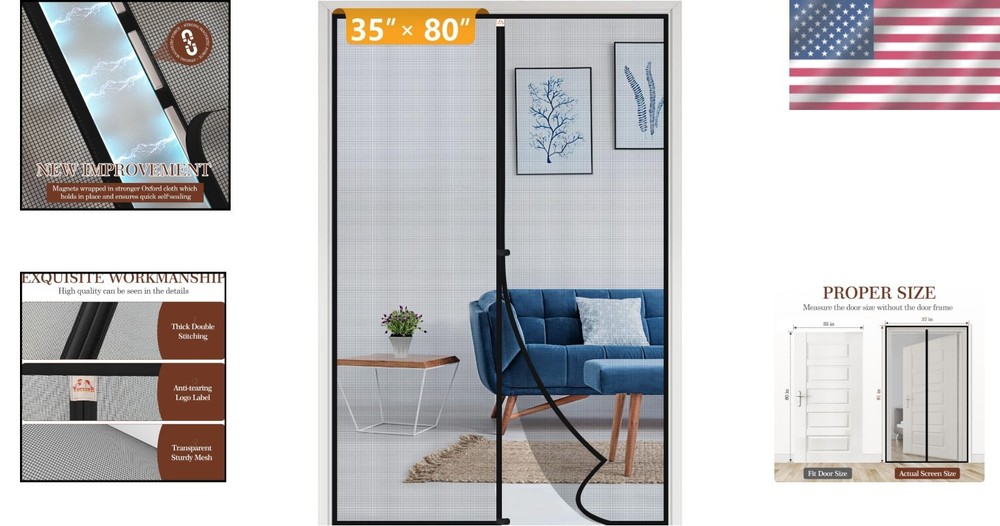 Black Reinforced Magnetic Screen Door for Easy Indoor-Outdoor Access, 37" x 81" ‹ › ‹ › ‹ › ‹ › ‹ › ‹ › ‹ › ‹ › ‹ › ‹ › Black Reinforced Magnetic Screen Door Effortlessly Enhance Indoor-Outdoor Living with Exceptional Access! Product Details: Screen Size: 37" width x 81" height, ideal for door openings of 35" x 80". Included: Magnetic screen door, roll of hook&loop, pack of push pins, and instruction manual for easy installation. Features: Upgraded & Strengthened: Wrapped with thickened webbing on all sides, providing enhanced durability. Anti-Tearing Design: Double-sewed top middle with a logo label addition to prevent tearing. Windproof Hook&Loop Hasp: Ensures stability against strong winds with added hasp at middle and bottom. Screen Material: Made from advanced 18 x 16 mesh, ensuring high strength, scratch resistance, and excellent color fastness. Benefits: Conveniently invites fresh air while keeping pesky insects out. Child and pet-friendly for safe, frequent use. Super easy installation with included tools and instructions. Perfect for maintaining a welcoming environment in your home or outdoor space. Why Choose Our Magnetic Screen Door? This Black Reinforced Magnetic Screen Door is more than just a functional accessory; it is a sophisticated solution for those who appreciate the blend of elegance and practicality. Bring the refreshing breeze into your space while keeping unwanted guests at bay. With its robust design and thoughtful features, it’s the perfect addition for families and pet owners alike. Your home deserves the best, so experience airy freedom today! Order your magnetic screen door now and embrace a beautiful, breezy home environment. Shipping Free & Fast Shipping - We offer free shipping to most of the USA with a normal delivery time of 3-7 days. However, due to the current situation, additional delivery time (up to 3 weeks) may be required for some items. Alternative Carriers - We may use alternative carriers (e.g. USPS, FedEx, UPS, etc.) to ensure your package arrives safely and on time. Due to the use of multiple carriers, we are unable to provide a tracking number automatically. Handling Time - Orders are processed and shipped within 1-2 business days of receiving cleared payment. Shipping Restrictions - Shipping to Alaska, Hawaii, Puerto Rico, Guam, and other US territories may incur shipping charges or delivery restrictions. Please contact us before ordering, or your order can be refunded/cancelled. State Restrictions - There may be restrictions based on your state of purchase. For example, certain items may not be shipped to California due to state regulations. Contact for Tracking Updates - If you require tracking updates or have any concerns about the delivery of your order, please feel free to contact us, and we will be happy to assist you. Return 30-Day Hassle-Free Returns - We want you to be completely satisfied with your purchase. If you are not, you can return the item within 30 days of receiving it for a full refund or exchange. Easy Return Process - To start a return, simply contact us and we will provide you with a prepaid return shipping label and detailed instructions. Restocking Fee - There are no restocking fees for returns. However, the buyer is responsible for return shipping costs if the return is not due to a seller's error. Refund Processing Time - Refunds will be processed within 5 business days of receiving the returned item in its condition. Payment We accept all major credit cards, PayPal, and Apple Pay for your convenience. Your payment information is secure and encrypted to ensure a safe and seamless transaction. Please complete your payment within 3 days of purchase to avoid any delays in shipping. Feedback Your feedback is extremely important to us. We strive to provide the best products and customer service possible. If you are satisfied with your purchase, please take a moment to leave us a positive review. If you have any concerns or issues with your order, please contact us before leaving negative feedback. We are committed to resolving any problems and ensuring your satisfaction. Contact Us If you have any questions or concerns, please feel free to out to our customer support team. You can contact us through the eBay messaging system. We are available Monday to Friday, 9:00 am to 5:00 pm EST, and we will do our best to respond to your inquiry within 24 hours. Buy it now and enjoy a pleasant shopping experience! Model: Magnetic Screen Door Unit Quantity: 1 Suitable For: Fixed Window,Sliding Window,Window Screen,Sliding Door Material: Fiberglass Features: Durable,Easy To Install,Moisture Resistant Color: Black Type: Screen Door Number in Pack: 1 Item Depth: 1 in Item Thickness: 0.1 in Item Weight: 1.61 lb