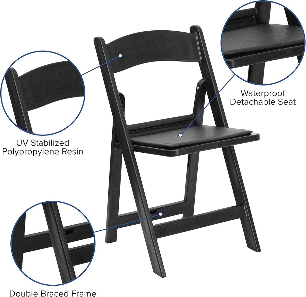 Store New Arrivals Add to Favorite View Feedback Contact Folding Chair - Black Resin – 2 Pack 800LB Weight Capacity Comfortable Event Chair - Light Weight Folding Chair Description Item model number EOH-MFM-2-1072 Style Contemporary Pattern Solid Country of Origin China Theme Events & Gatherings Unit Count 1.0 Count Room Type Home Office/Study;Kitchen;Living Room;Lobby/Waiting Room;Office;Patio Is Customizable No Tilting No Maximum Weight Recommendation 1000 Pounds Age Range (Description) Adult Arm Style Armless Leg Style Straight Leg Finish Type Unfinished Included Components 2 Chairs Indoor/Outdoor Usage Indoor Chair Backrest Width 17.5 Inches Back Style Solid Back Item Weight 21 pounds Surface Recommendation Indoor Is Foldable Yes Special Feature Foldable,Lightweight,Premium,Removable Material Vinyl, Polypropylene Item Weight 21 Pounds Furniture base movement Glide Frame Material Polypropylene Seat Material Type Vinyl Reclining Position Count 1 Color Black Form Factor Foldable Shape Rectangular Product Care Instructions WN-Water and neutral detergent Recommended Uses For Product Weddings, Catered Events, Anniversary Parties, Business and Home Usage, Group Sessions Product Dimensions 18"D x 17.5"W x 30.75"H Seat Depth 13.75 inches Size 17.5"W x 18"D x 30.75"H Indoor-Outdoor Chair: Lightweight UV stabilized commercial folding chairs provide on-demand seating solutions; foldable stack chairs are a smart investment for business and home usage Storage Capabilities: stacks for easy storage, transport, post-event cleanup, or routine floor maintenance Rental Grade: Washable removable vinyl seats are replaceable to keep chairs in new condition; polypropylene resin frame is the same color throughout; no need to repaint if nicked or scratched No Assembly Required: ready to use for stress-free events and group sessions PRODUCT MEASUREMENTS: Overall Size: 17.5"W x 18"D x 30.75"H; Seat Size: 15.5"W x 13.75"D x 18.5"H; Back Size: 17.5"W x 15"H; Folded Size: 17.5"W x 2.25"D x 35"H Product Description Versatile, Durable, and Stylish Folding Chairs The video showcases the product in use. The video guides you through product setup. The video compares multiple products. The video shows the product being unpacked. Endless Uses Banquets, Parties & Weddings Makes an ideal seating options ideal for banquets, parties, and weddings, providing convenience, affordability, and easy setup. Extra Seating at Home The perfect seating solution for guests at home, offering a versatile and convenient option that can be easily stored and set up whenever needed. Kitchen & Dining Just right for use in kitchens, dining rooms, and as additional seating for guests, offering convenience, versatility, and space-saving qualities. Outdoor Events Resin folding chairs are a practical choice for outdoor settings due to their lightweight, weather-resistant nature and easy portability. Supports up to 1,000 LB Supports up to 1,000 LBs with a double braced frame. Polypropylene Resin Made with durable UV stabilized Polypropylene Resin material. Ideal for Any Event Durable construction made for indoor or outdoor events. Ideal for Rental Businesses Washable removable vinyl seats allow for easy cleaning and maintenance. Match any Décor or Event Theme Available in three colors so that you can express your personal style. 1 Double Braced Frame 2 UV Resistant 3 Indoor or Outdoor Use 4 Removable Seats 5 Three Unique Colors 2Pack Resin Folding Chair Shop Pack Sizes & Storage Multiple Colors Holds Up to 1,000lbs Double Braced Frame UV Resistant Multiple Colors Holds Up to 1,000lbs Double Braced Frame UV Resistant Multiple Colors Holds Up to 1,000lbs Double Braced Frame UV Resistant Multiple Colors Holds Up to 1,000lbs Double Braced Frame UV Resistant Brown Folding Resin Chair White Folding Resin Chair Black Folding Resin Chair 4Pack Resin Folding Chair Emma + Oliver Folding Collection Cover All Your Folding Furniture Needs Check below our brand name at the top of the page to browse our store for our entire collection of folding chairs and tables for your next event! Shop Complimentary Folding Chairs Customer Reviews 4.7 out of 5 stars 56 4.6 out of 5 stars 136 4.4 out of 5 stars 95 5.0 out of 5 stars 2 4.2 out of 5 stars 34 Price — — — $86.99 $ 86 . 99 — Material Resin Frame with Vinyl Seat Plastic with Metal Frame Wood Frame with Vinyl Seat Metal Frame with Vinyl Seat Metal Available in Multiple Colors ✔ ✔ ✔ ✔ ✔ Seat Width 15.5 Inches 15.5 Inches 16.5 Inches 15.5 Inches 15.75 Inches Weight Capacity 1000 lbs 650 lbs 330 lbs 300 lbs 300 lbs Stackable ✔ ✔ ✔ ✔ ✔ Pack Size 2 2 2 2 2 ABOUT US We offer the best prices around on high quality products. Our E-store includes media such as books, movies, music and games while offering electronics, toys, sporting apparel, clothing, tools, general home, garden items and more. SHIPPING We are always working hard to ensure your package arrives as soon as possible. Please understand that some factors like weather, high postal traffic, and the performance of shipping companies are outside of our control. We offer free shipping to the lower 48 states and ship within 2 business days of payment, usually sooner. We do not accept P.O. Boxes. Please provide a physical address. For shipping outside of the continental USA, we only use eBay's Global Shipping Program.The item is shipped to KY and then sent to the rest of the world. International customers are responsible for all duties and taxes. Continue to check out in order to calculate costs for shipping the item to your country. Messages regarding eBay's Global Shipping Program MUST be directed at eBay EXCLUSIVELY. RETURNS We offer a 30-Day Return Policy on items which you are not completely satisfied with. You have the option for a full-refund or an exchange of the item. No returns are available on items shipped outside of the USA. PAYMENT We accept PayPal. CONTACT US This page content is yet to come Please ad us to your favorite seller