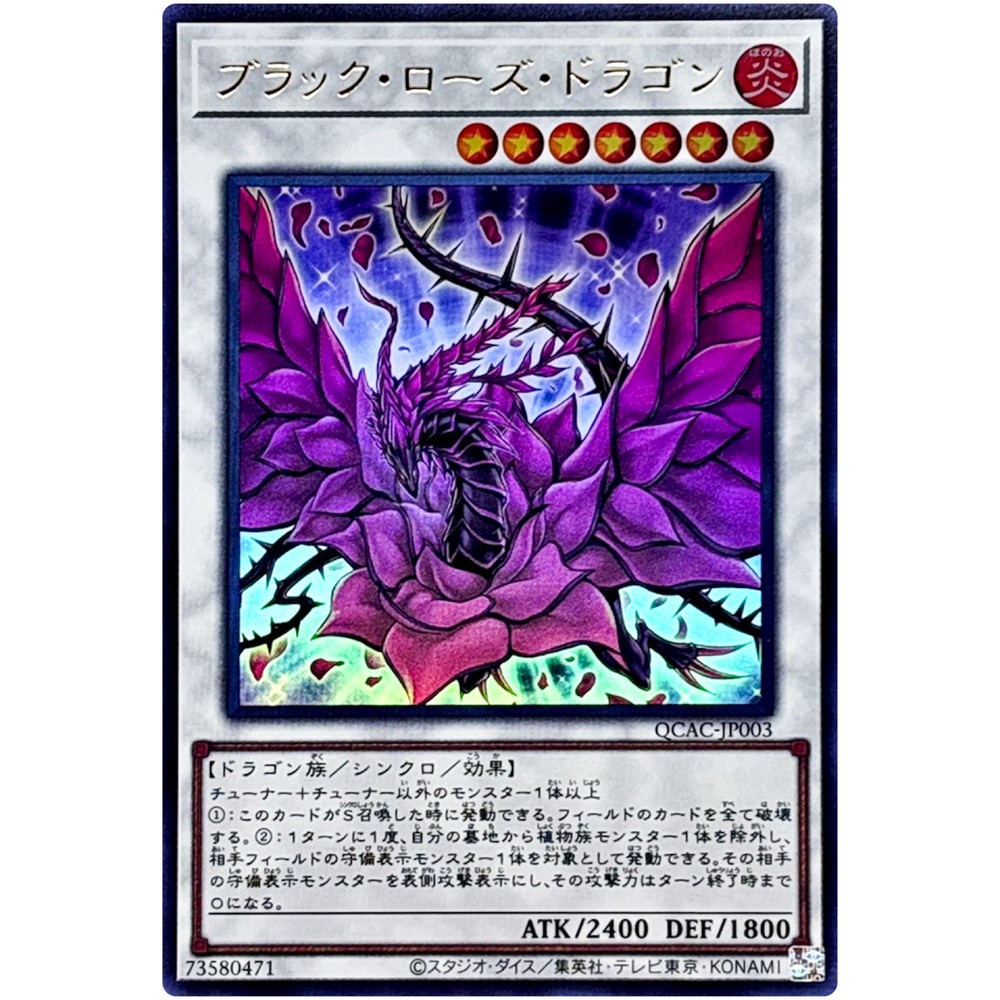 Item Description QCAC-JP003 Black Rose Dragon Front Back Card Name : Black Rose Dragon Character : Black Rose Dragon Rarity : Ultra Rare Card Number : QCAC-JP003 Set : Quarter Century Art Collection Type : Effect Synchro Monster Language : Japanese Card Condition : Near Mint Purchased cards will be clipped with cardboard, waterproofed, and shipped without any scratches or folds. Cards over $20 will be packed even tighter with a loader for each card. Shipping Policy Free shipping worldwide. Free shipping does not include tracking. There is an additional cost of US $4 for tracking. If you purchase cards totaling US $30 or more, you will receive a free tracking number. All of the products will be shipped from Japan. Economy Shipping Air mail ( no tracking ) Free Shipping Delivery time : About 2-4 weeks Standard Shipping Air mail ( with tracking ) US $4 Delivery time : About 2-4 weeks Expedited Shipping FedEx or EMS or DHL ( with tracking ) US $24 Delivery time : About 1-2 weeks Payment Policy We accept all major credit cards and Paypal payments. Return Policy We hope you will love your purchase, houever if you need to return it, we have a 30 day return policy. International Buyers Import duties, taxes, and charges are not included in the item price or shipping cost. These charges are the buyerʼs responsibility. Please check with your countryʼs customs office to determine what these additional costs will be prior to bidding or buying. If the cancellation is due to the buyer, wewill charge a fee. If there is a remote charge for your address, we will charge you for additional shipping. We are honored to receive the eBay Japan Awards 2022! I am thrilled to share that my store has won the eBay Japan Awards 2022 ! This amazing accomplishment wouldnʼt have been possible without our wonderful customers. A heartfelt thank you for your ongoing support. We will continue to improve our services, offering a diverse selection of items and top-notch customer care Thank you for helping us achieve this prestigous recognition, and we look forward to serving you in the future! Copyright ©️ 2024 Animart Japan