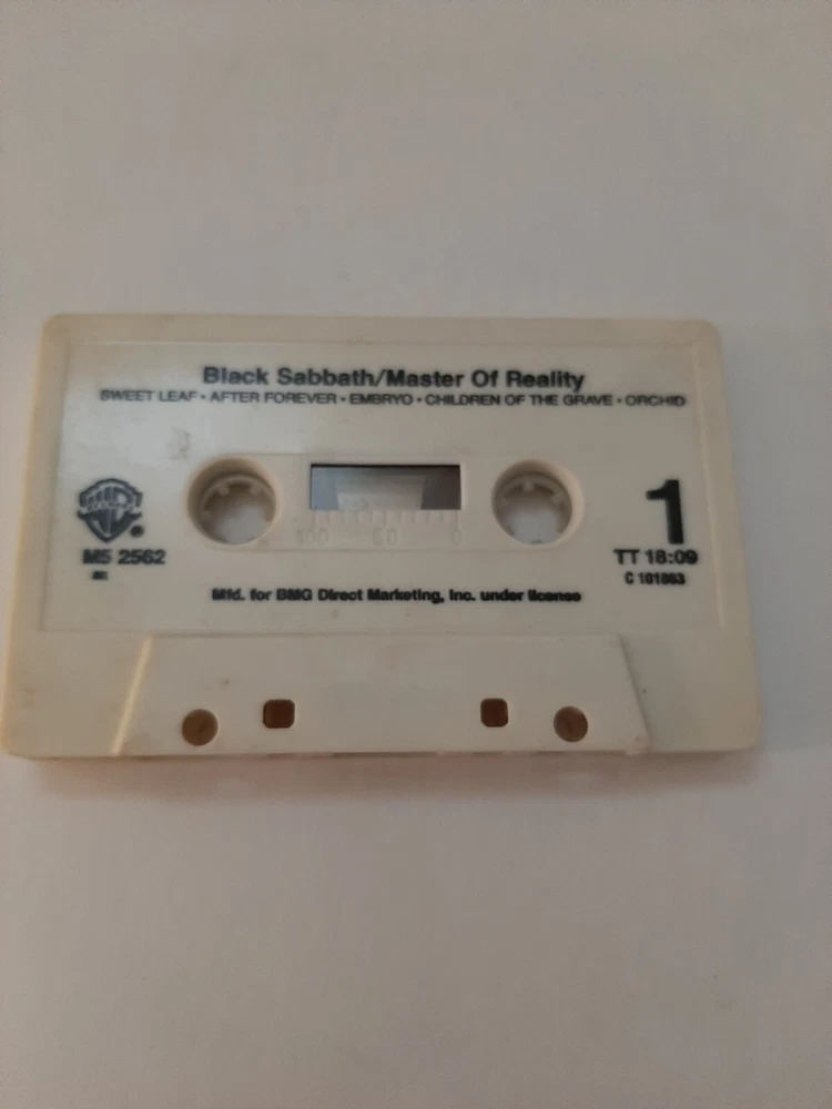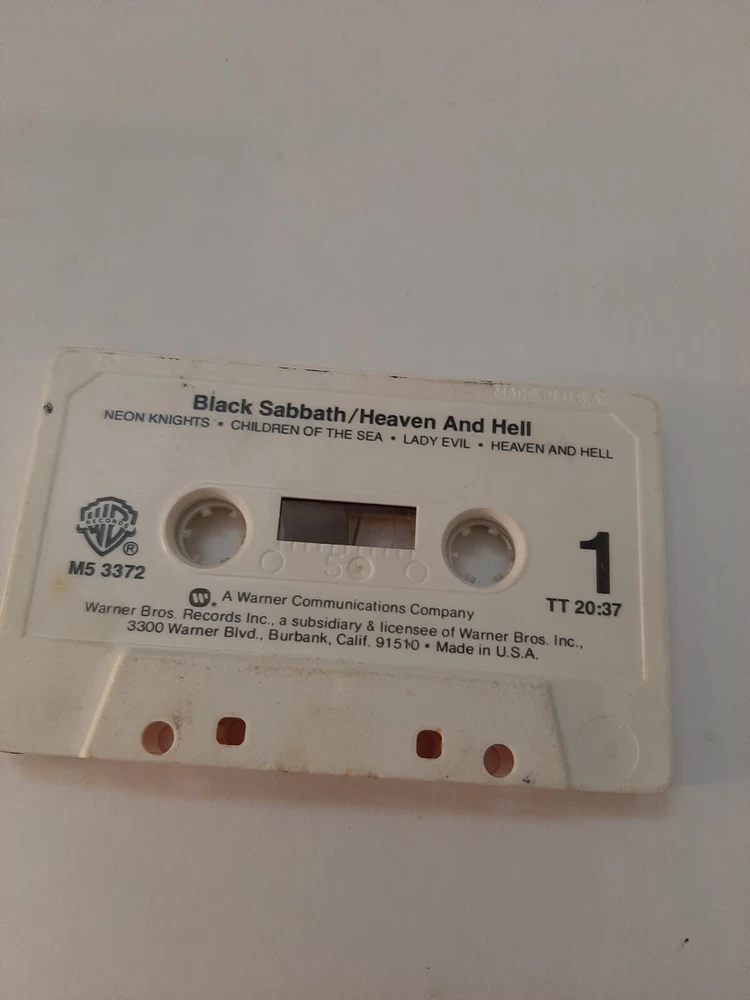 Black Sabbath Cassette Tape Lot Of 4 Sabotage Bloody Sabbath Master Of Reality Heaven & Hell In good pre-owned condition may show signs of wear from use/handling/storage/display. Please view all pics for condition/details/flaws/issues. SOLD AS IS UNTESTED there are marks/spots, there is lite damage/scratches, The Heaven & Hell Cassette is missing its inlay otherwise There is/maybe marks/spots/dirt/debris please see photos 1-13, there is/maybe paint loss/sticker loss please see photos 1-13, there is lite discoloration please see photos 1-13, there are surface scratches to item please see photos 1-13, please see all photos for condition/issues/details.
