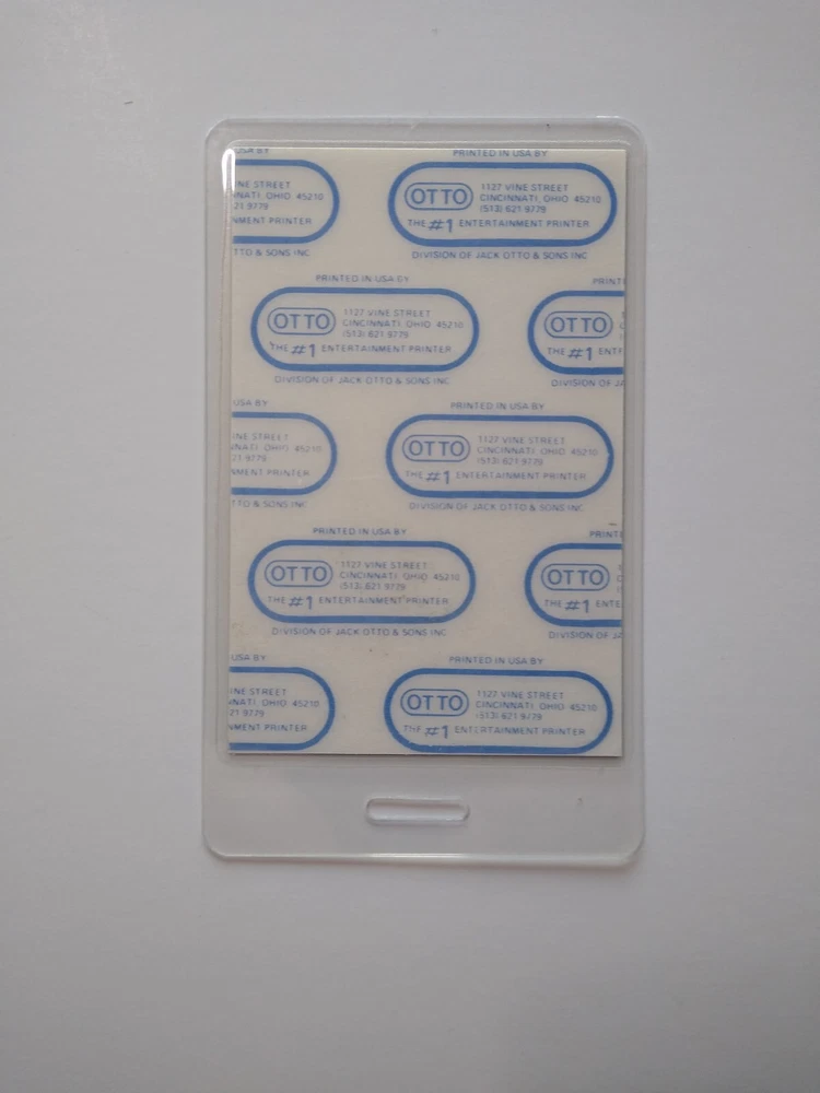Original vintage plastic laminated pass for prior music event. 4.25" x 2.75". Scuffs to clear borders. Marked Otto front and back. More music related memorabilia for sale in our store. SHIPPING Bundle and save by using cart and making single payment. International buyers are responsible for any import fees/taxes. Check back for more unique items.