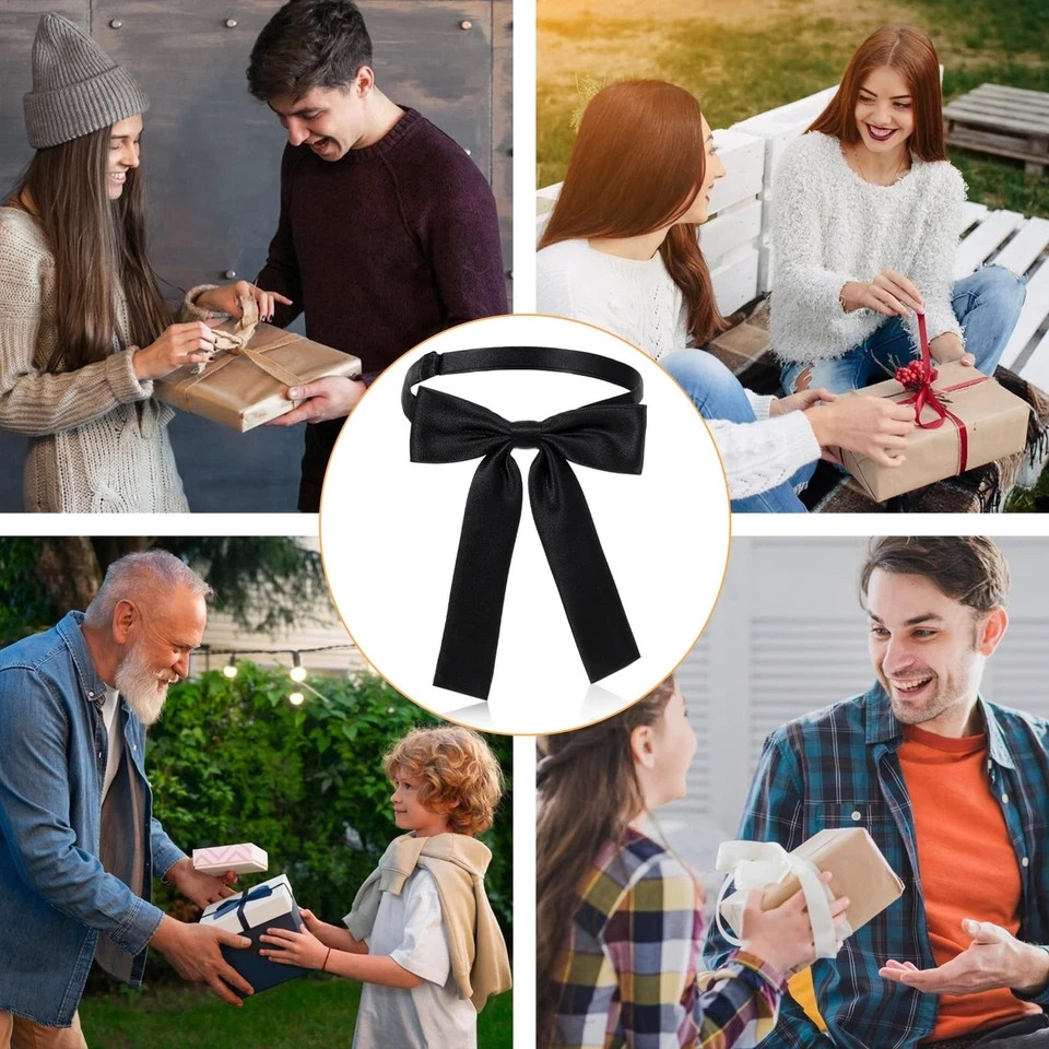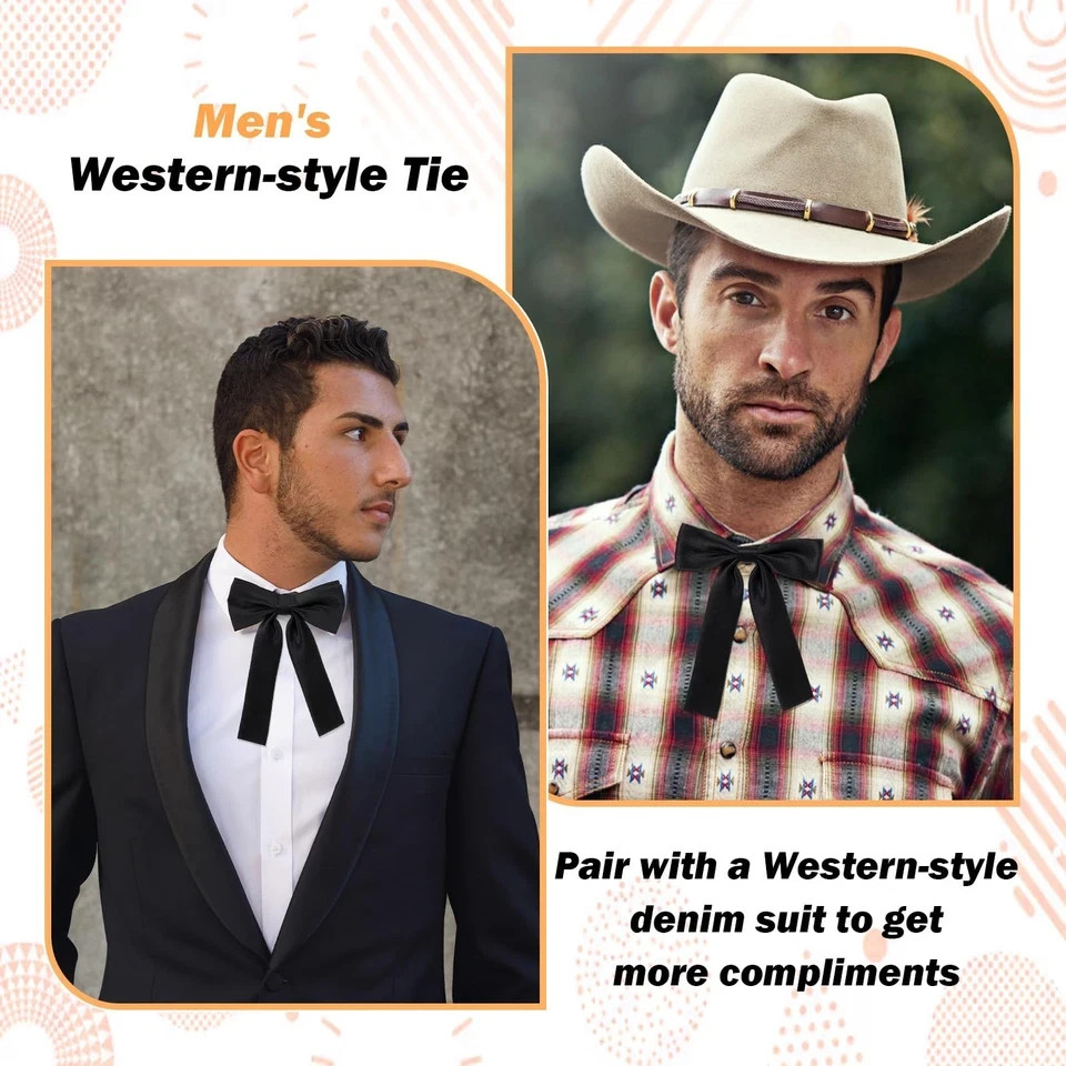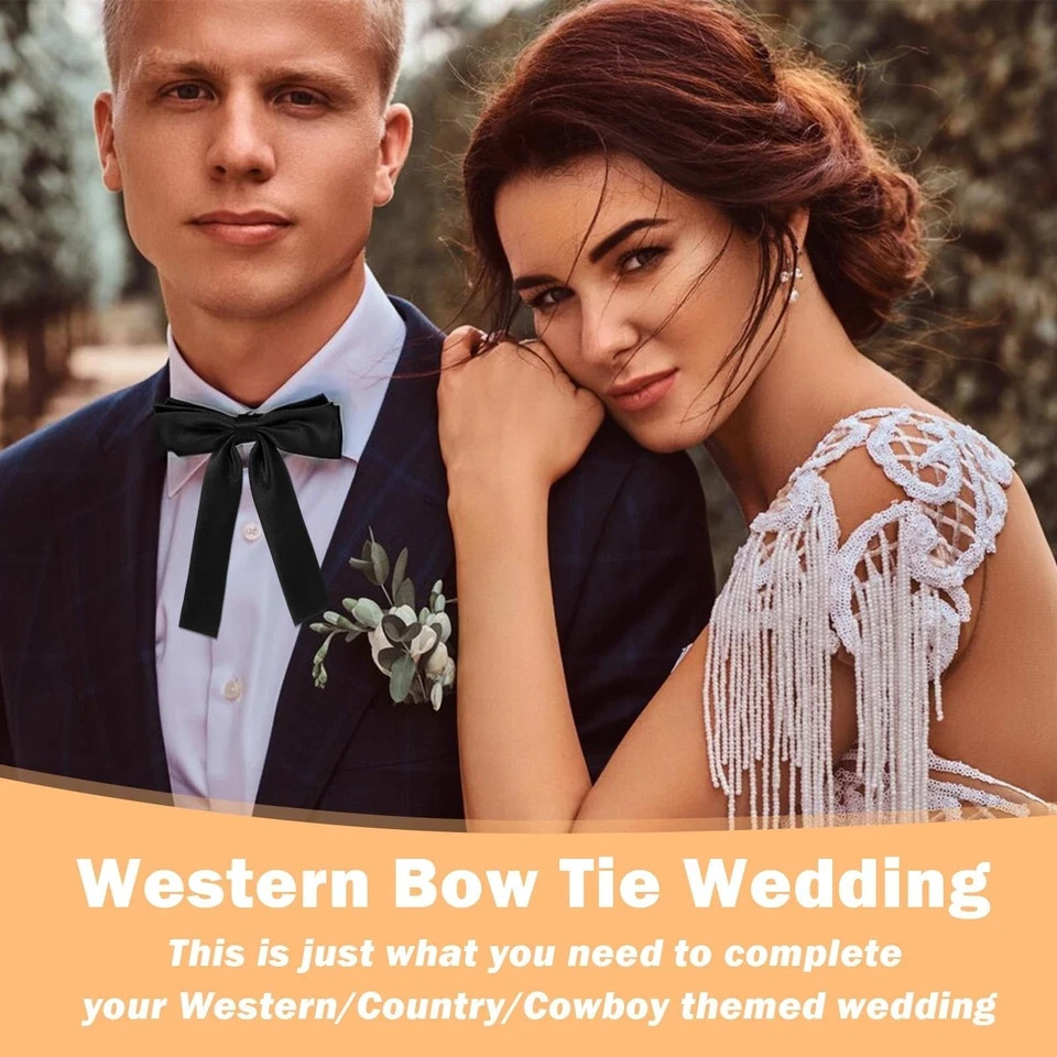Product Description: Our versatile Bow Ties are perfect for both men and women, featuring a classic Western style that enhances any outfit. These unisex bolo ties can be worn with white shirts, tuxedos, Western coats, or jackets, adding a sophisticated touch to your attire. Whether for weddings, costumes, or as a stylish gift, our bow ties are crafted from high-quality black satin fabric, offering a luxurious silk-like texture that is colorfast, lightweight, and reusable. Specifications: Category: bow tie Color: black Material: polyester Function: wearing Bow tie product size: 4.72× 6.29 inches/ 12×16 cm Longest adjustment belt size: 17.32× 0.55 inches/ 44×1.4 cm Shortest adjustment belt size: 8.66× 0.55 inches/ 22×1.4 cm Packing size: 16 ×15 ×1.6 cm Packing method: bag Net weight: 12 g Gross weight: 12 g