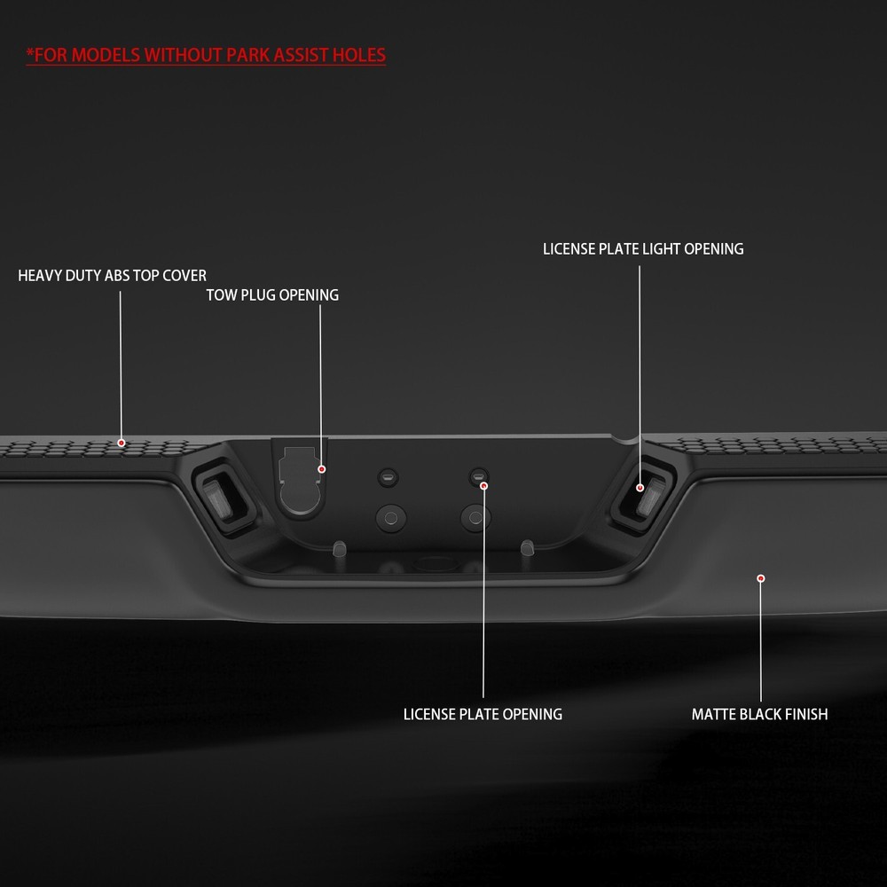 Black Separated Rear Bumper For 2009-2019 Dodge Ram 1500 2010-18 Ram 2500 3500 PRODUCT DESCRIPTION ONE YEAR WARRANTY Description Separated Material : Steel & Plastic Color : Black Placement on Vehicle : Rear Fitment Type : Direct Replacement Parking Aid Sensor Holes : WITHOUT Parking Aid Sensor Holes Package Includes: 1x Rear bumper + mounting hardware Materials, Notes : Without Parking Aid Sensor Holes,Without Dual Exhuast Cut-Outs Fitment For 2009-2018 Dodge Ram 1500 For 2010-2018 Ram 2500 3500 For 2019-2023 Ram 1500 Classic 2-Door Compatible with without Parking Assist Sensor and Dual Exhaust Models Only SHIPPING RETURN WARRANTY SHIPPING · Shipping time: 1-6 business days in USA · After shipping, the tracking No. available by message · We ship to eBay address RETURN No returns are accepted without an RMA number. · Refund is valid within 60 days after the date delivered · Refund will be given as money back or replacement · The money less the freight cost will be refunded due to their own fault · Item must be returned in original packing same as reached · Buyers are responsible for the return shipping cost. WARRANTY · Buyers pay return and replacement shipping cost · We will not refund any labor cost