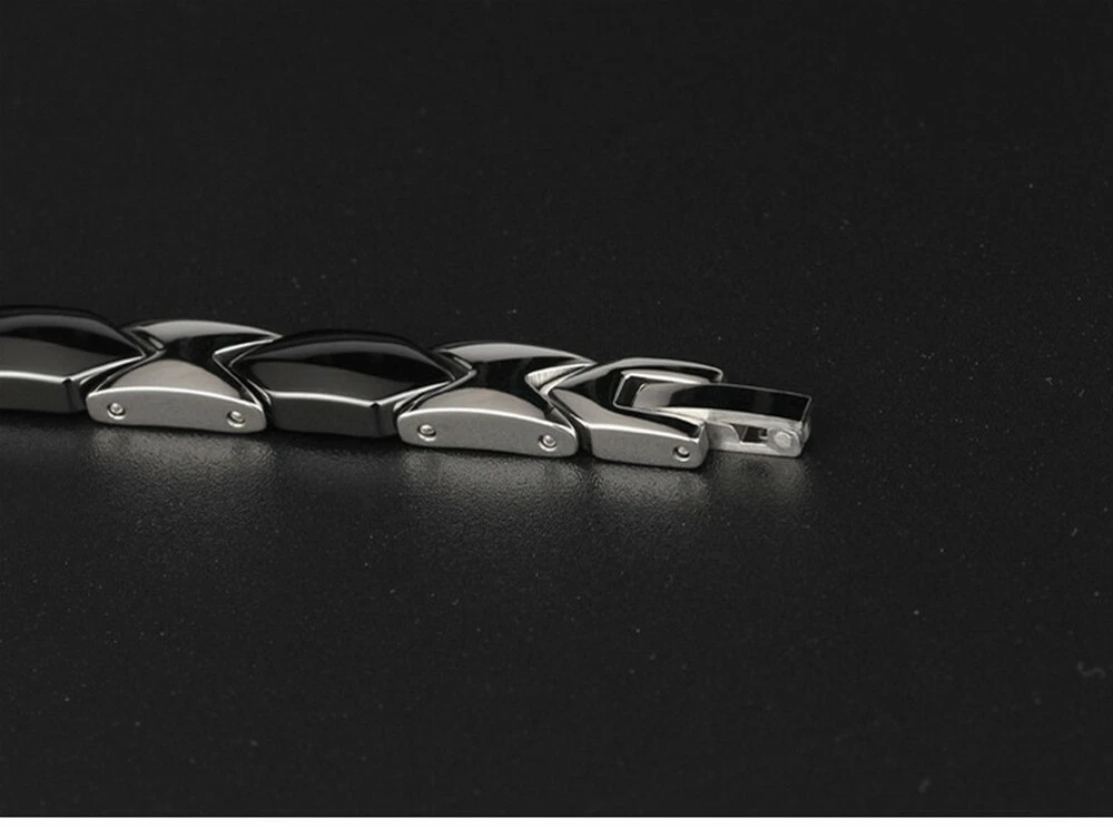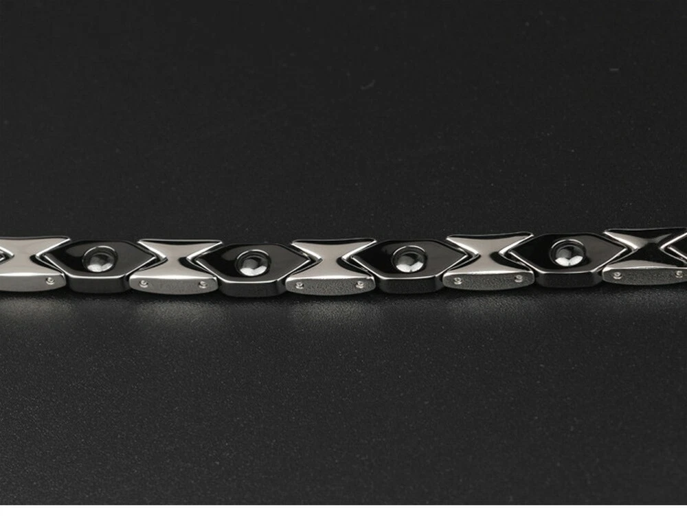 Product Features 🍀Extra Strength Magnets (3500 Gauss each) - Effective pain relief for carpal tunnel, arthritis & sports injury. These are some of most effective in the magnetic health therapy market. 🍀Elegant & Convenient - Size: 21cm*1.2cm(8.26"*0.47"); Strong clasp that stays put. 🍀Stylish Design - Elegant silver titanium & black ceramic two tone polished finish, Looks great and fashionable on both women & men.A great present for most any occasion (Christmas / Xmas, birthday, anniversary). 🍀Magnetic Therapy & 100% Hypoallergenic - No more allergic reactions commonly. Magnetic therapy are used for years to help alleviate pain, improve blood circulation. Also reduce stress and anxiety, improve sleep and enhance overall balance and mood.They are believed to alleviate all kinds of nerve pain and muscle tension and increase flexibility, activate cellular oxidation, which supports anti-aging. 🍀High Quality - Top Grade Ceramic+Titanium Steel,long-lasting shine and luster.Anti-radiation,anti-fatigue. Product Description Eases joint stiffness by improving blood circulation, opening the flow of blocked energy - Reduces inflammation due to the improved blood flow - Helps the body to produce more endorphins, which are natural painkillers - Improves sleep and general well-being due to the relief from pain. If you have the following questions, you may need our bracelet: 1. Pain from Arthritis, Carpal Tunnel, Tennis Elbow, Tendonitis, Repetitive Strain Injury (RSI) 2. Sports injury on joints.pain on the shoulders, arms, wrist or hands. 3. Poor circulation associated with Diabetes; cold hands and feet. 4. Migraine Headaches, Fatigue, Stress & Anxiety. 5. Have an irregular life style and are often sleepless. Payment Method & Shipping All items will be checked before packing. All items are new and of high quality. Item will be shipped within 1 - 2 business days upon receipt of payment, excluding weekends and public holidays. Delivery time is about 7-28 business days and it may take up to 8 weeks to some European countries and South American countries due to strict custom inspection. We ship worldwide.