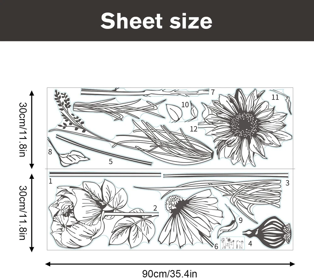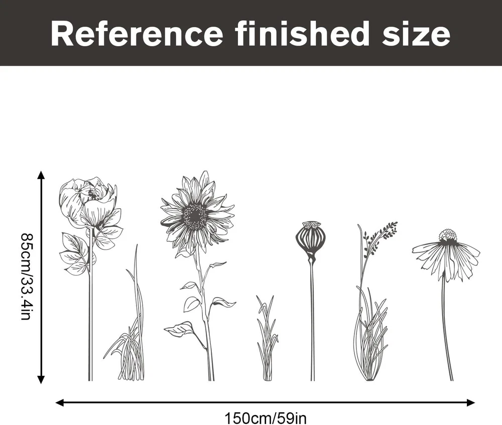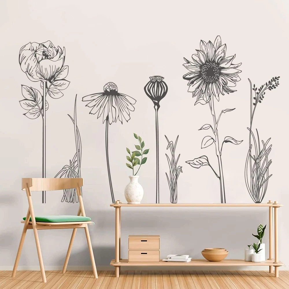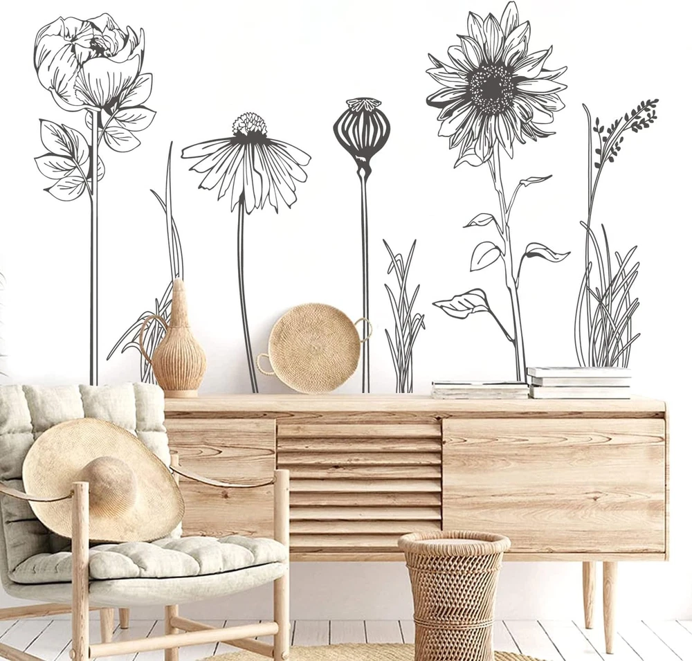 Safety for Family: Made of eco-friendly vinyl, inks and adhesive, containing non-toxic and are odor free, keeping your kids far from chemicals harm Featuring with beautiful wildflowers, the flowers have been hand-sketched in great detail so that when they are on your wall, they look simply stunning. They are perfect for hallways, bedrooms and living spaces. Peel and Stick Easily: It can be stuck to any smooth surfaces, walls, furniture, tiles, mirrors, and windows, reusable without leaving damage or residue Comes in 2 sheet, sheet size: 11.8" × 35.4" (30cm × 90cm). DIY wall stickers, pasted freely according to your preferences If you are not satisfied with the purchase or have any questions about the paste, please feel free to contact us Product Description Different Design Add to Cart Add to Cart Add to Cart Add to Cart Add to Cart Add to Cart Price $9.99 $ 9 . 99 $9.99 $ 9 . 99 $8.99 $ 8 . 99 $11.99 $ 11 . 99 $8.99 $ 8 . 99 $9.99 $ 9 . 99 Material Vinly Vinly Vinly Vinly Vinly Vinly Removable ✔ ✔ ✔ ✔ ✔ ✔ Installation Type Peel & Stick Peel & Stick Peel & Stick Peel & Stick Peel & Stick Peel & Stick Theme Botanical Botanical Botanical Botanical Botanical Botanical Color Black and White Black and White Black and White Black and White Black and White Black and White More Choices Add to Cart Add to Cart Add to Cart Add to Cart Add to Cart Price $11.99 $ 11 . 99 — $11.99 $ 11 . 99 $7.99 $ 7 . 99 $9.99 $ 9 . 99 $11.99 $ 11 . 99 Material Vinly Vinly Vinly Vinly Vinly Vinly Removable ✔ ✔ ✔ ✔ ✔ ✔ Installation Type Peel & Stick Peel & Stick Peel & Stick Peel & Stick Peel & Stick Peel & Stick Theme Floral Floral Floral Plant Floral Boho Color Black and White Black and White Black and White Multi Blue Blue