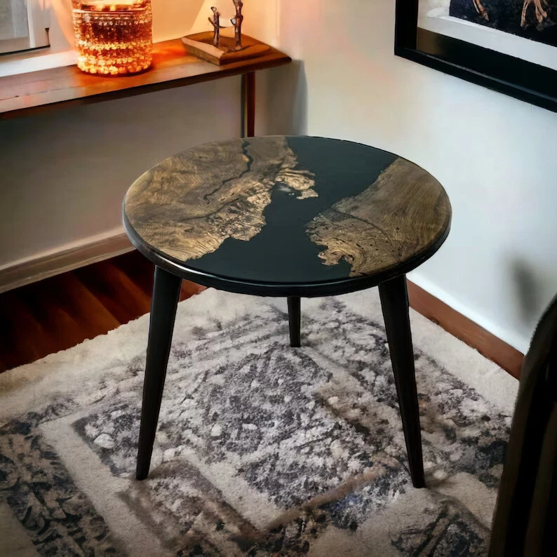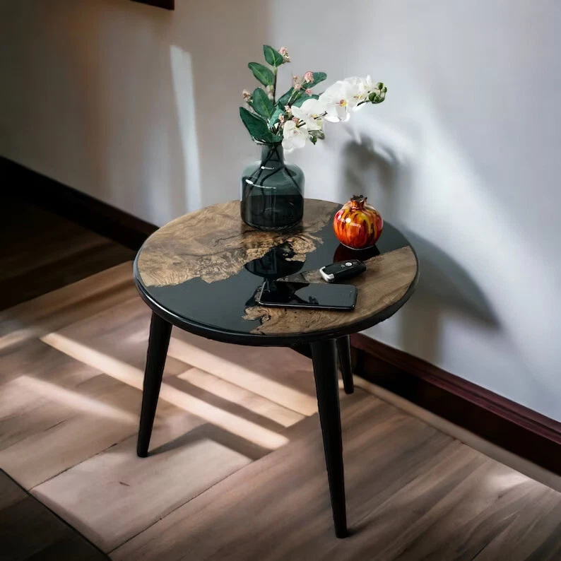Black Solid Epoxy Round Center Coffee Tables, Living Room End Table Decor