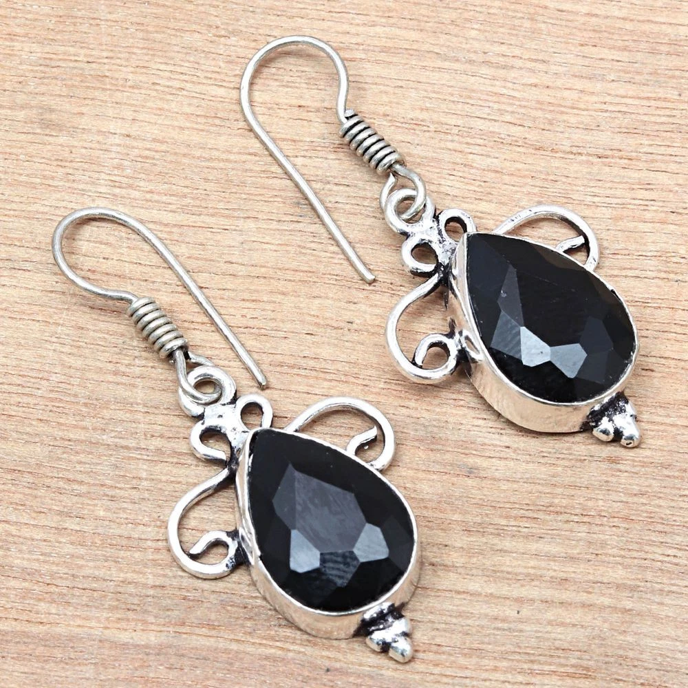 Black Spinal Gemstone Handmade Gift For Her Silver Jewelry Earrings 1.5''