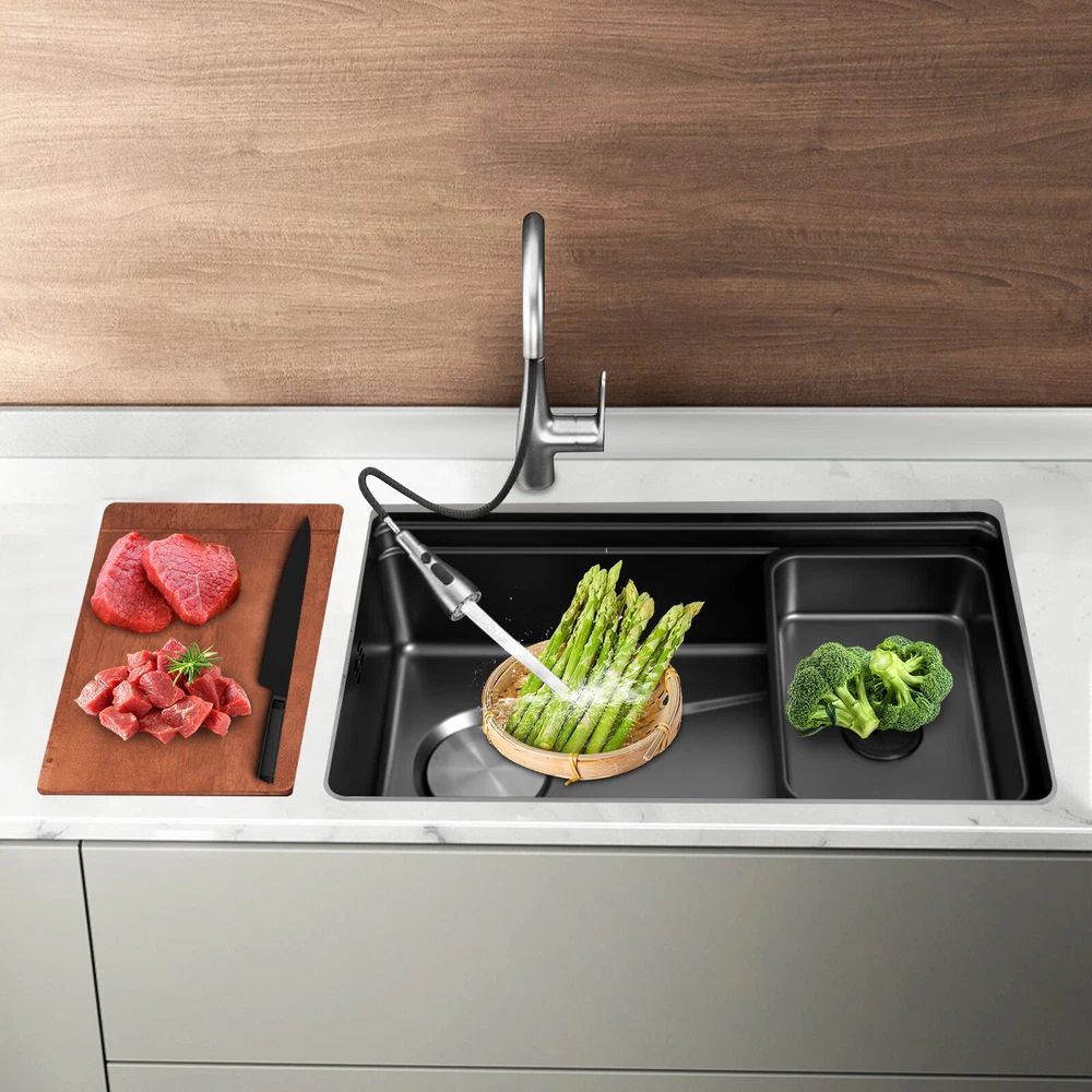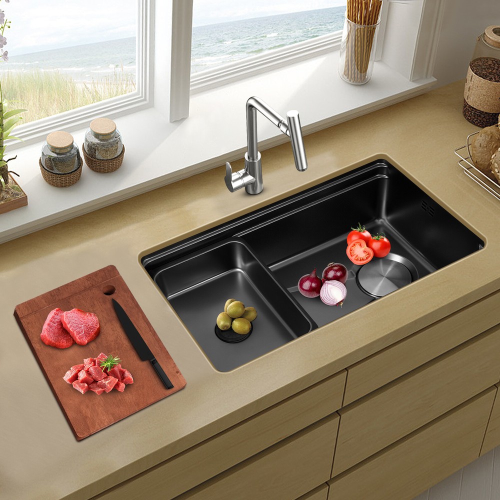 Product Size: 75*45*22.35cm/29.5*17.7*8.8 in Material: 304 Stainless Steel and Rubber Color: Black Highlights: Easy installation, Fast shipping, High quality Brand: Unbranded Room: Kitchen Net Weight: 10.3kg/22.71lbs Warranty: Three years Item Height: 75*45*22.35cm/29.5*17.7*8.8 in Inner Bowl Side-to-Side Width: / Mounting: Above or Below the Counter Top Type: Double Basin Item Length: 75*45*22.35cm/29.5*17.7*8.8 in Bowl Height: / Inner Bowl Front-to-Back Length: / Surface Treatment: One-piece Stretching Item Width: 75*45*22.35cm/29.5*17.7*8.8 in Features: High quality, Fast shipping, High quality W/ warranty!, Easy installation,Convenient Use,Easy Operation