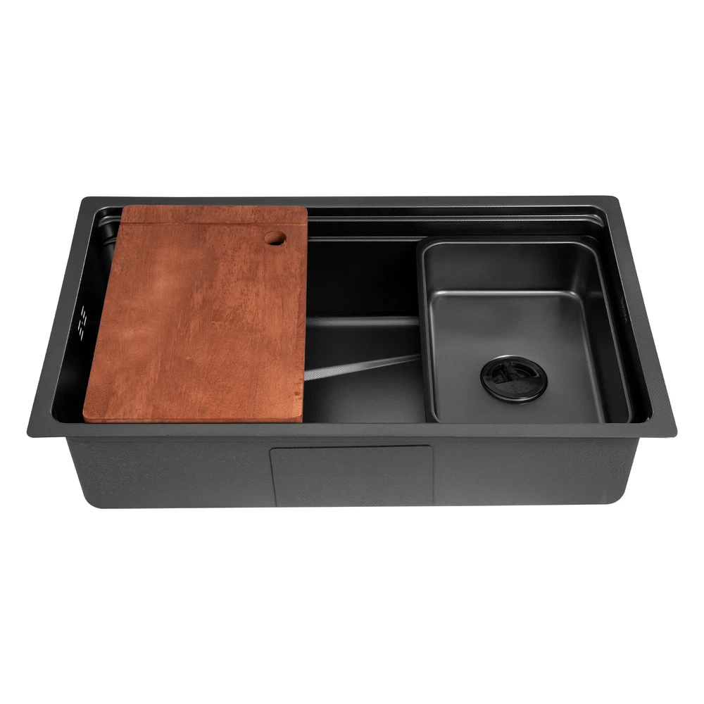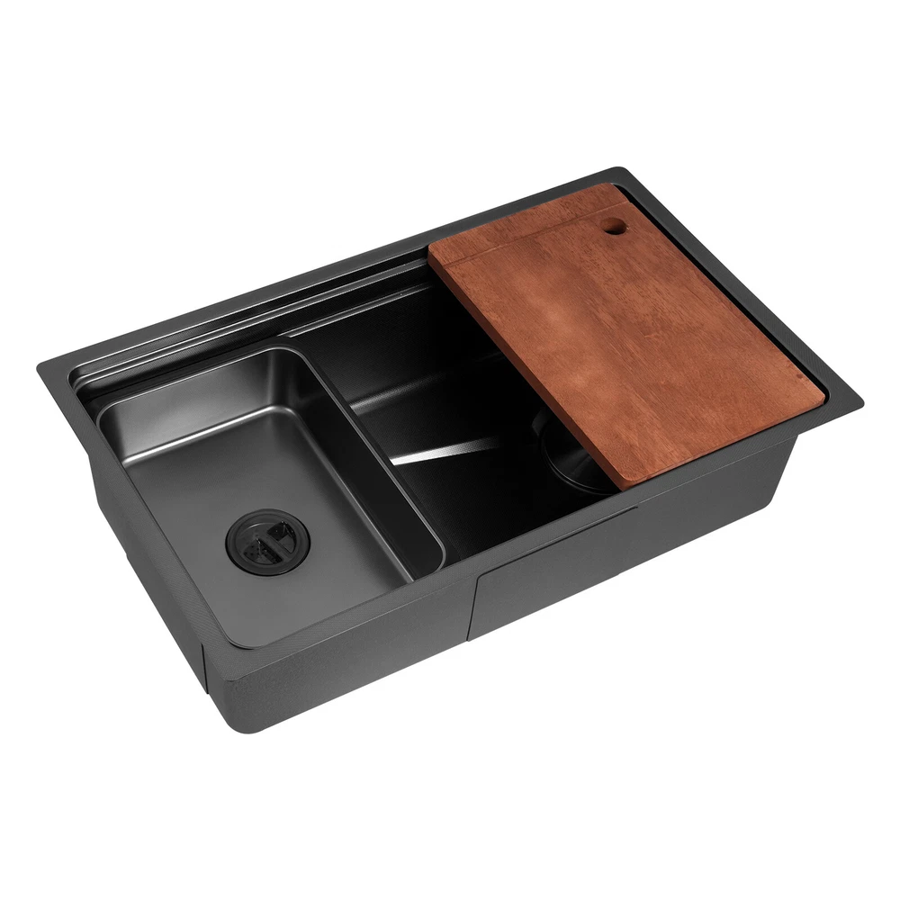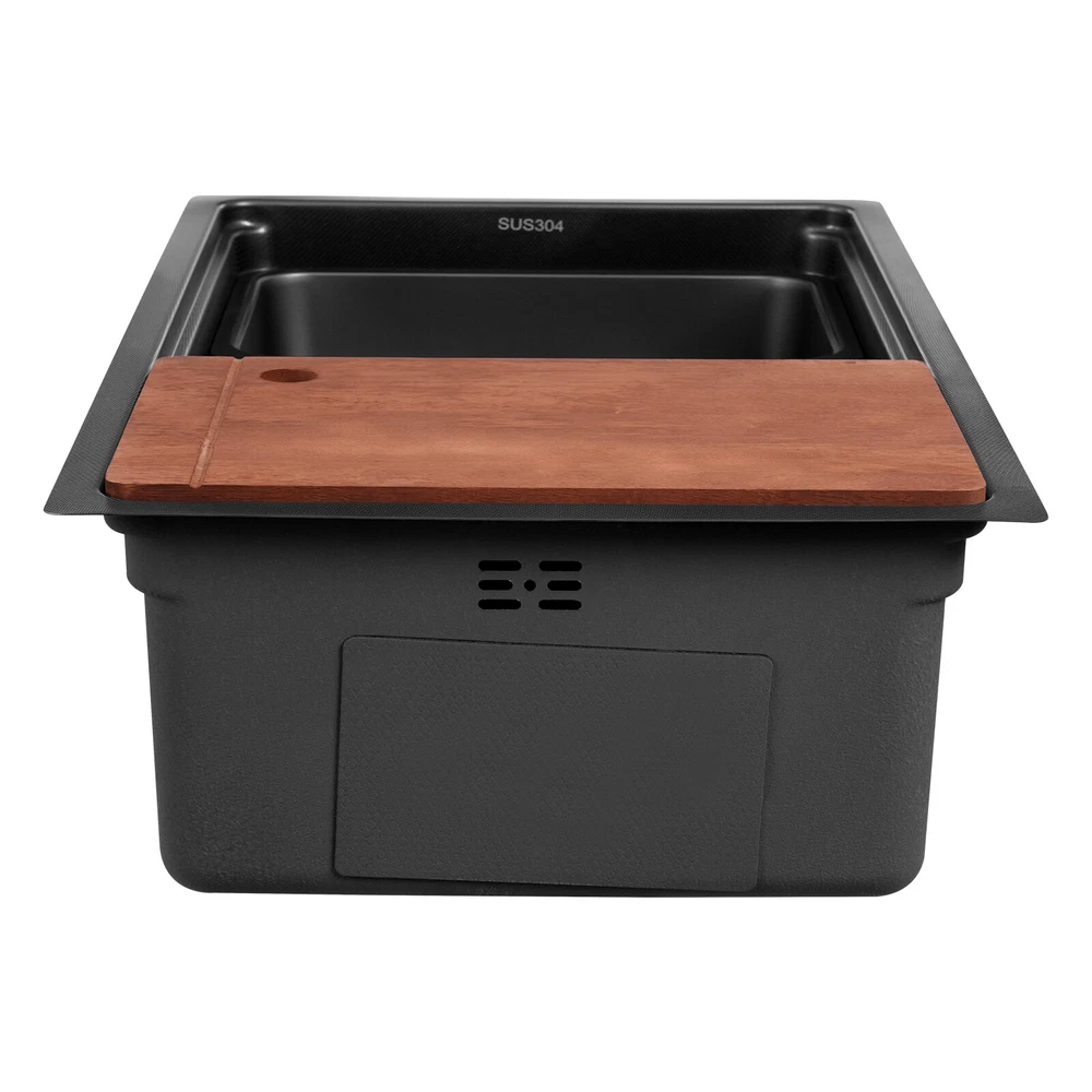 Black Stainless Steel Drop-In Kitchen Sink with Chopping Board, High Capacity